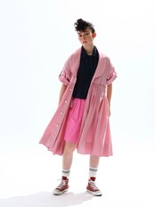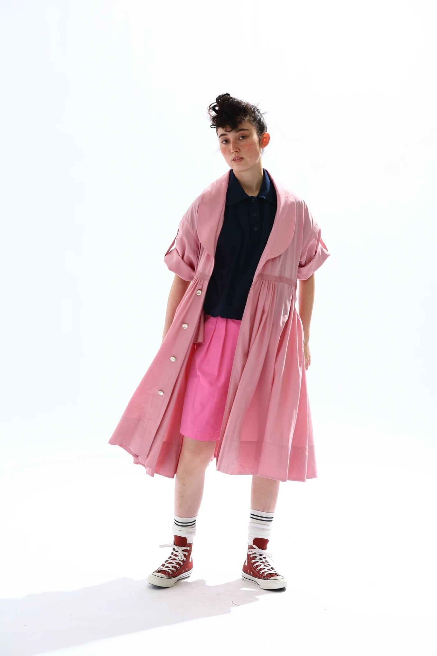 ピンク フレア コート ジャケット アウター ジャンパー ブルゾン ワンピース ガーリー 可愛い リボン ブラウス 原宿 ゆったり