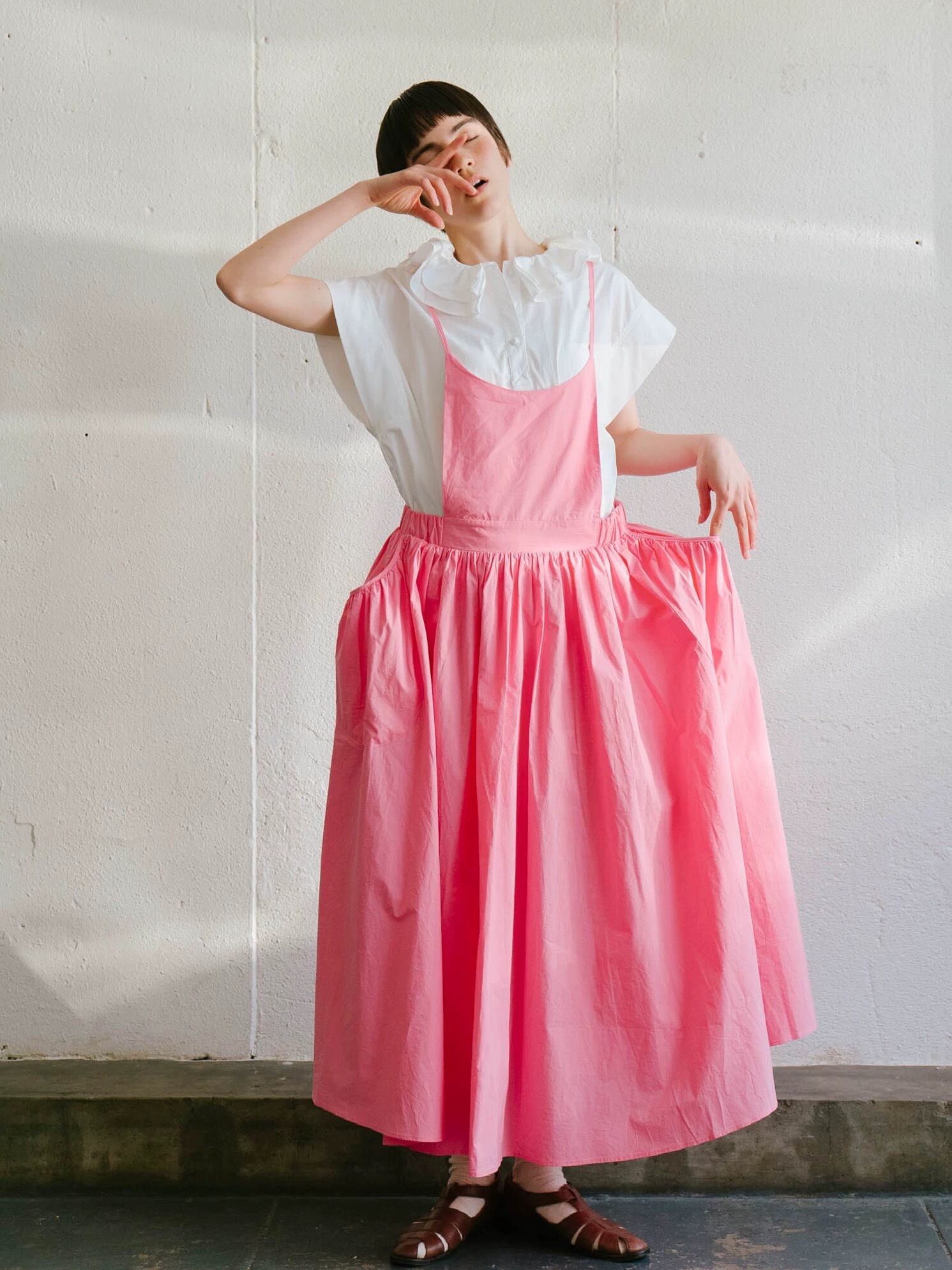 ジャンパー スカート ピンク ベージュ 緑 黒 白 ワンピース ゆったり マキシ シンプル 可愛い 原宿