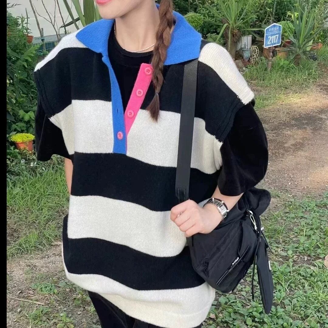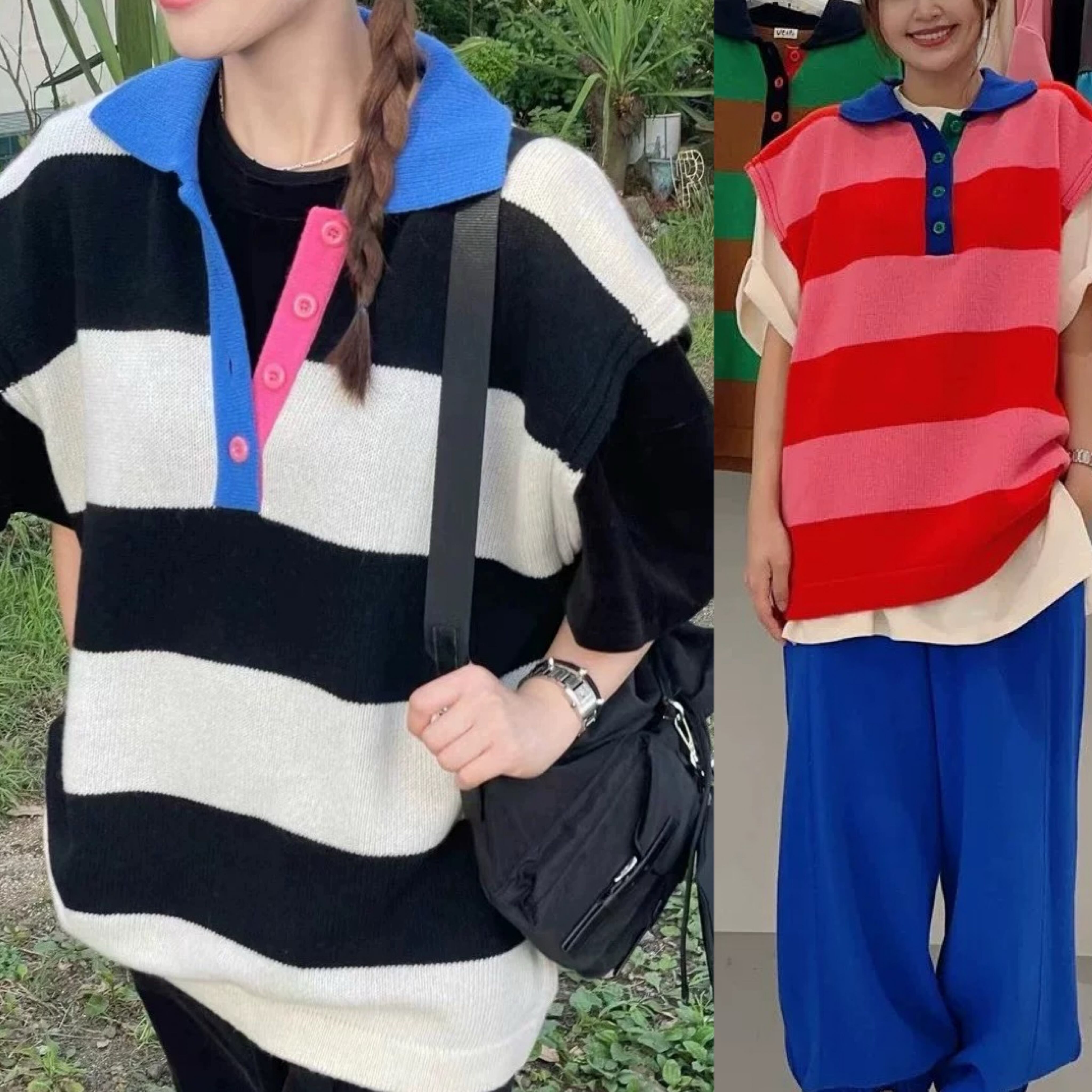 ボーダー 白 黒 ピンク ベスト 赤 チェック カーディガン セーター ニット ストリート ゆったり