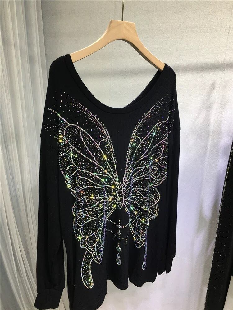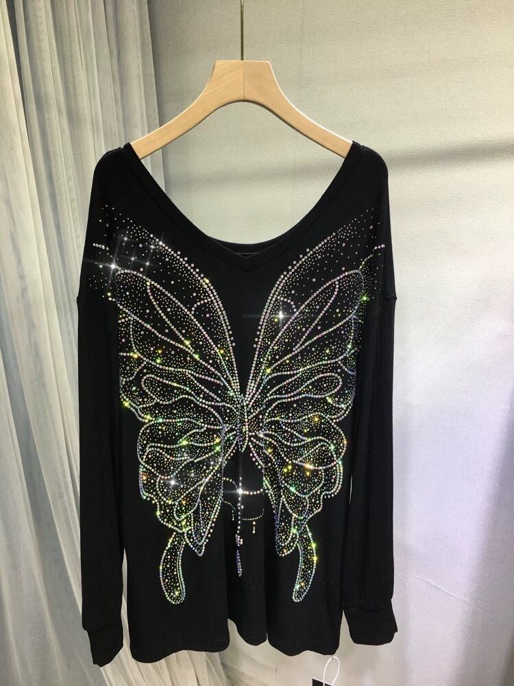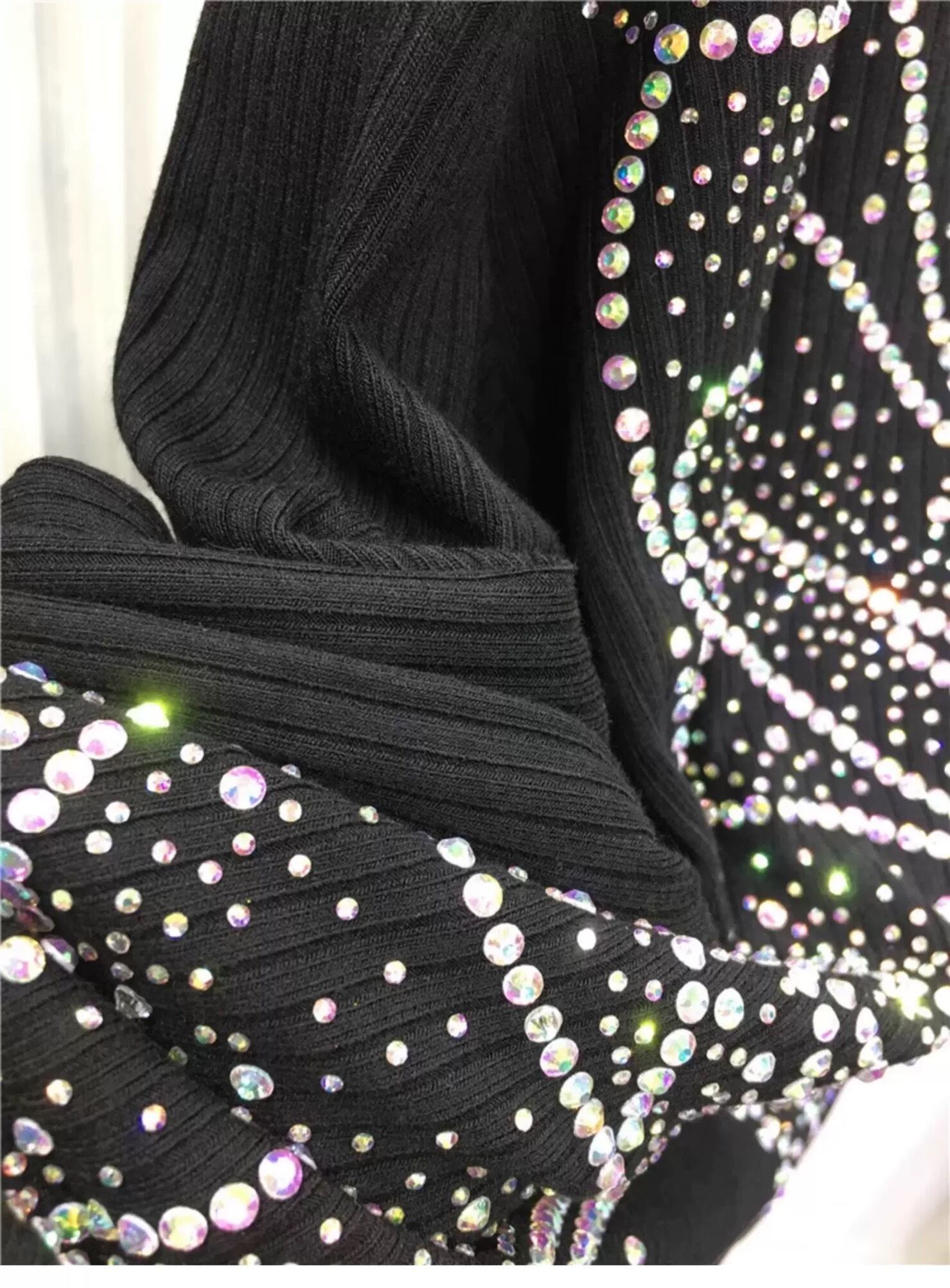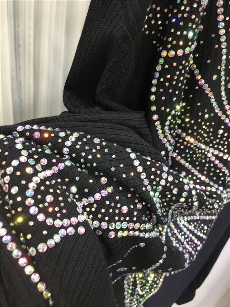 黒 ラインストーン キラキラ ブラック ブラウス ストリート カーディガン セーター トップス