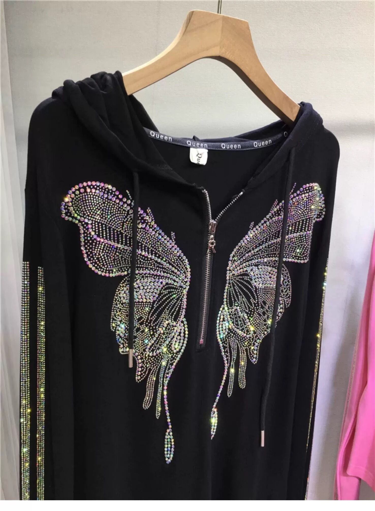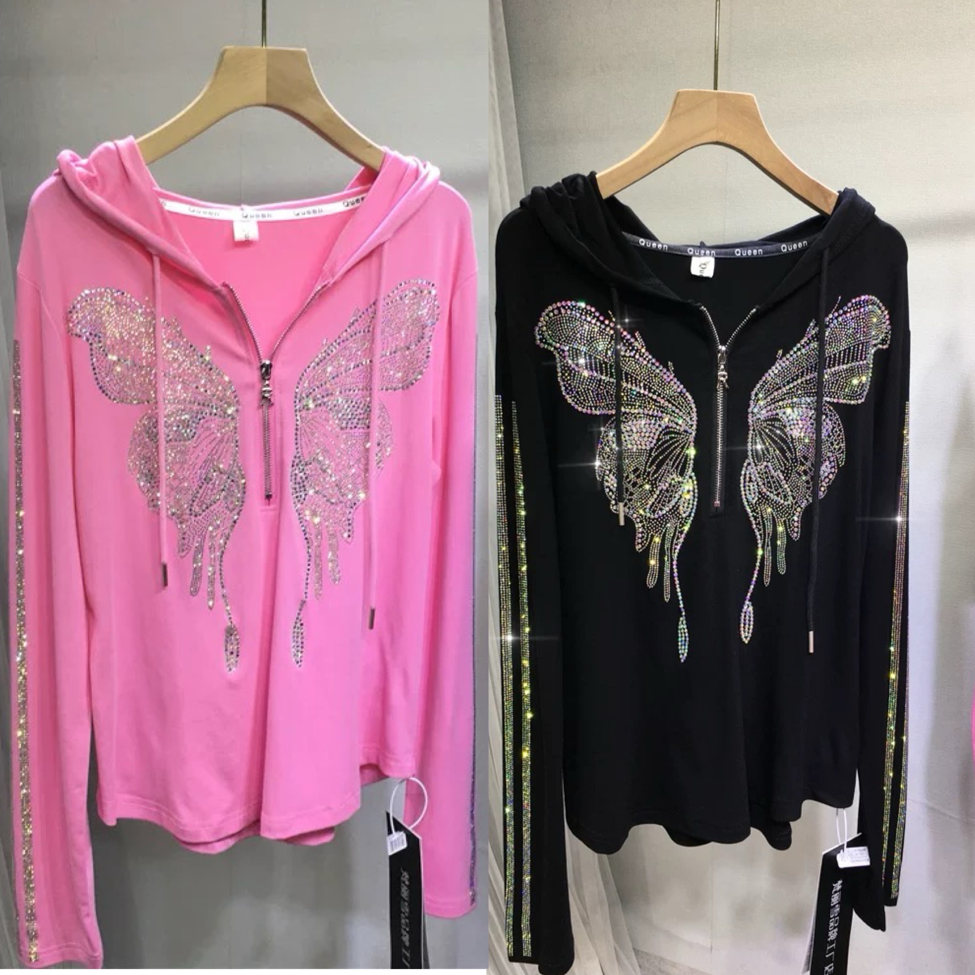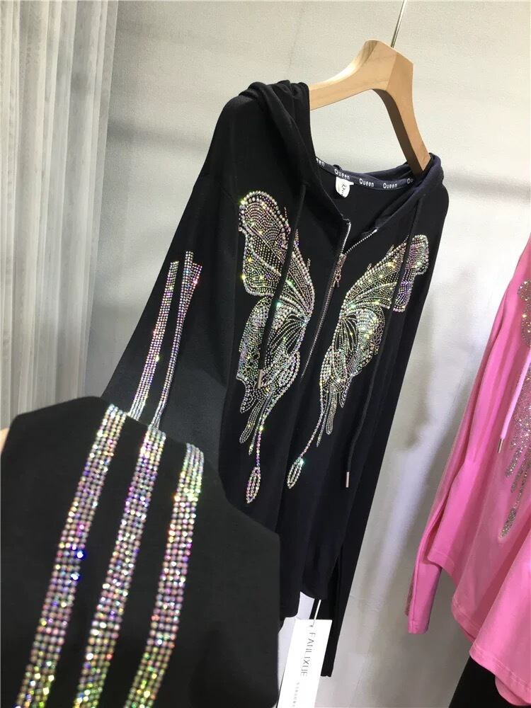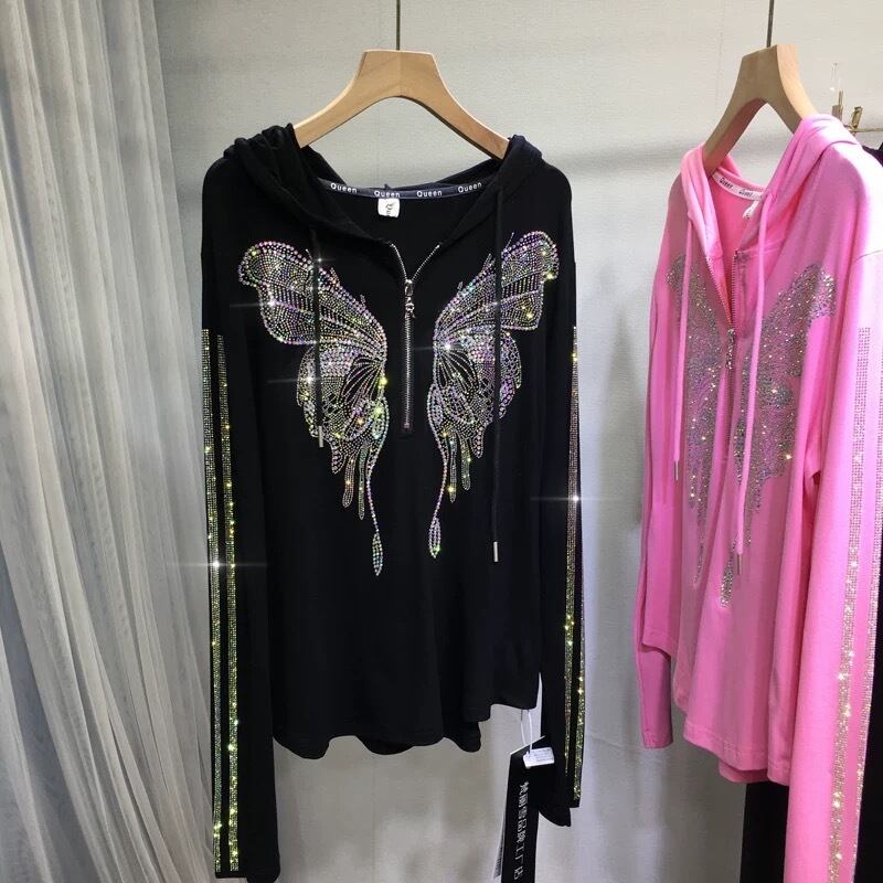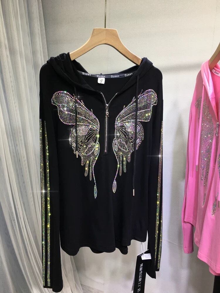 バタフライ パーカー ジャンパー アウター カーディガン ピンク バタフライ 黒 蝶々