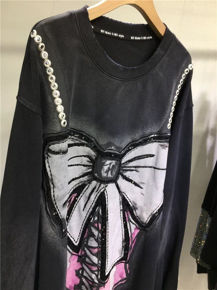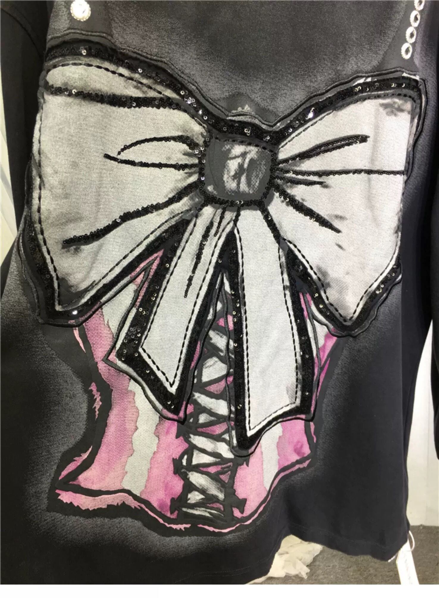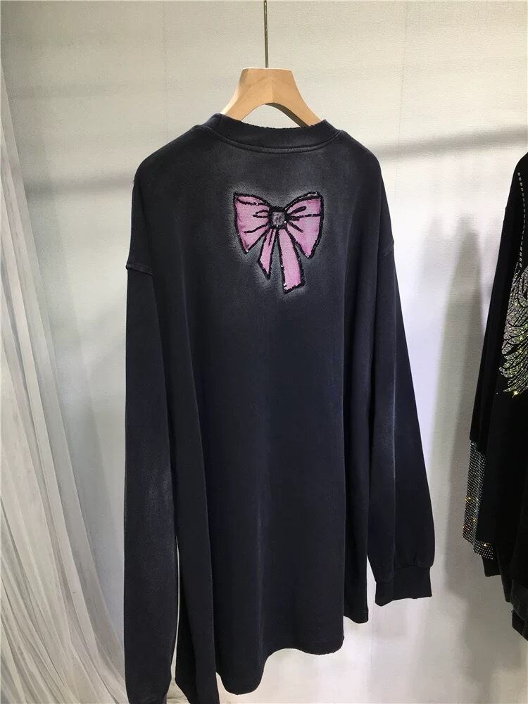 リボン 落書き ガーリー 黒 スウェット トップス トレーナー