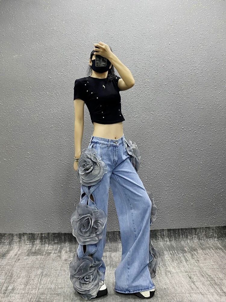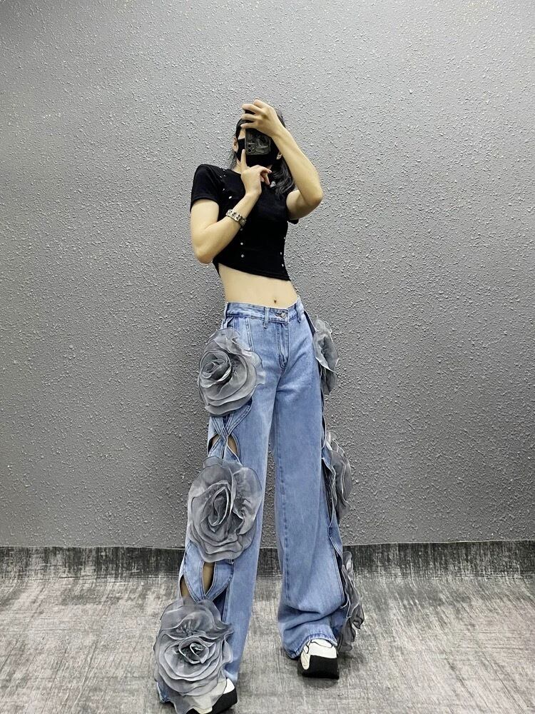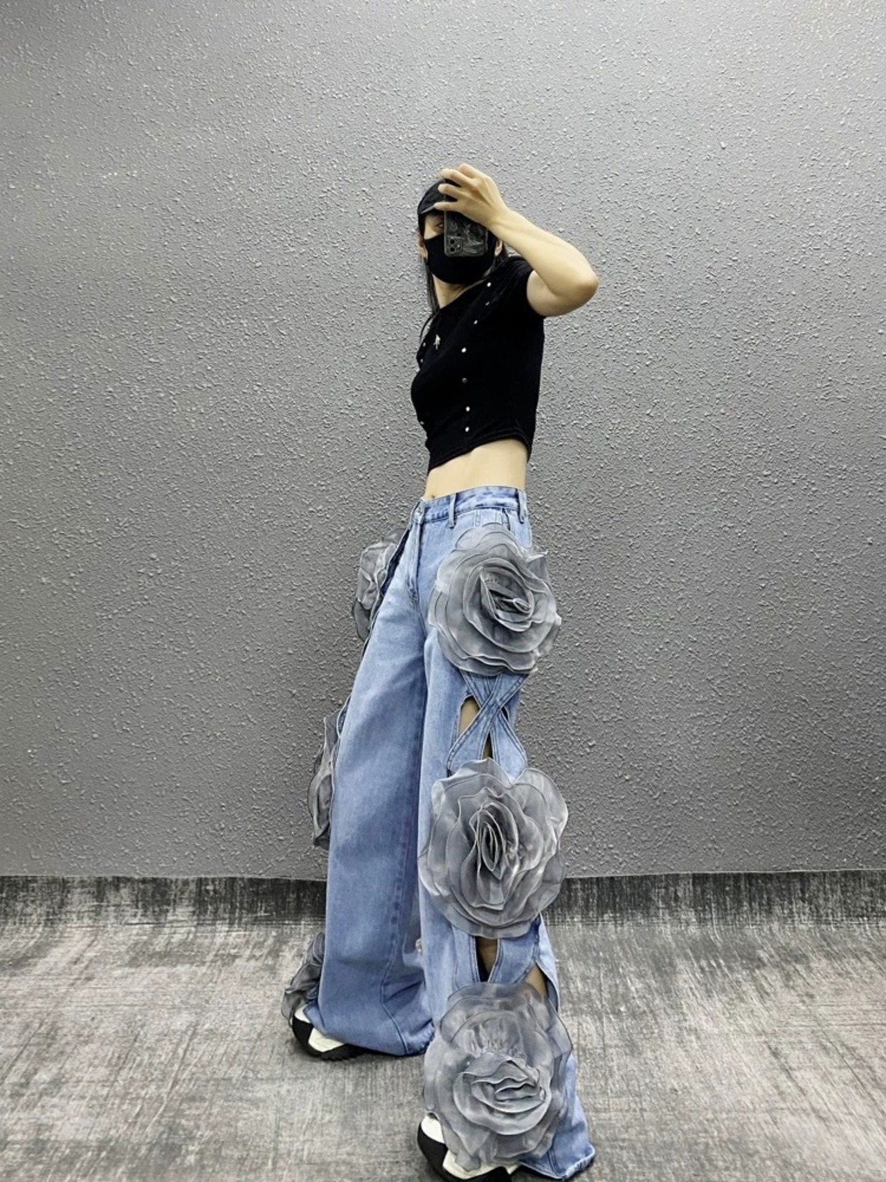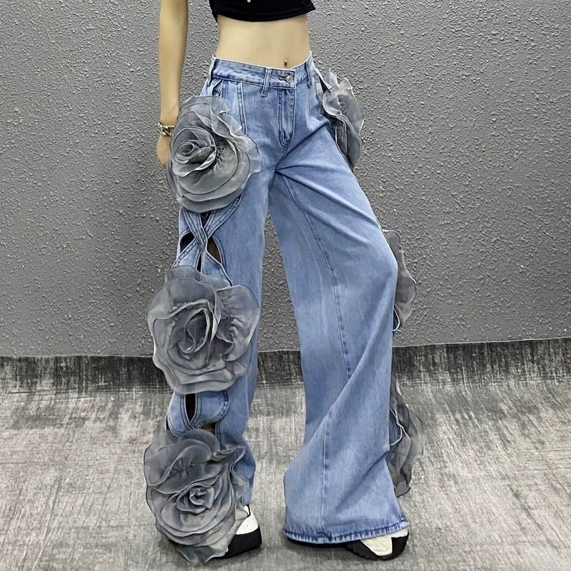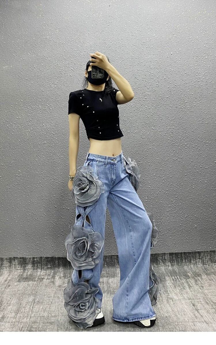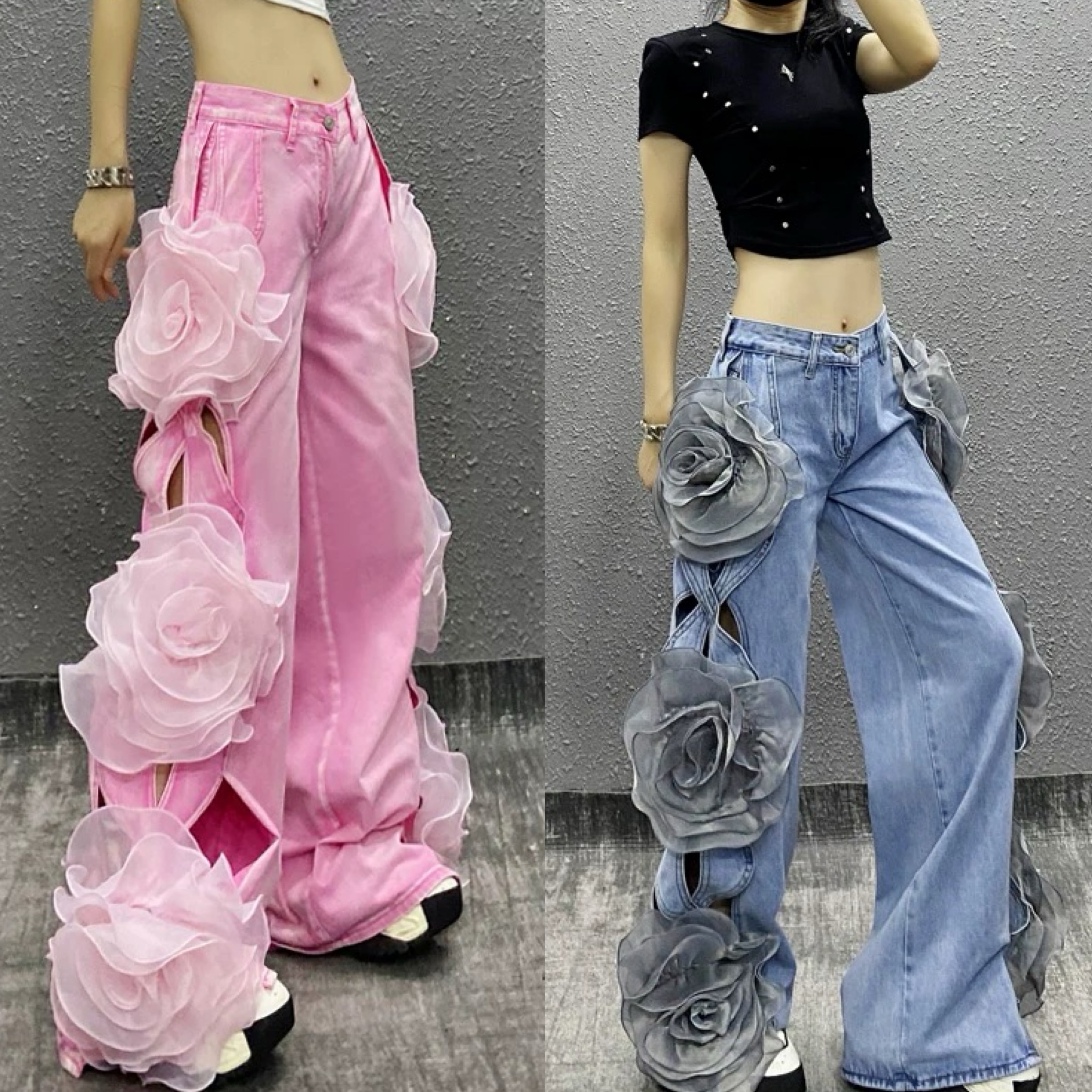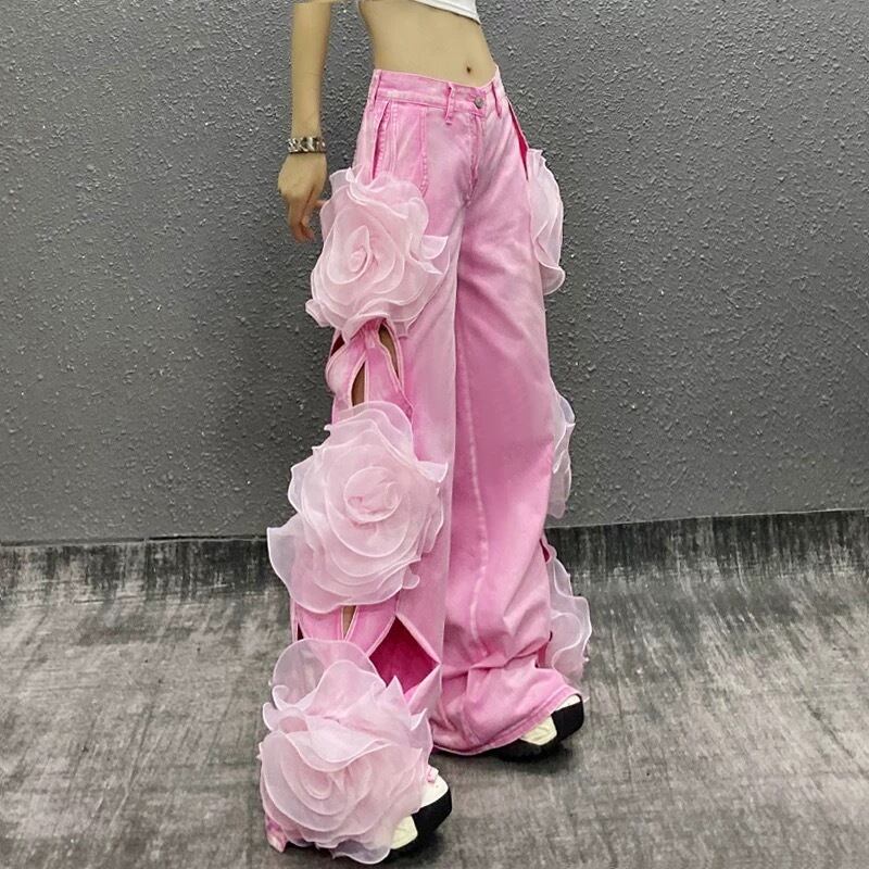 パンツ カジュアル カメリア バラ フラワー 水色 ピンク ボトムス スウェット カジュアル