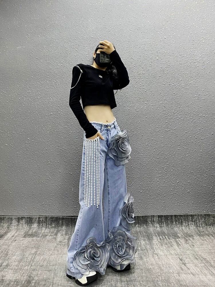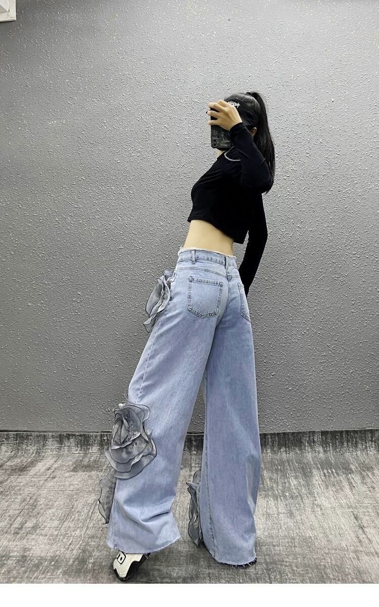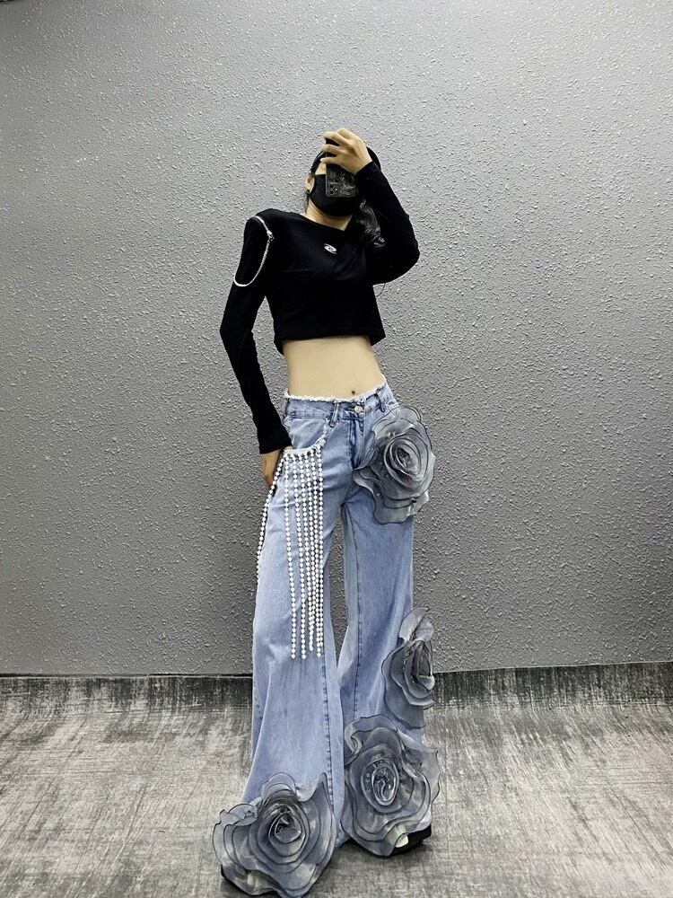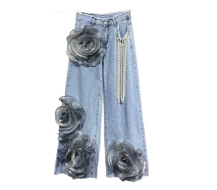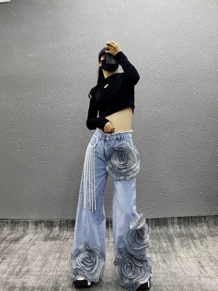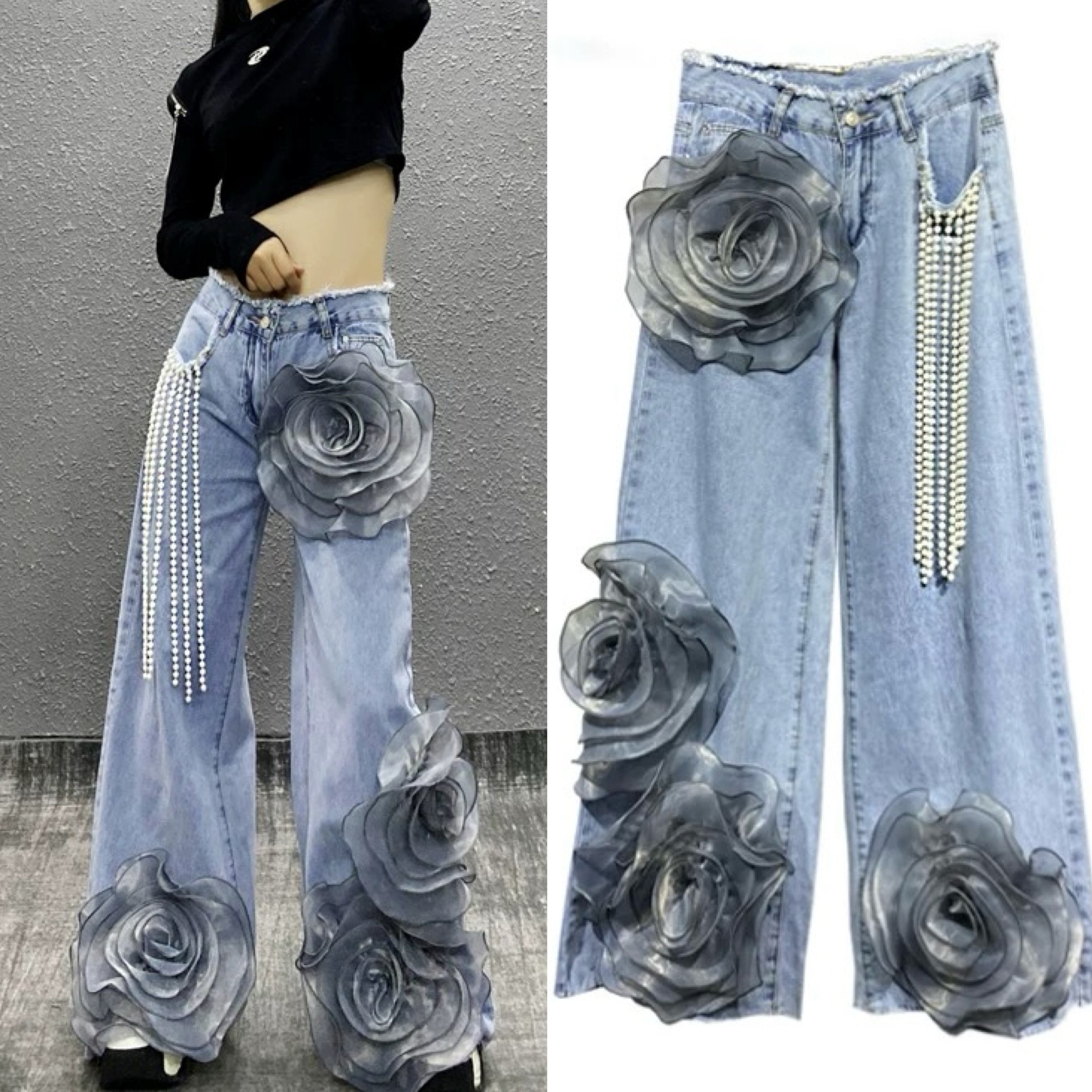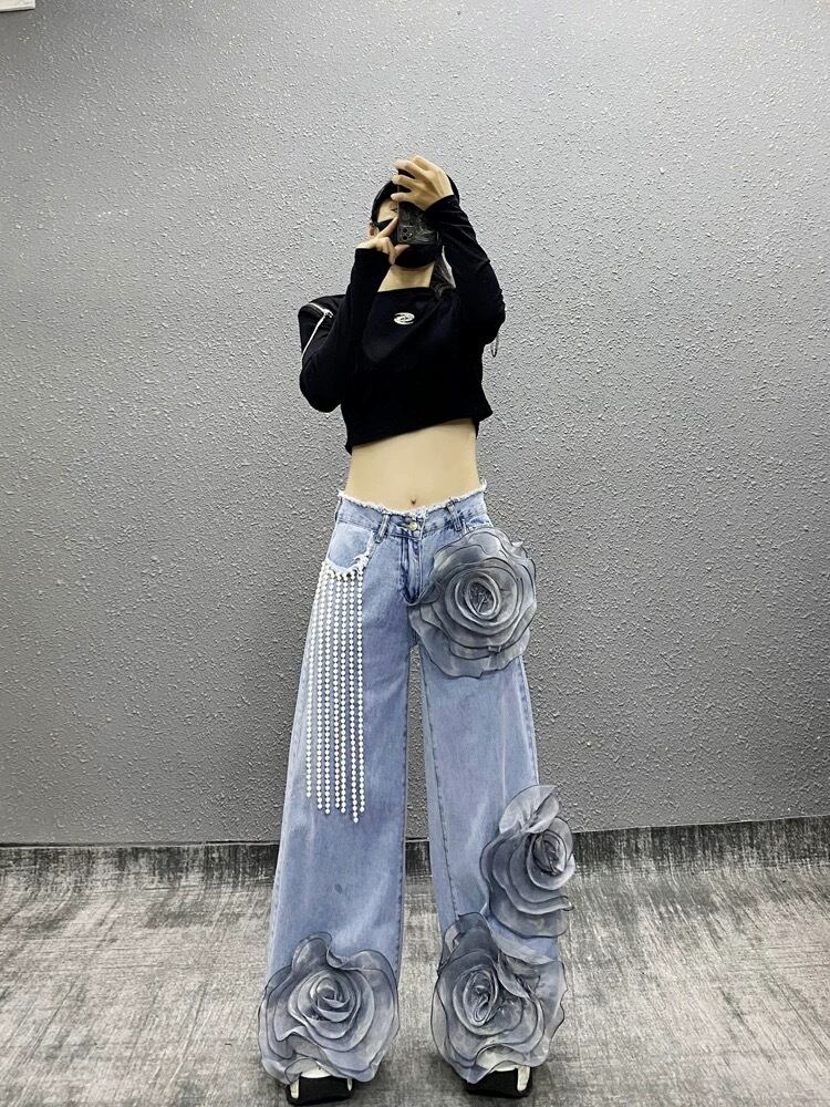 【x Lまで】パール 水色 バラ フラワー 薔薇 パンツ スウェット ボトムス ストリート