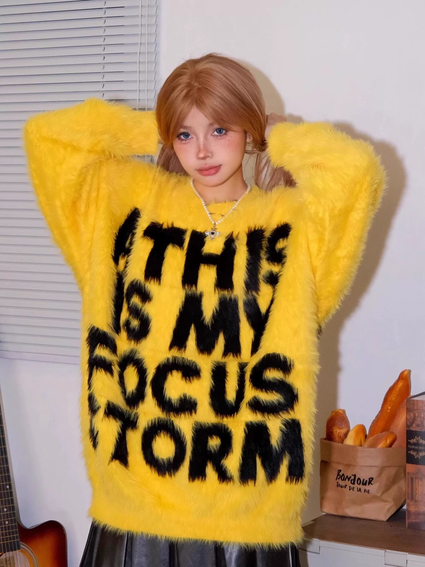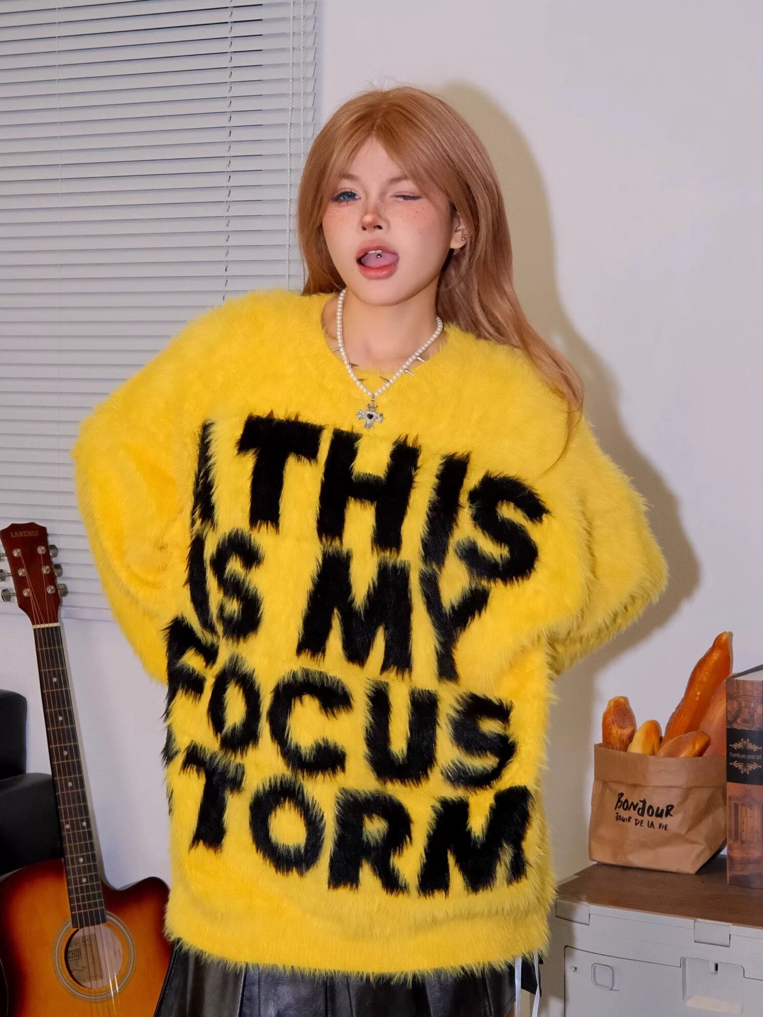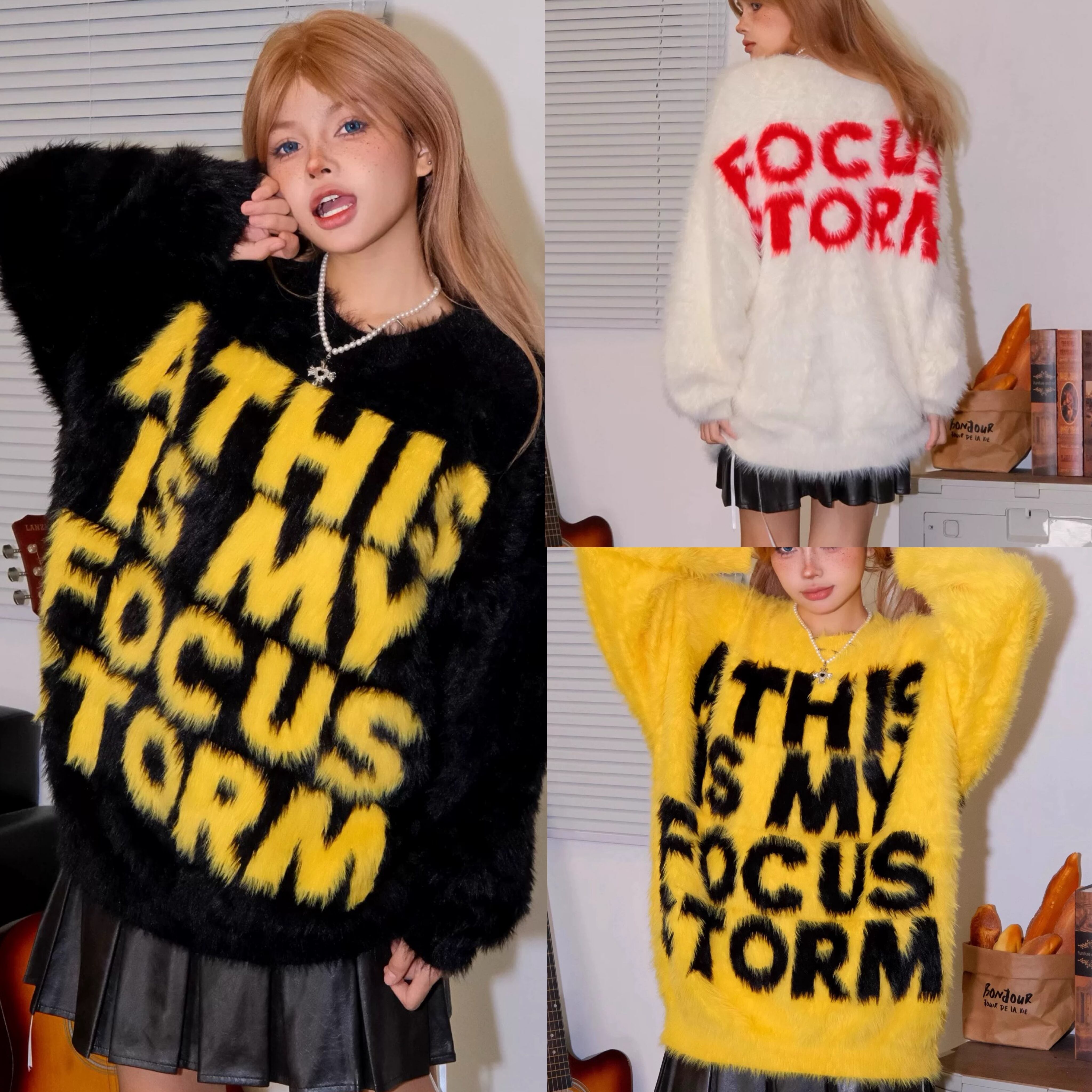 【2XLまで】セーター ニット モヘア 赤 白 黄色 黒 英字 トップス カーディガン