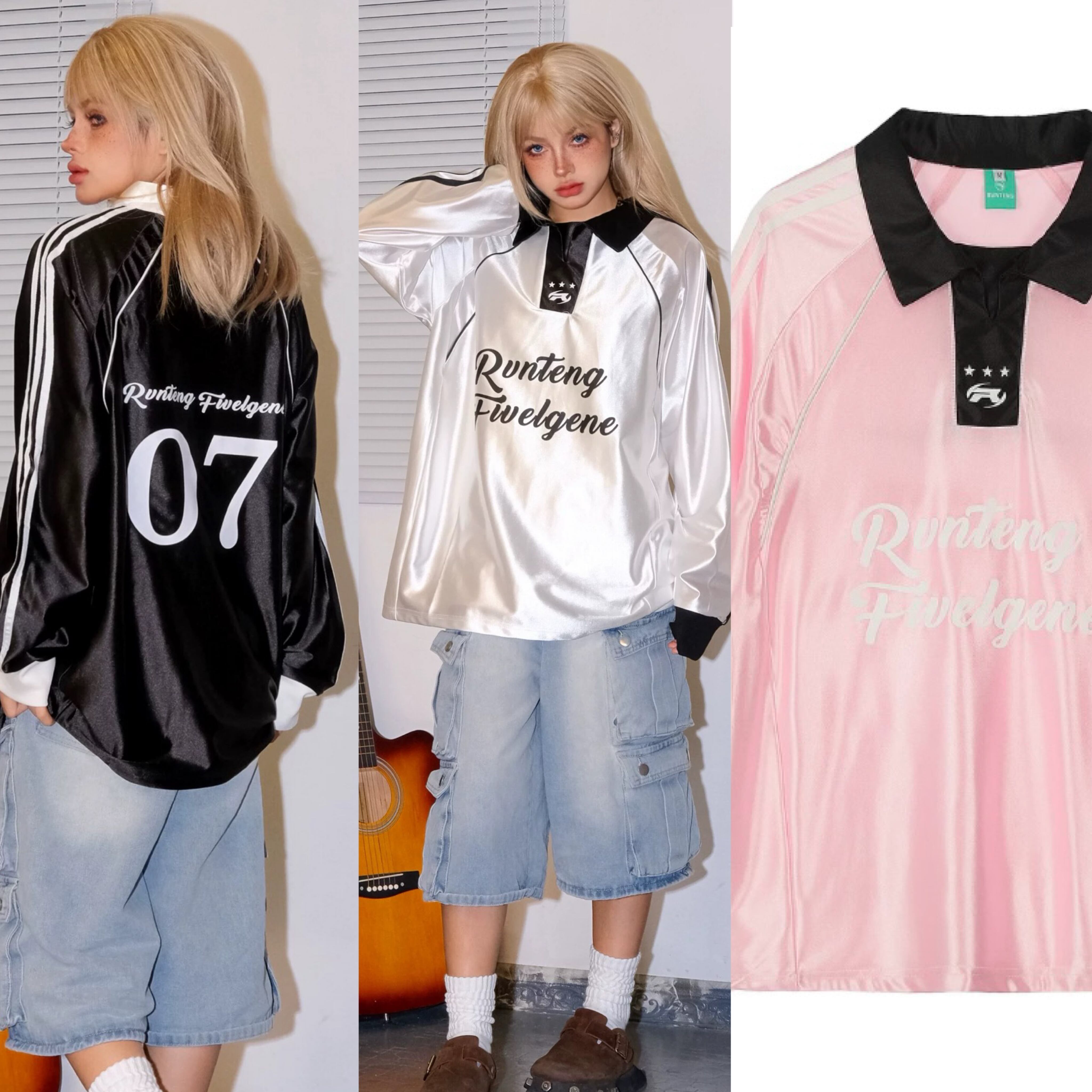 黒 ユニフォーム ピンク トレーナー スウェット 水色 赤 ピンク カジュアル トップス 99 原宿