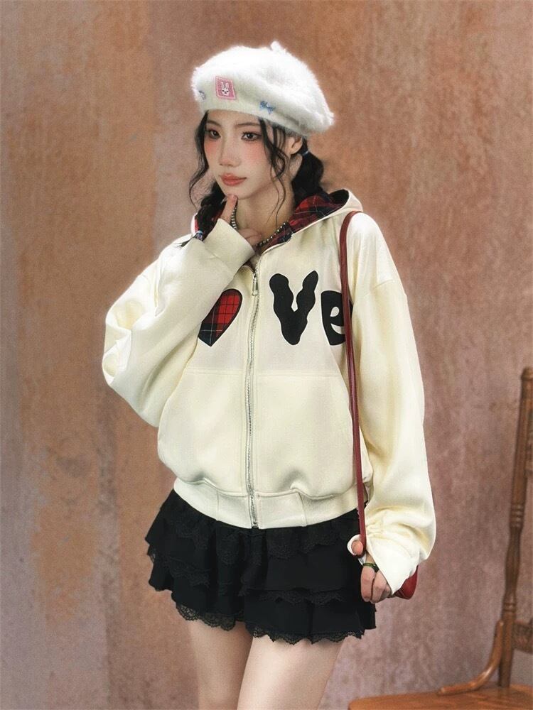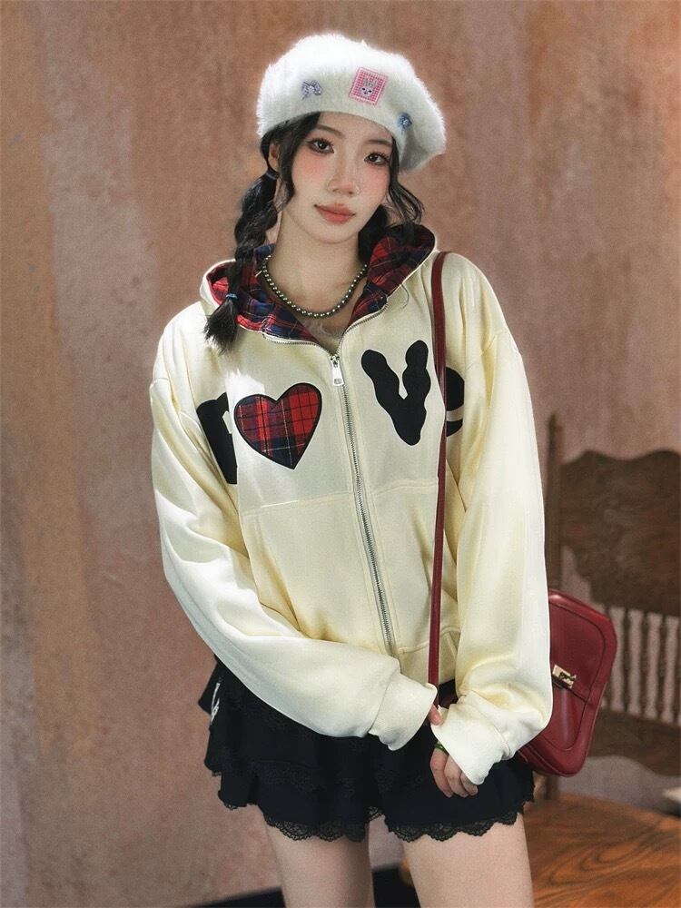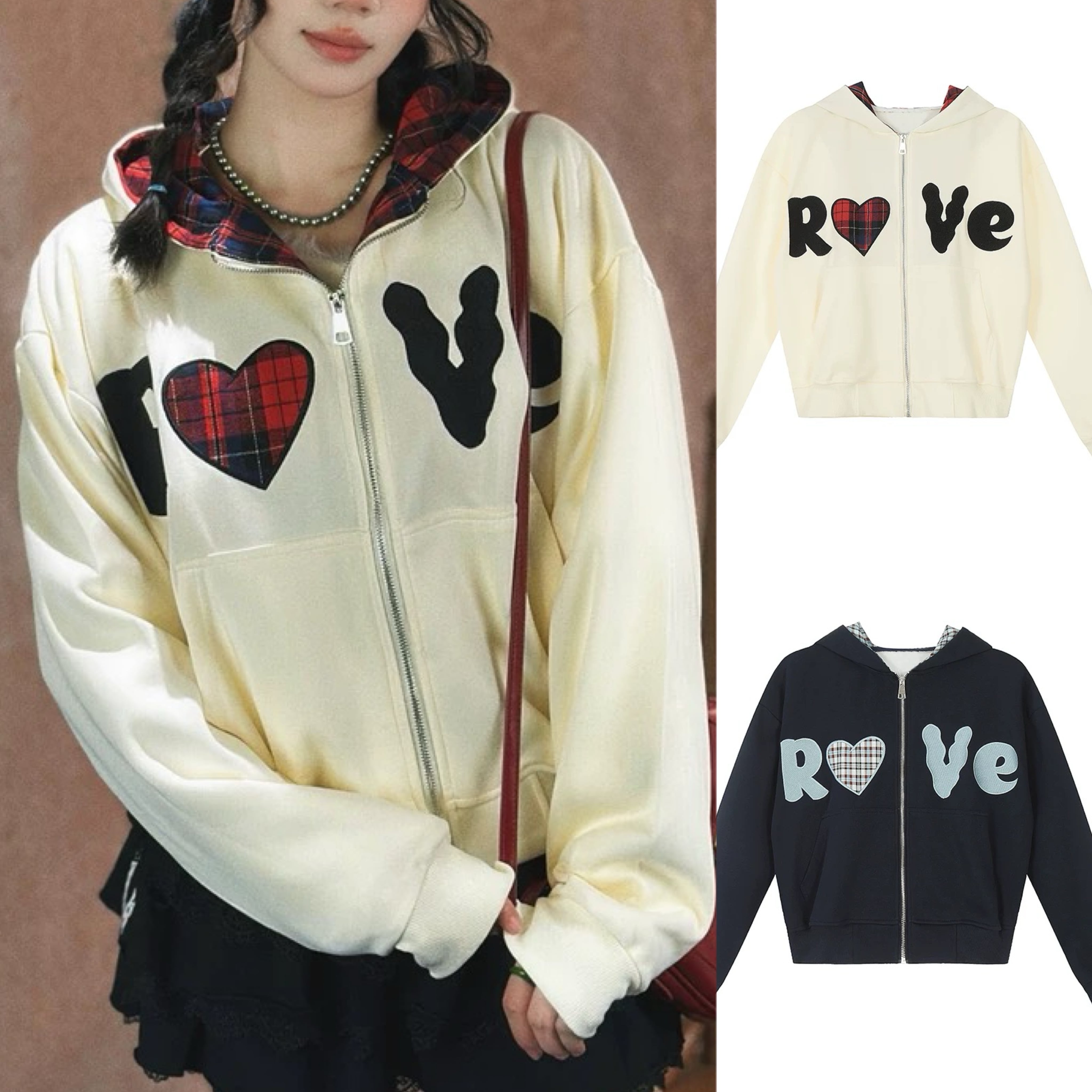 白 ネイビー ハート チェック トレーナー スウェット 水色 赤 ピンク カジュアル トップス 99 パーカー
