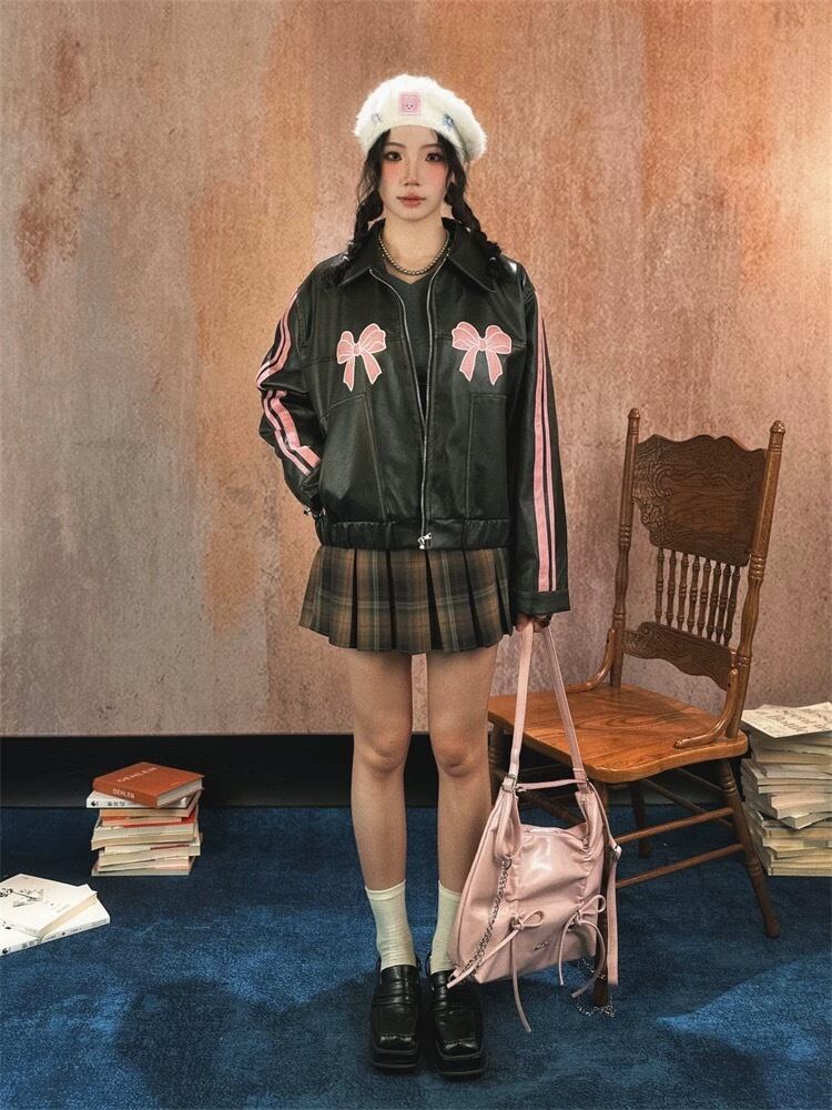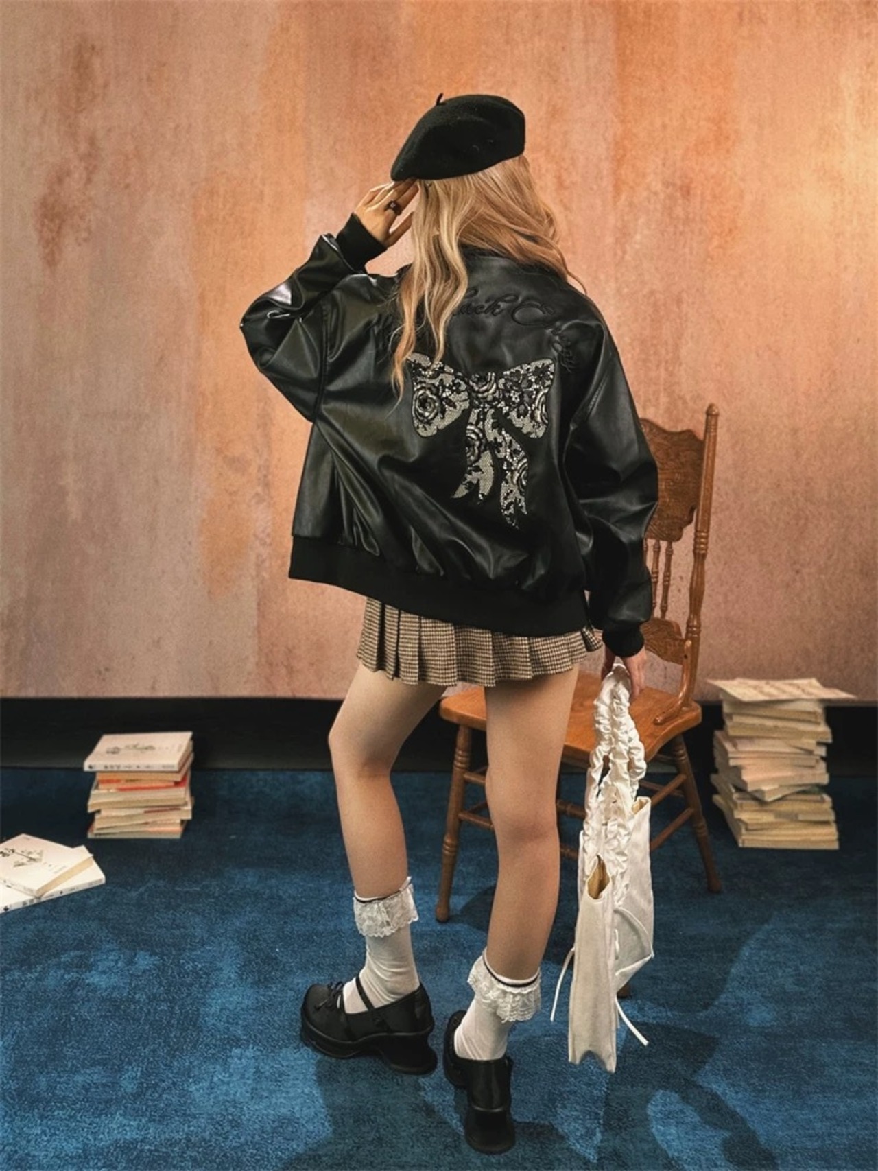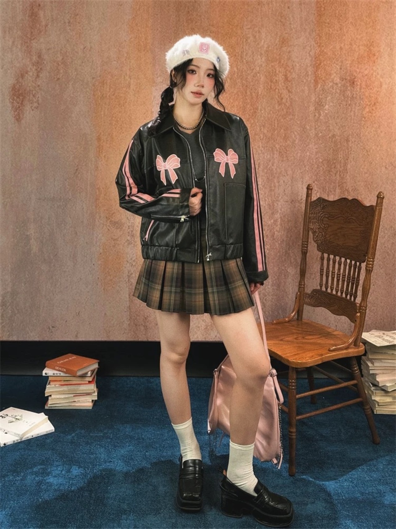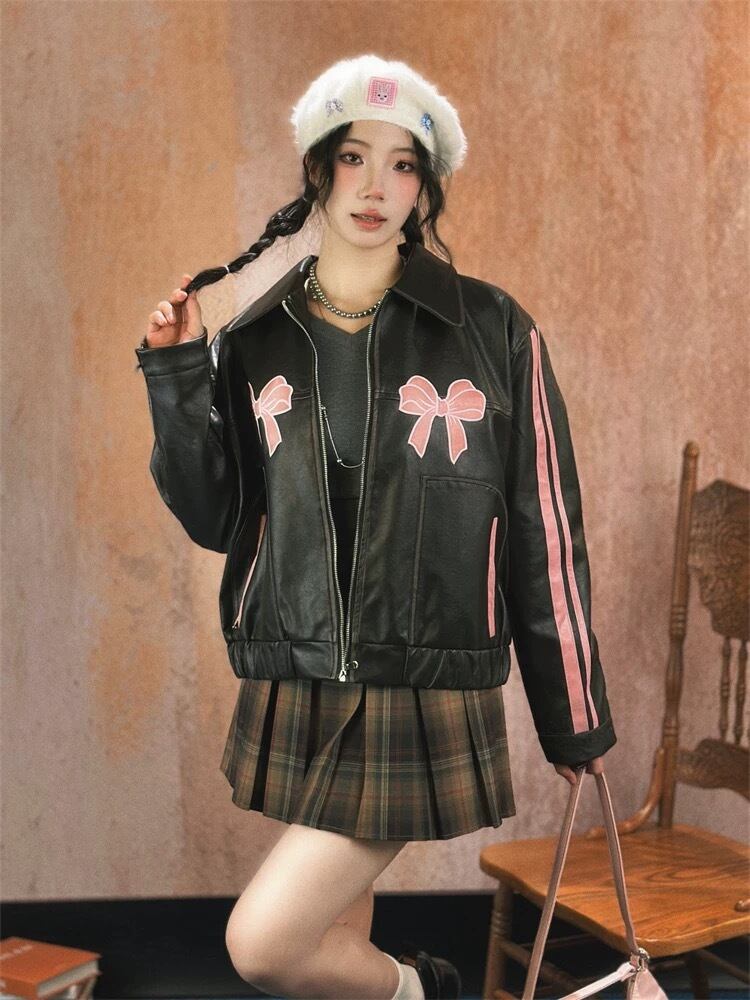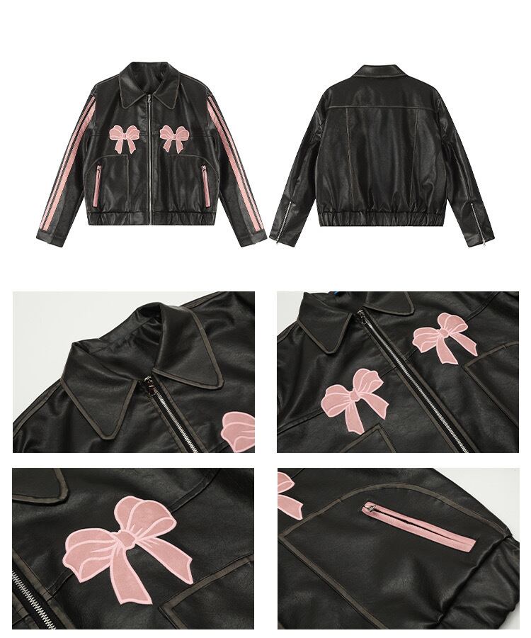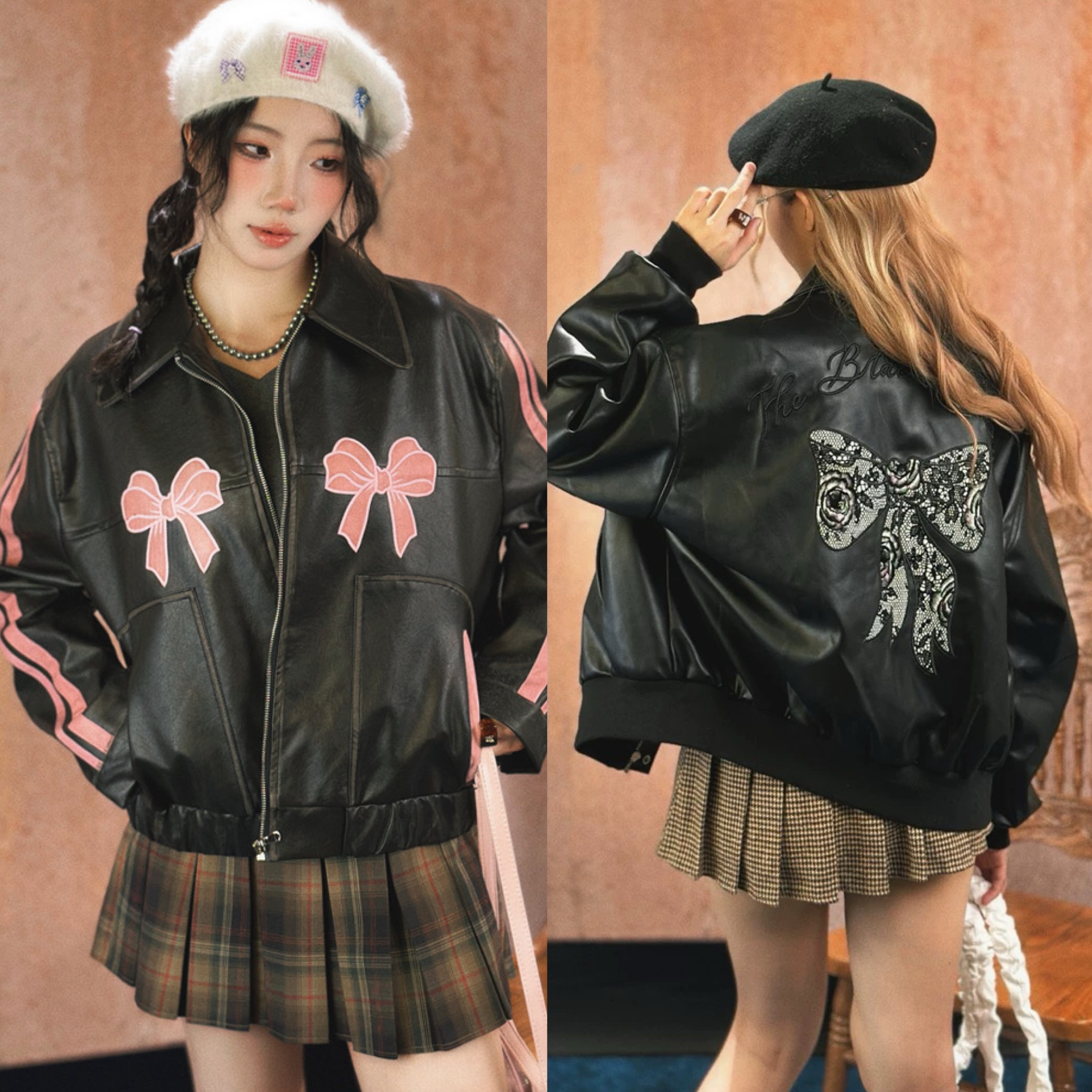 アウター ピンク 黒 レザー 革ジャン トレーナー スウェット 水色 赤 ピンク カジュアル トップス