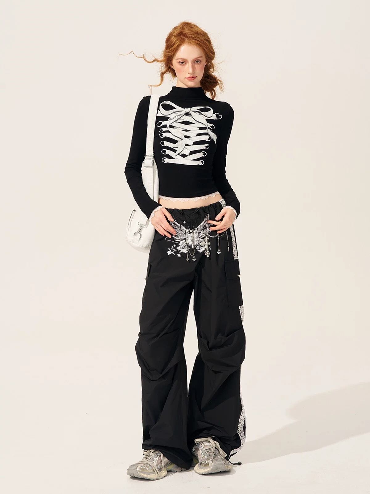 水色 あみあげ 黒 リボン Tシャツ ダンス Y2K 白 オフショルダー さくらんぼ 赤 黒 カーディガン セーター リボン ガーリー 原宿