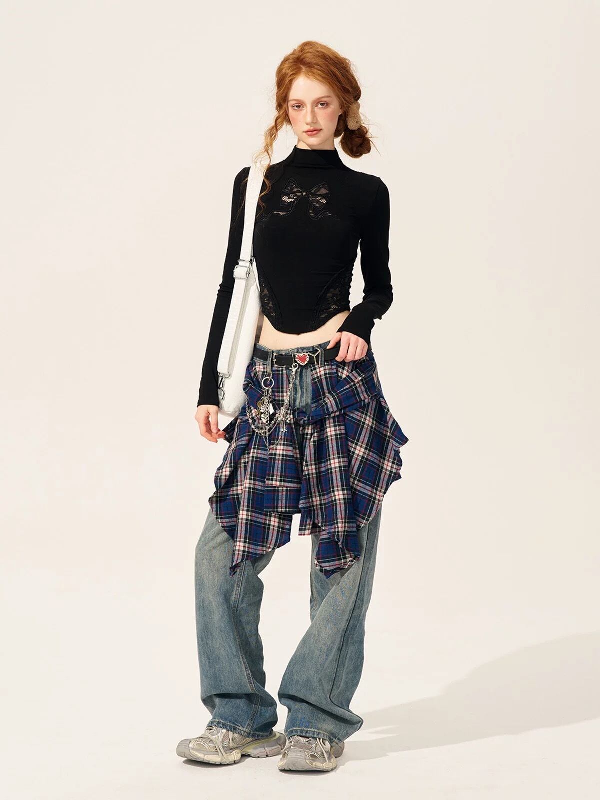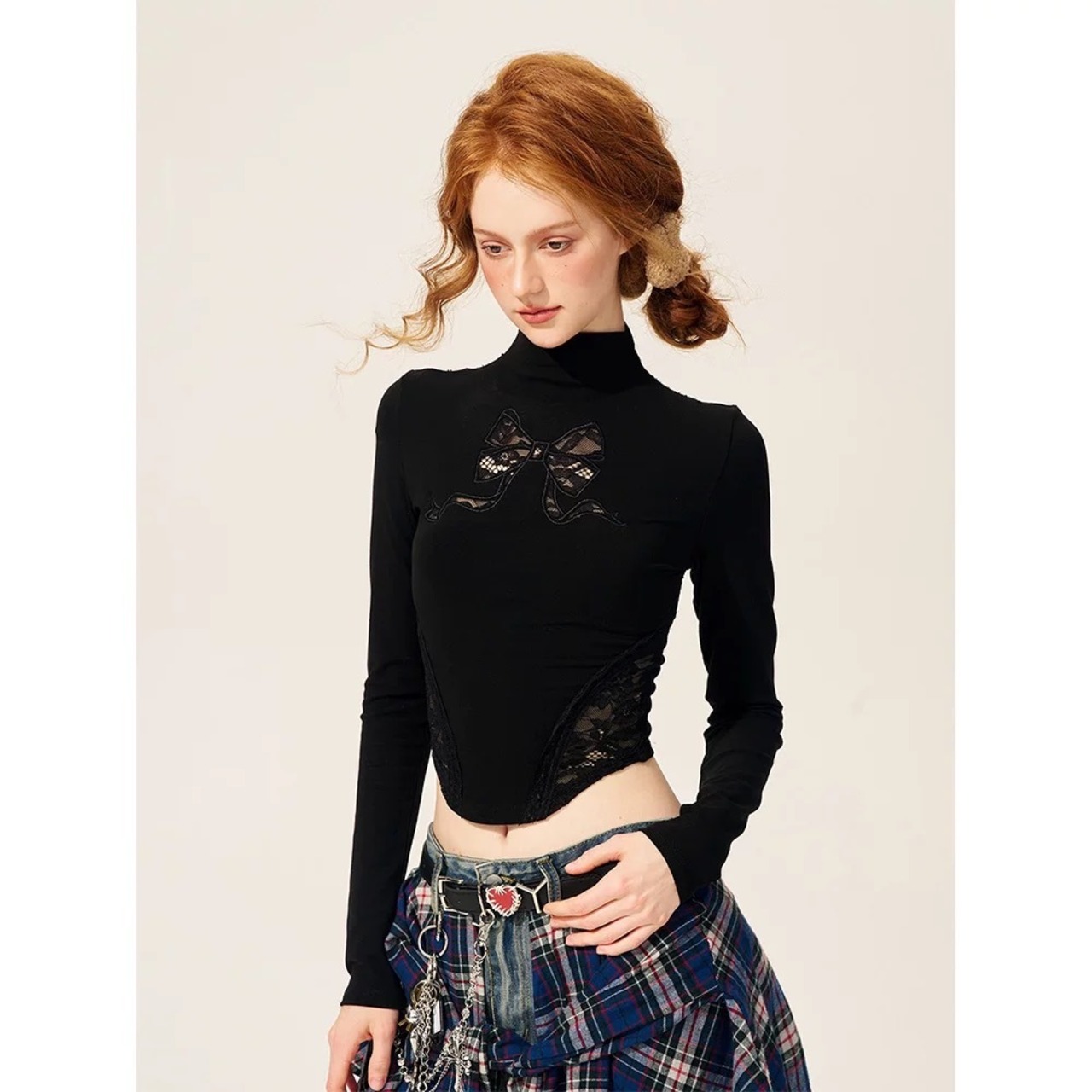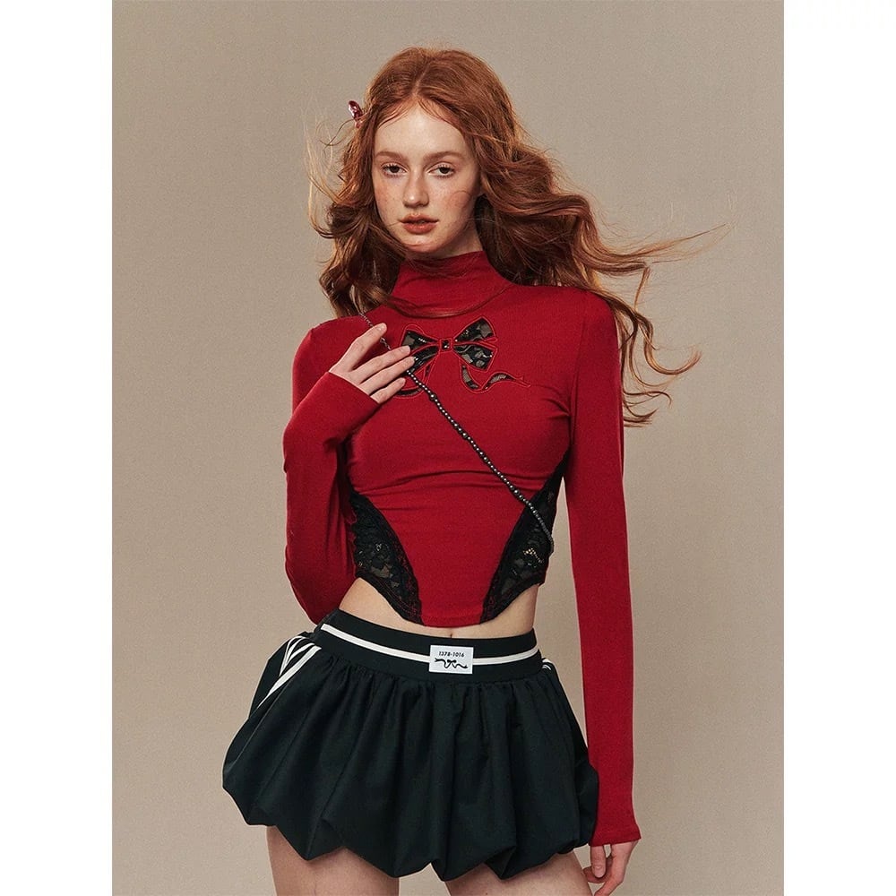 リボン 黒 赤 レース Tシャツ 白 オフショルダー さくらんぼ 赤 黒 カーディガン セーター リボン ガーリー 原宿