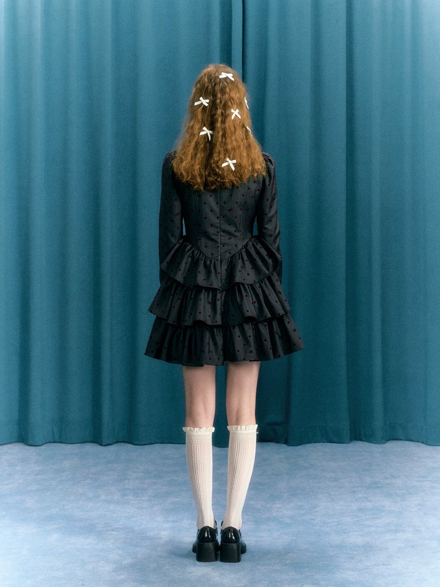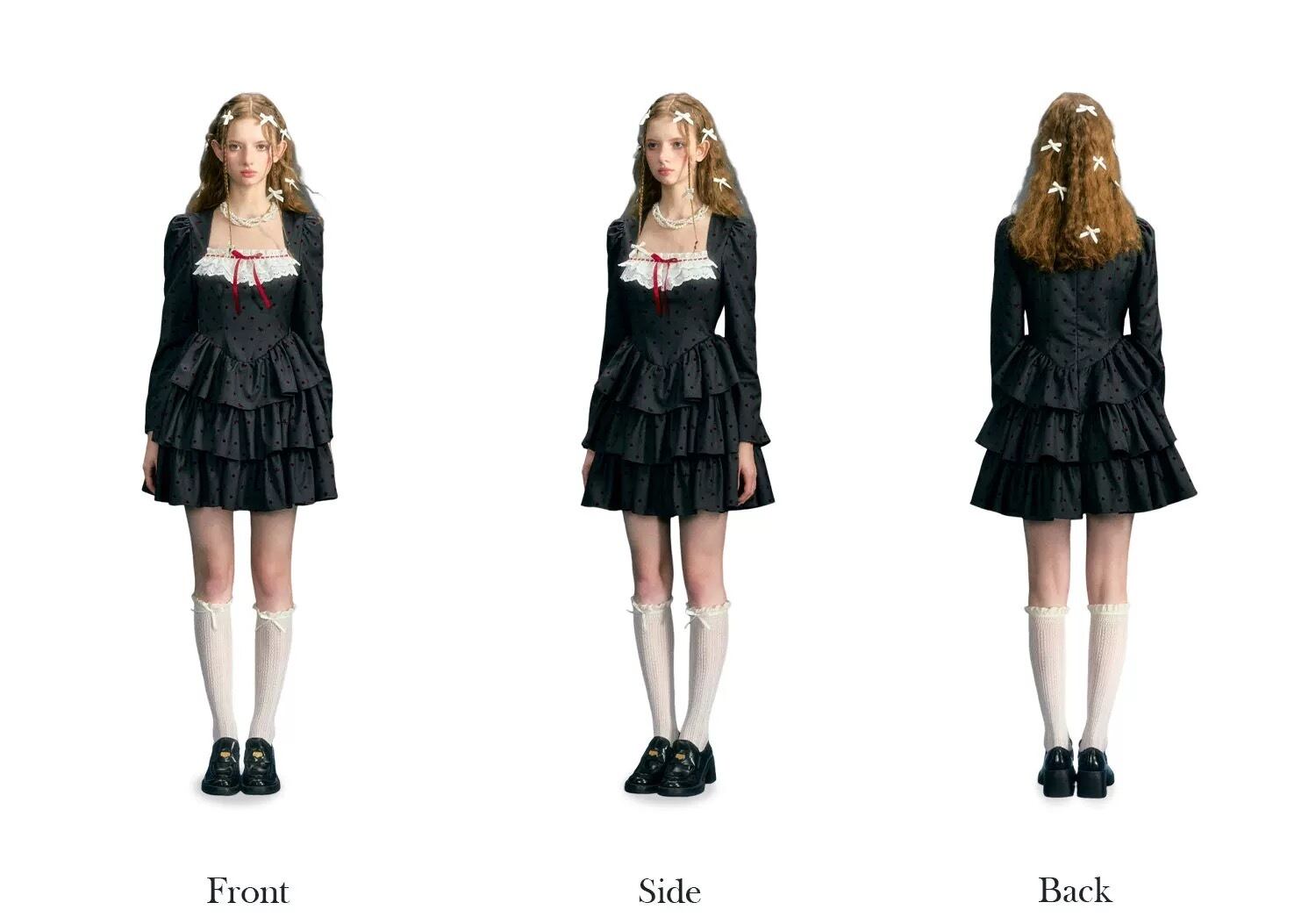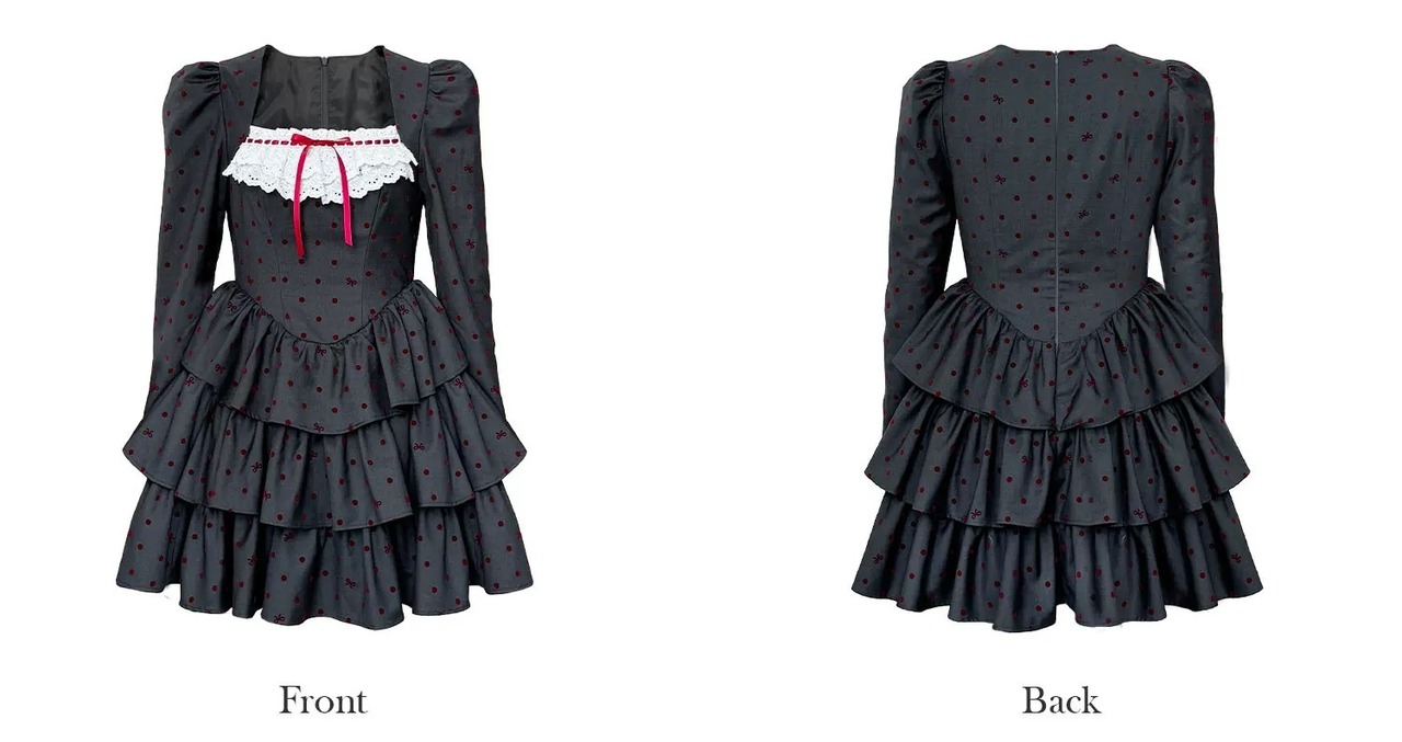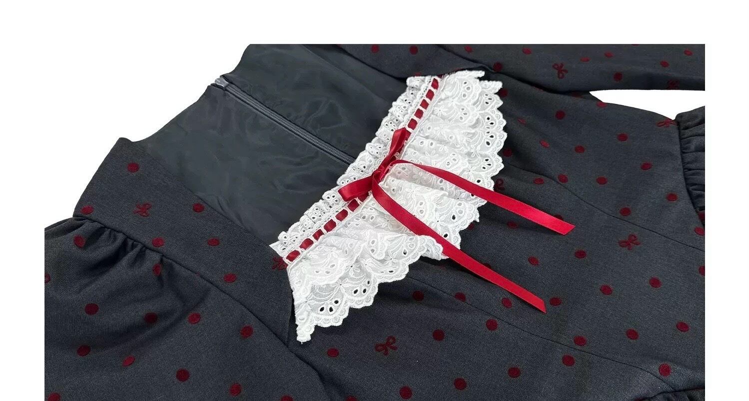 黒 赤 リボン ガーリー ドレス 水玉 可愛い 原宿 ドット