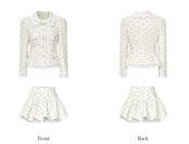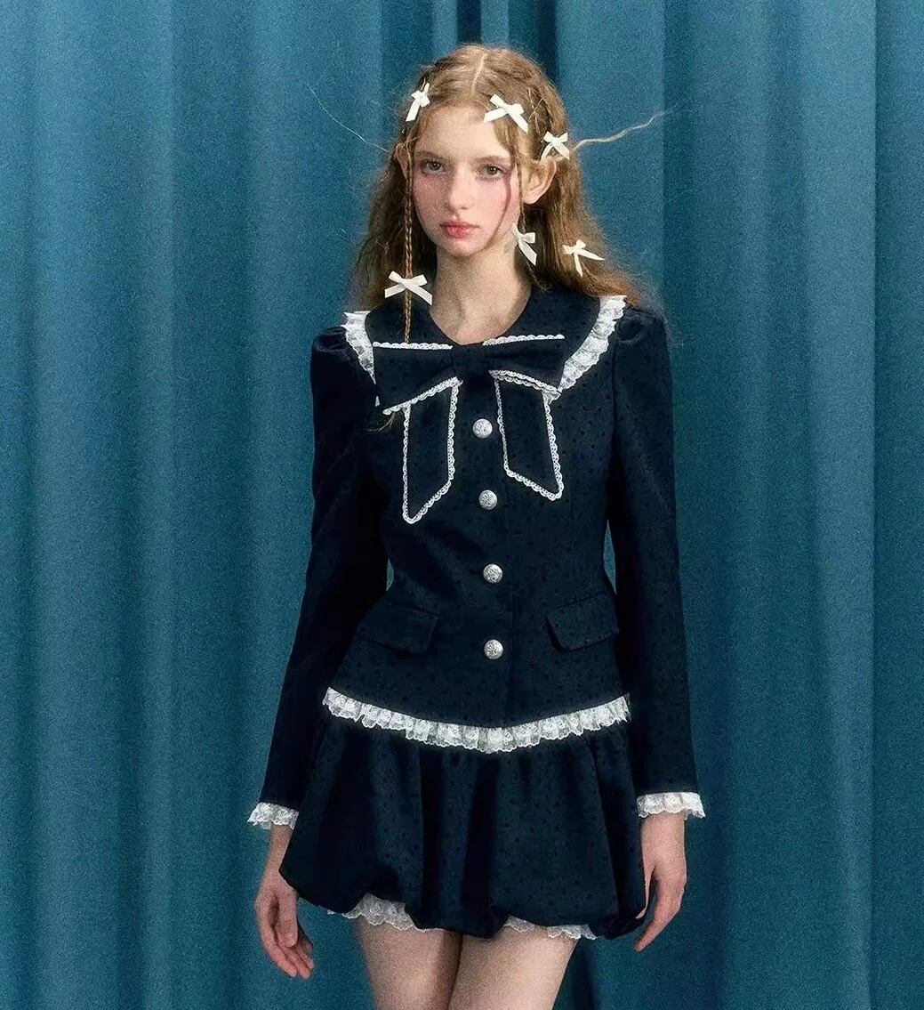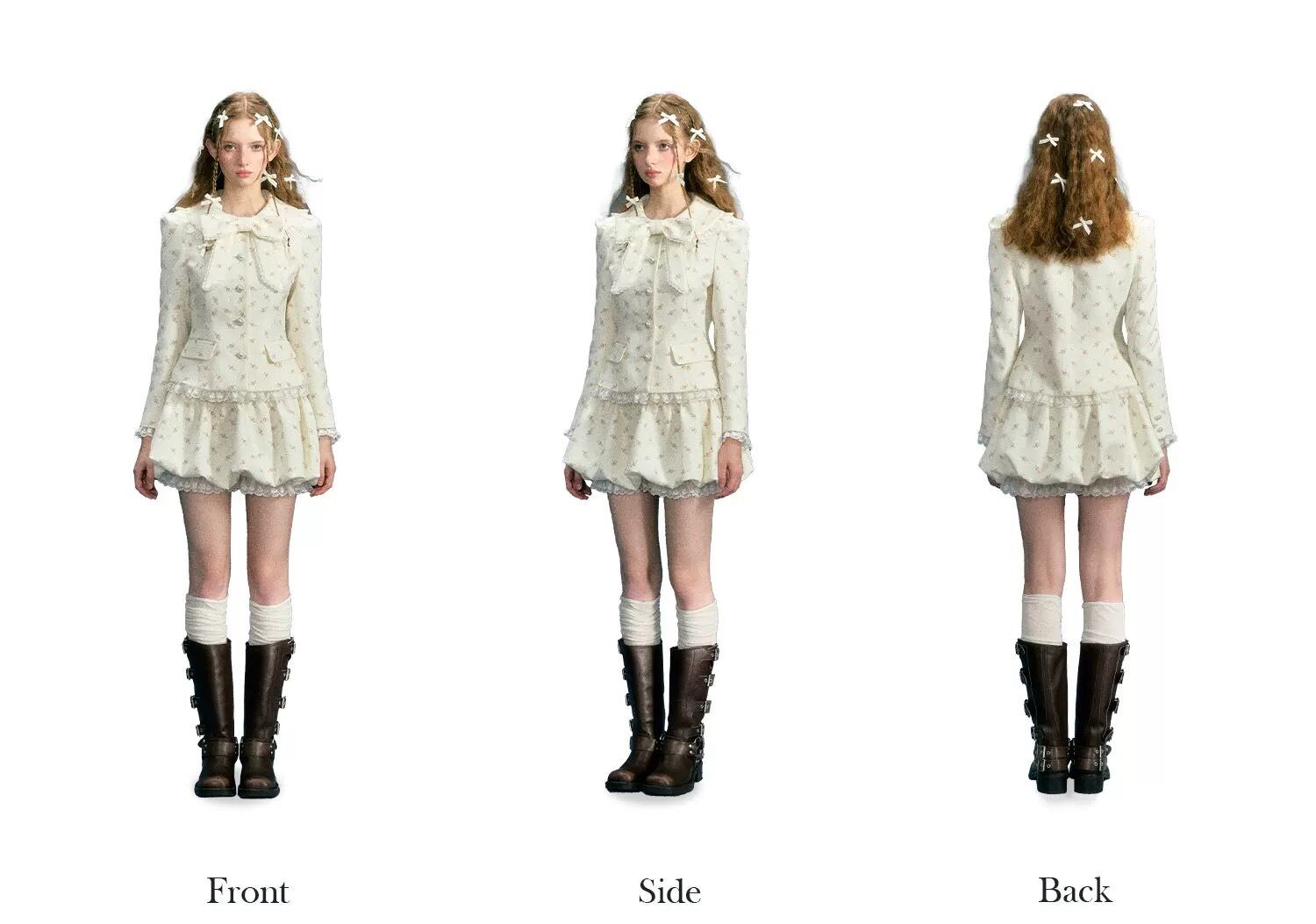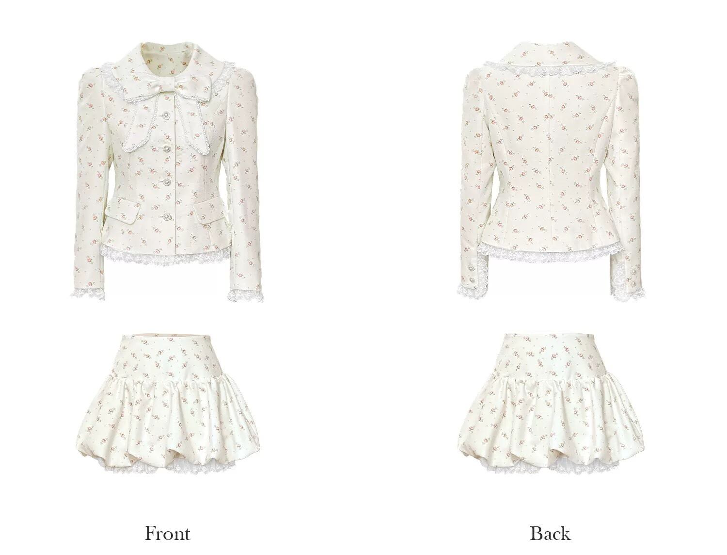 【ジャケット】カーディガン スーツ 黒 白 花柄 フラワー アウター リボン 可愛い スーツ カーディガン アウター ジャケット