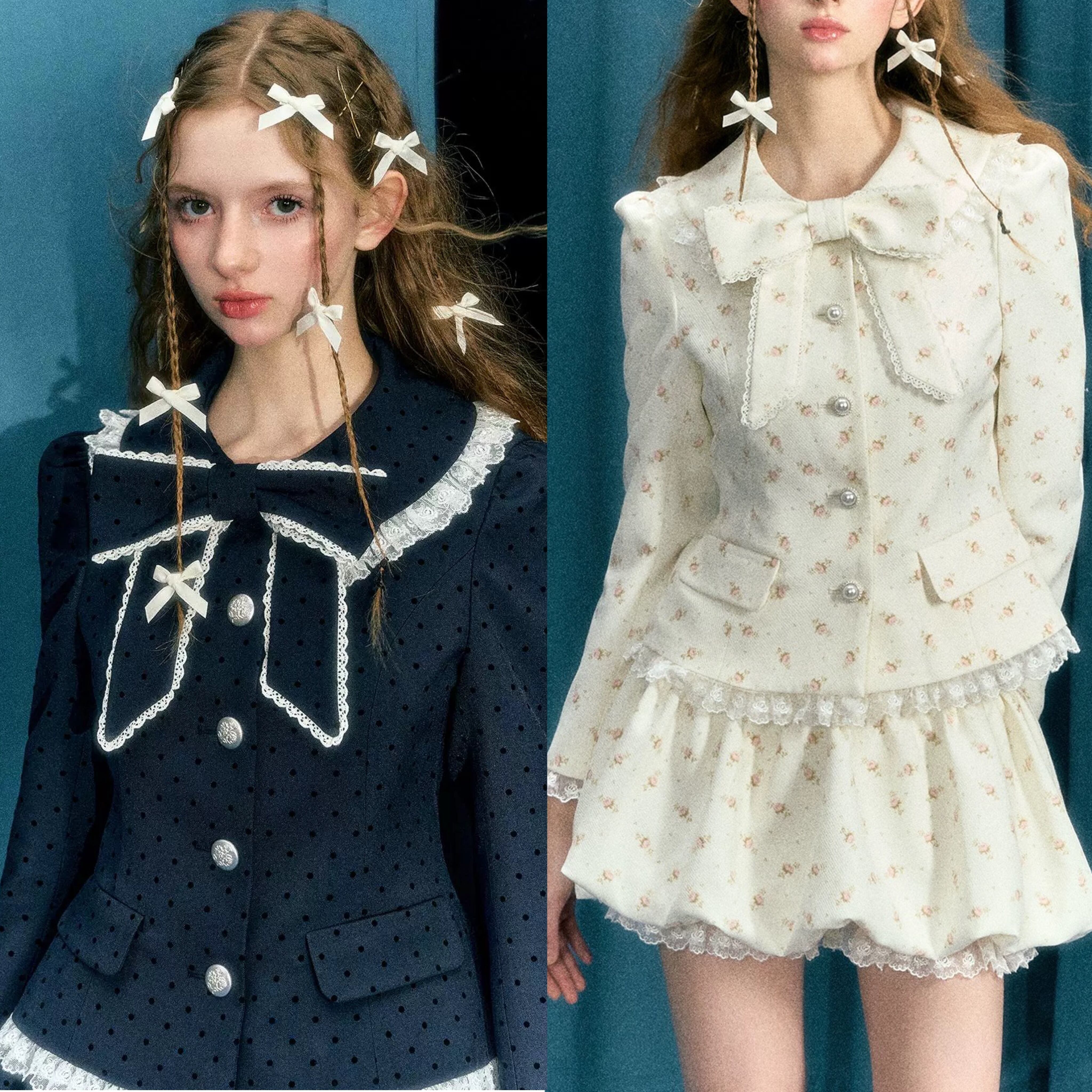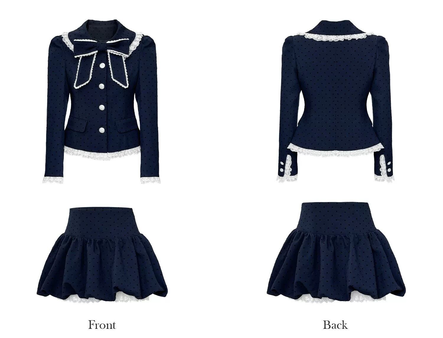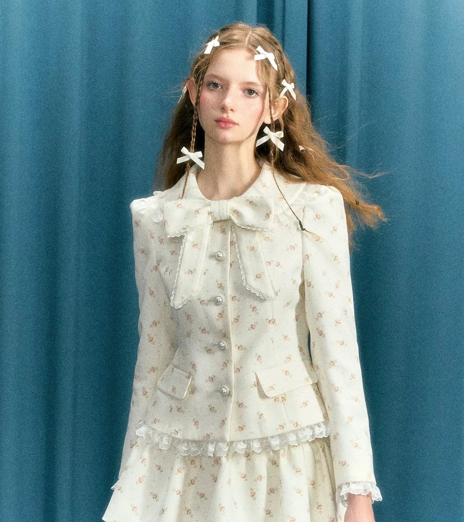【ジャケット】カーディガン スーツ 黒 白 花柄 フラワー アウター リボン 可愛い スーツ カーディガン アウター ジャケット