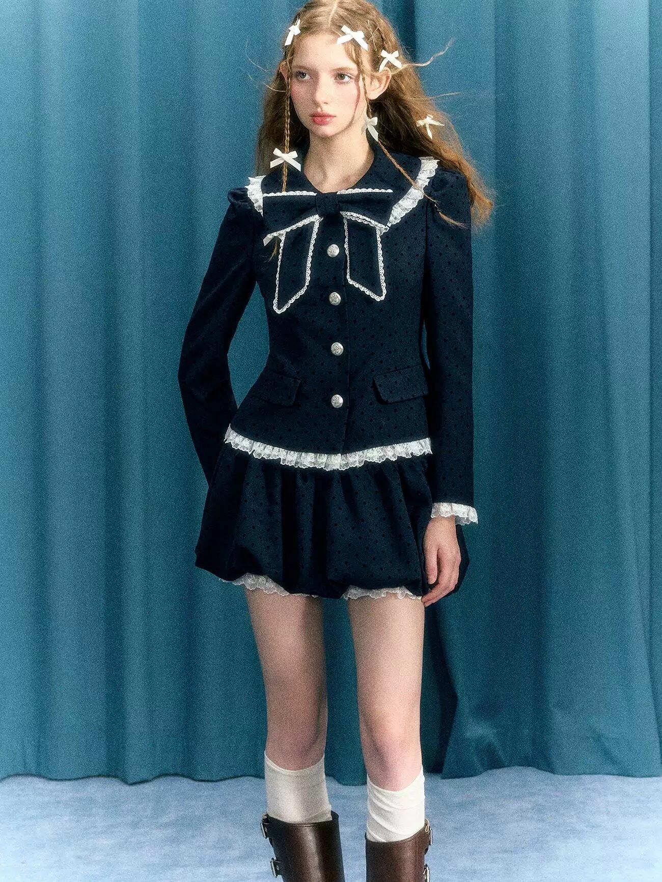 【スカート】ミニスカート ネイビー ボトムス 白 ガーリー 原宿 お嬢様 可愛い
