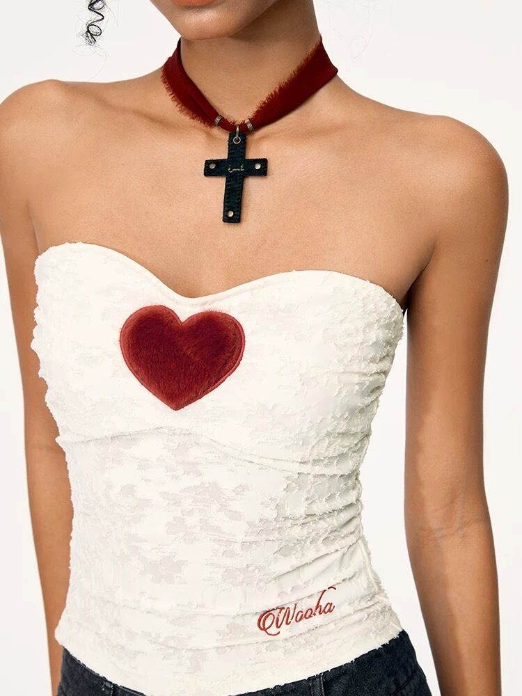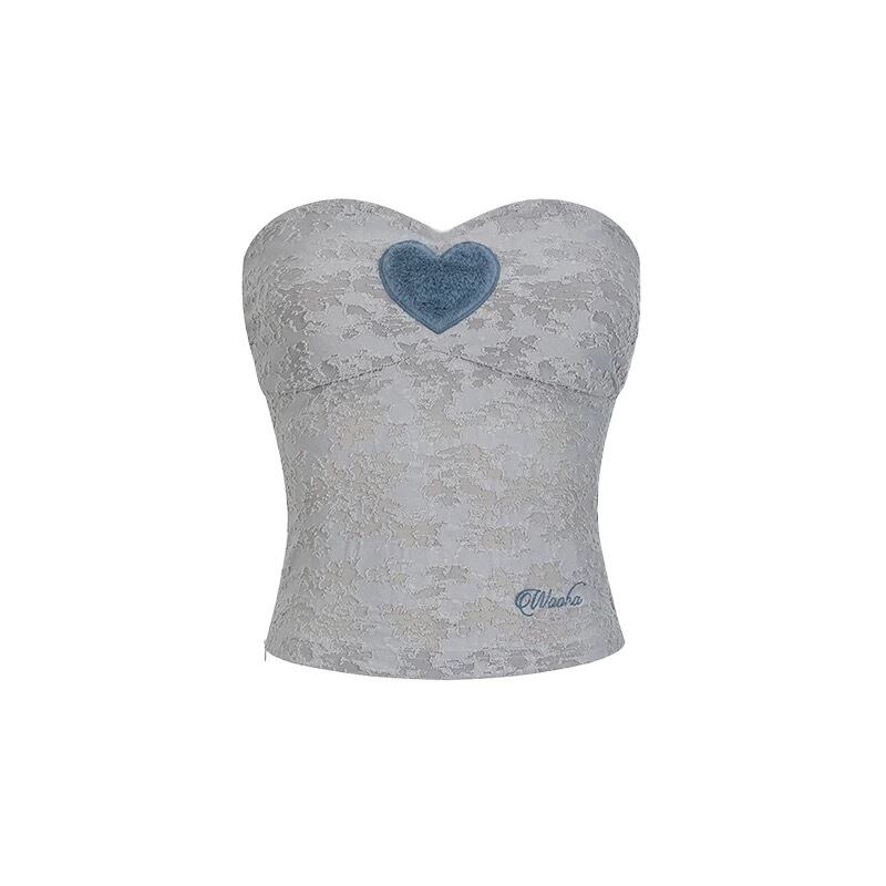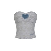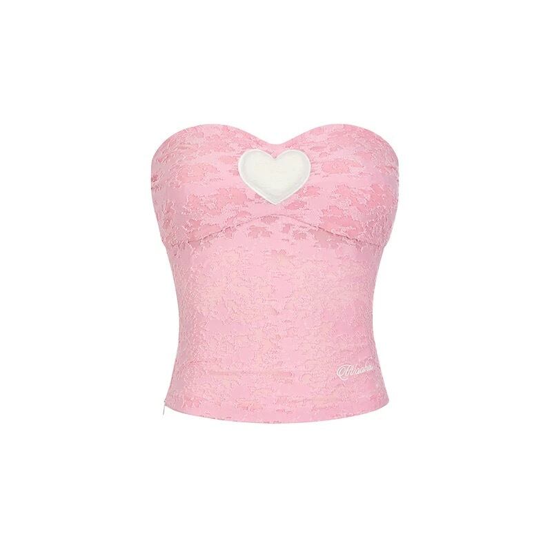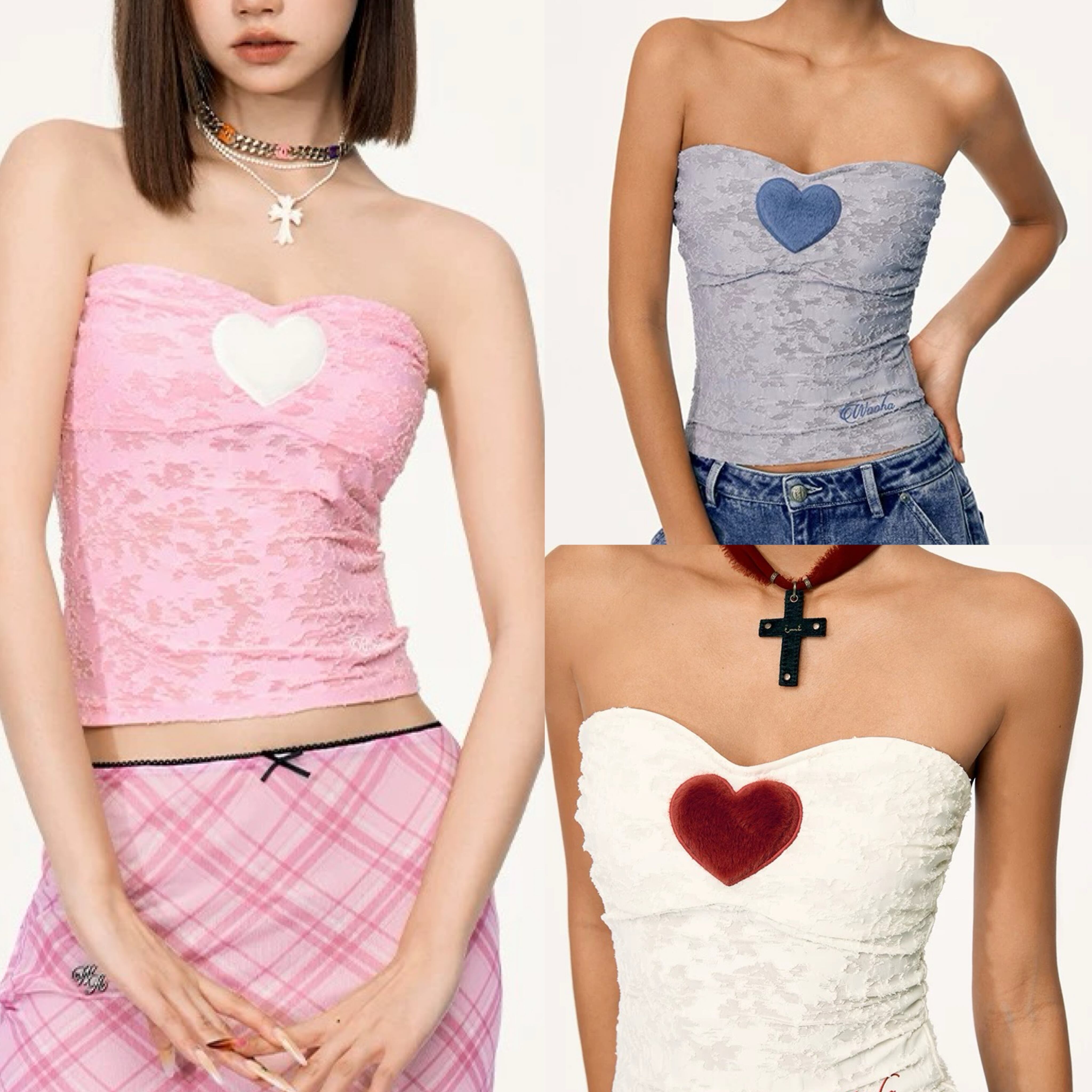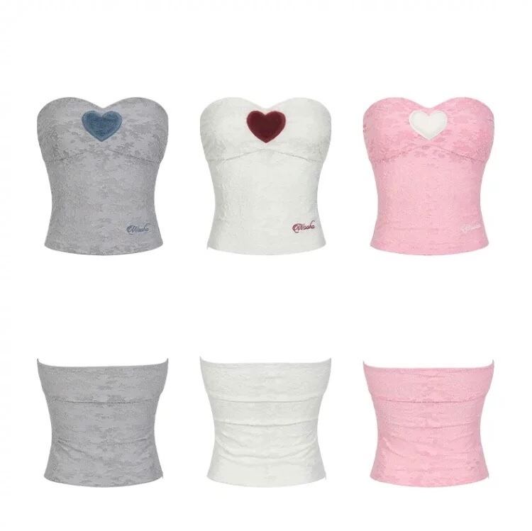 ベアトップ 白 グレー ピンク ブラウス ハート トップス ガーリー ダンス クラブ 可愛い 原宿 Y2K キャミソール