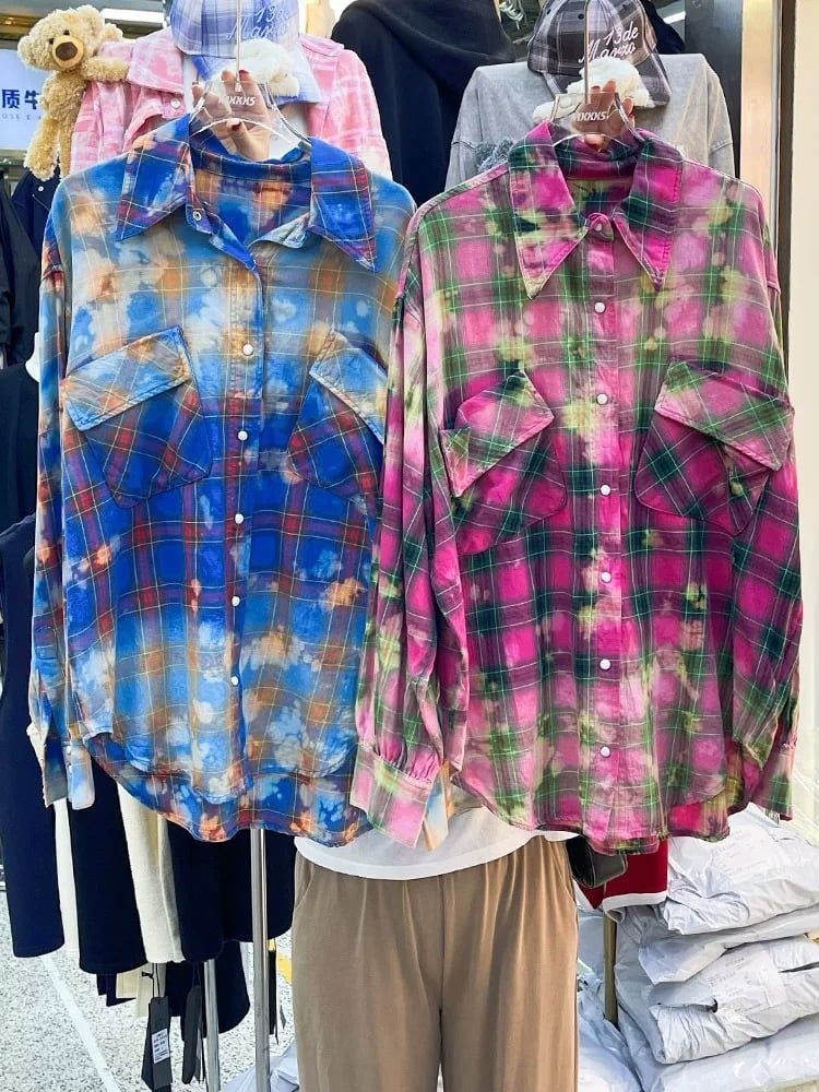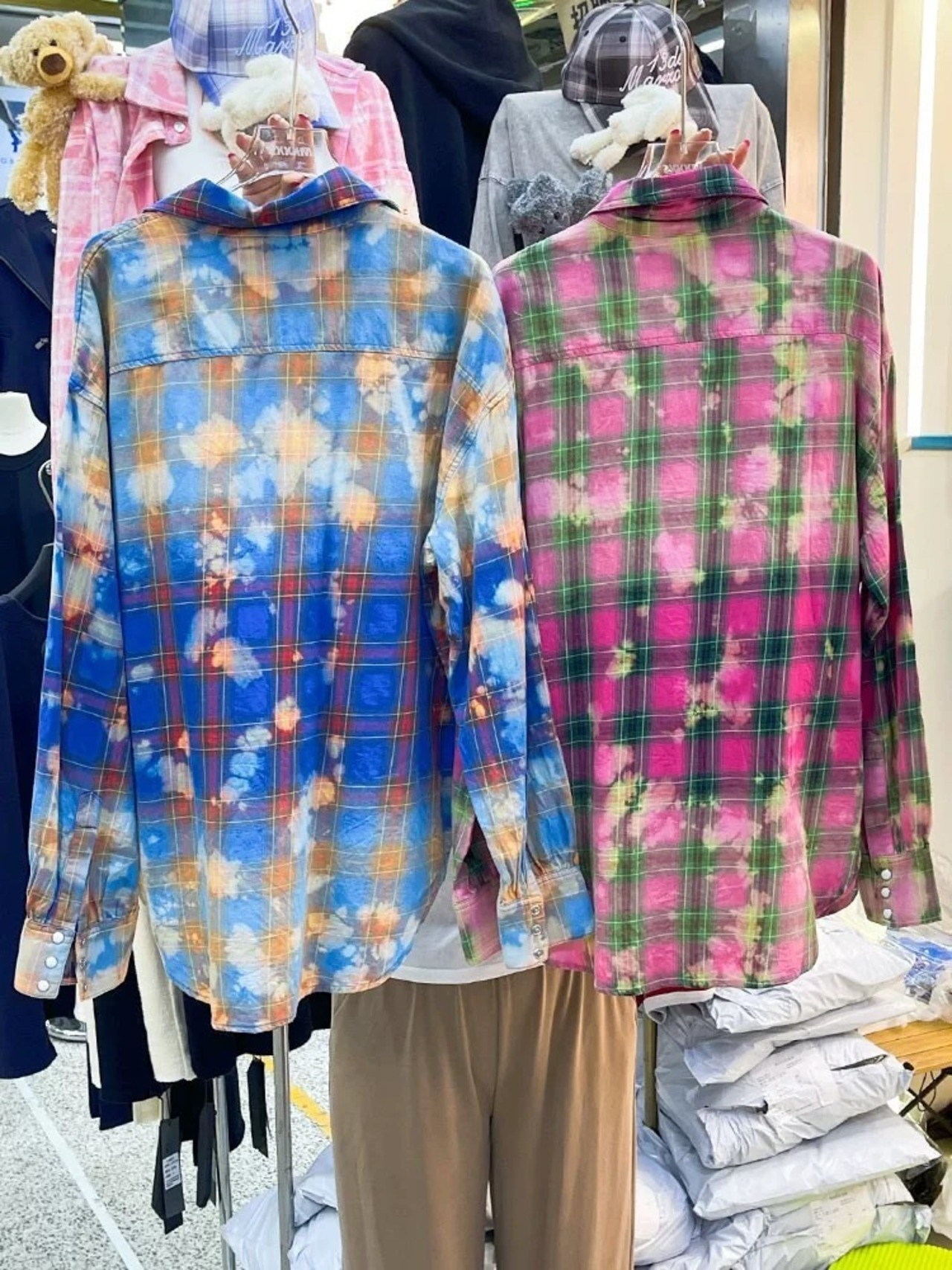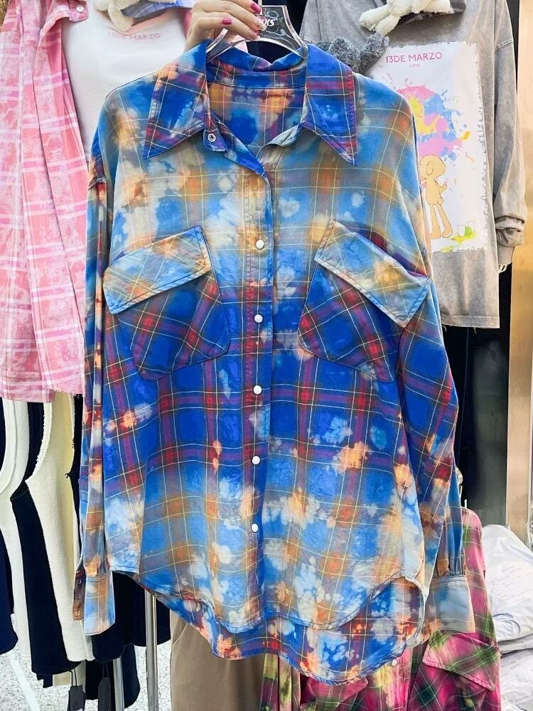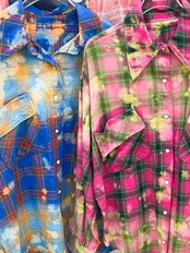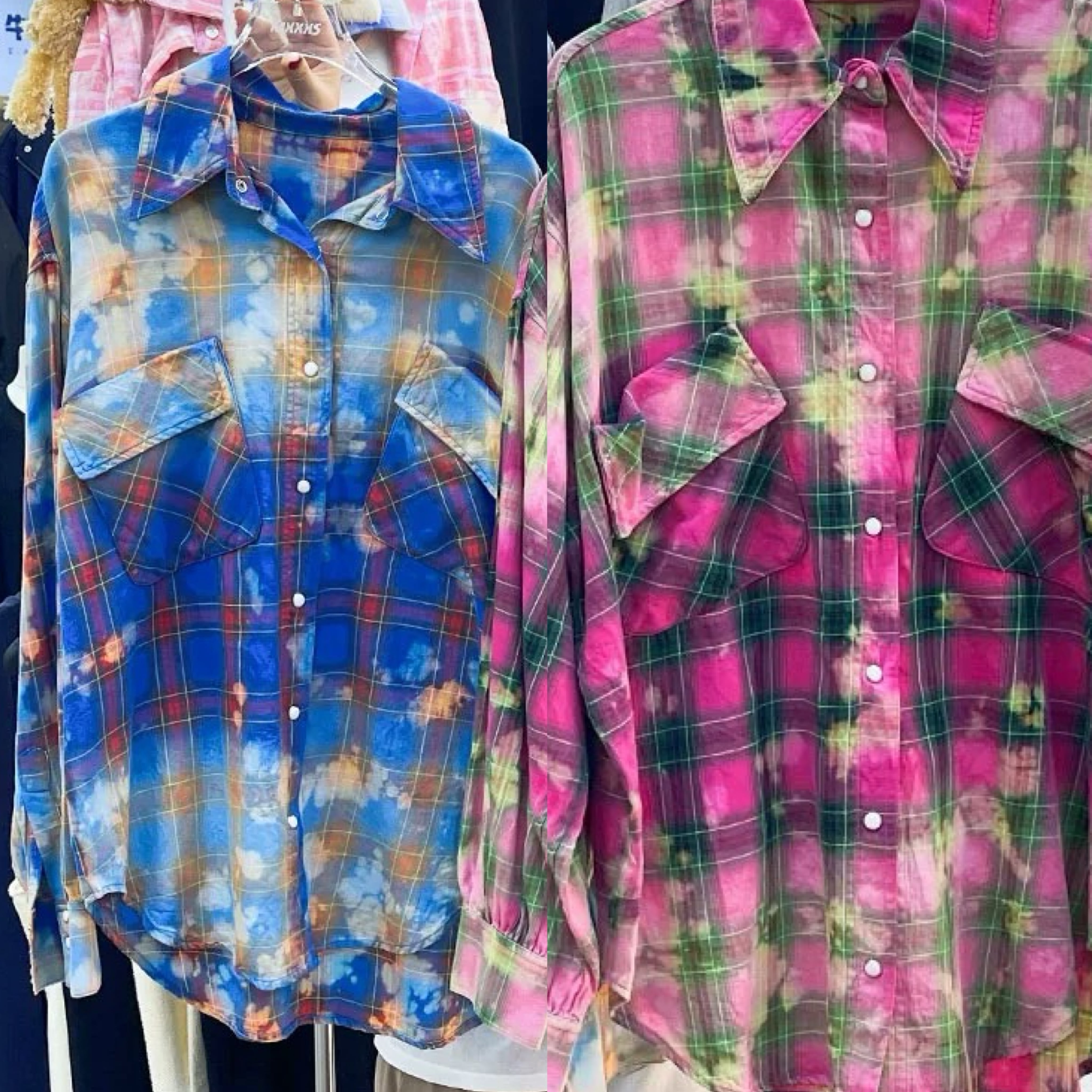 ブルー ピンク グラデーション 黄色 ネルシャツ チェック シャツ ブラウス カジュアル