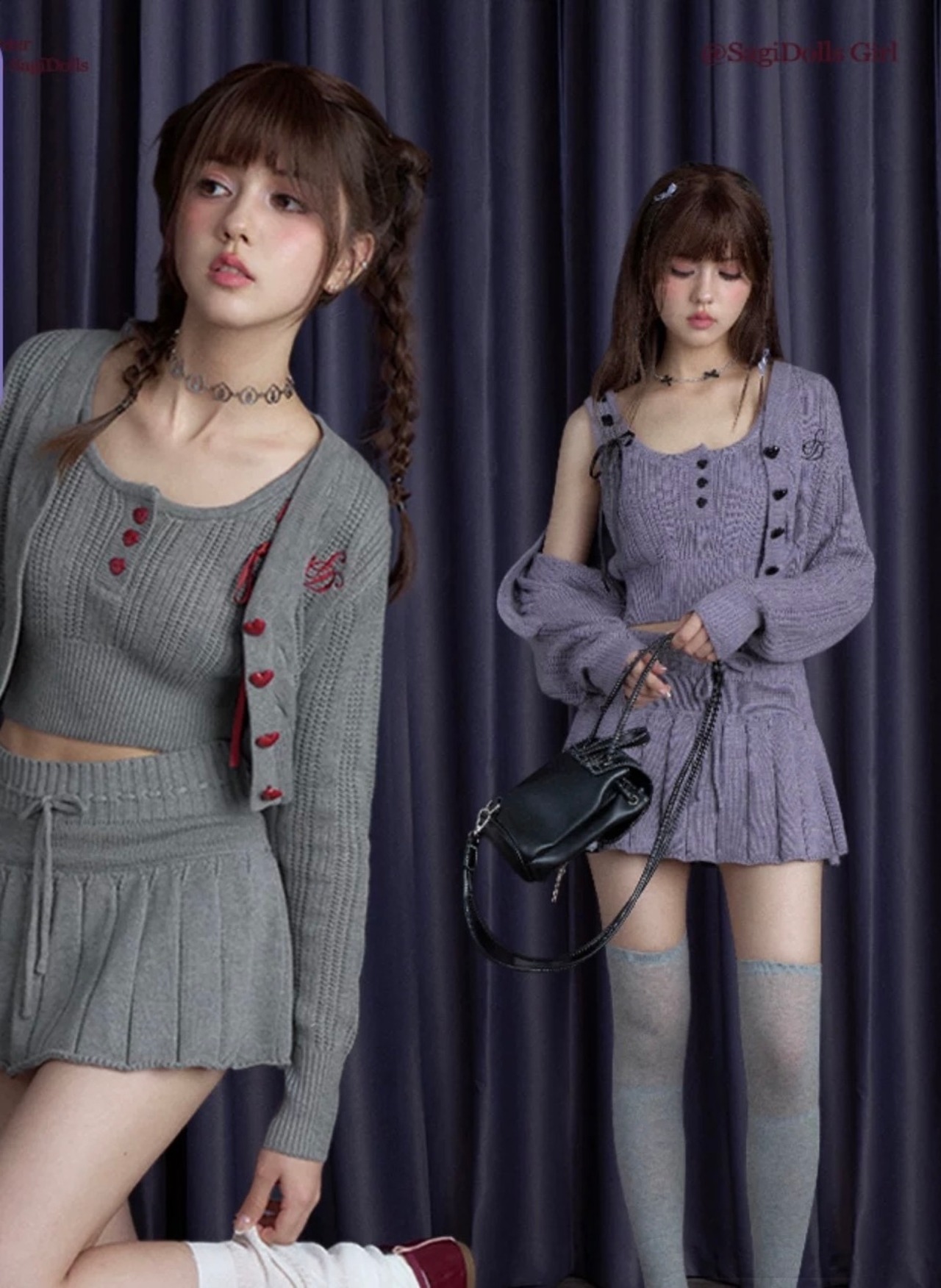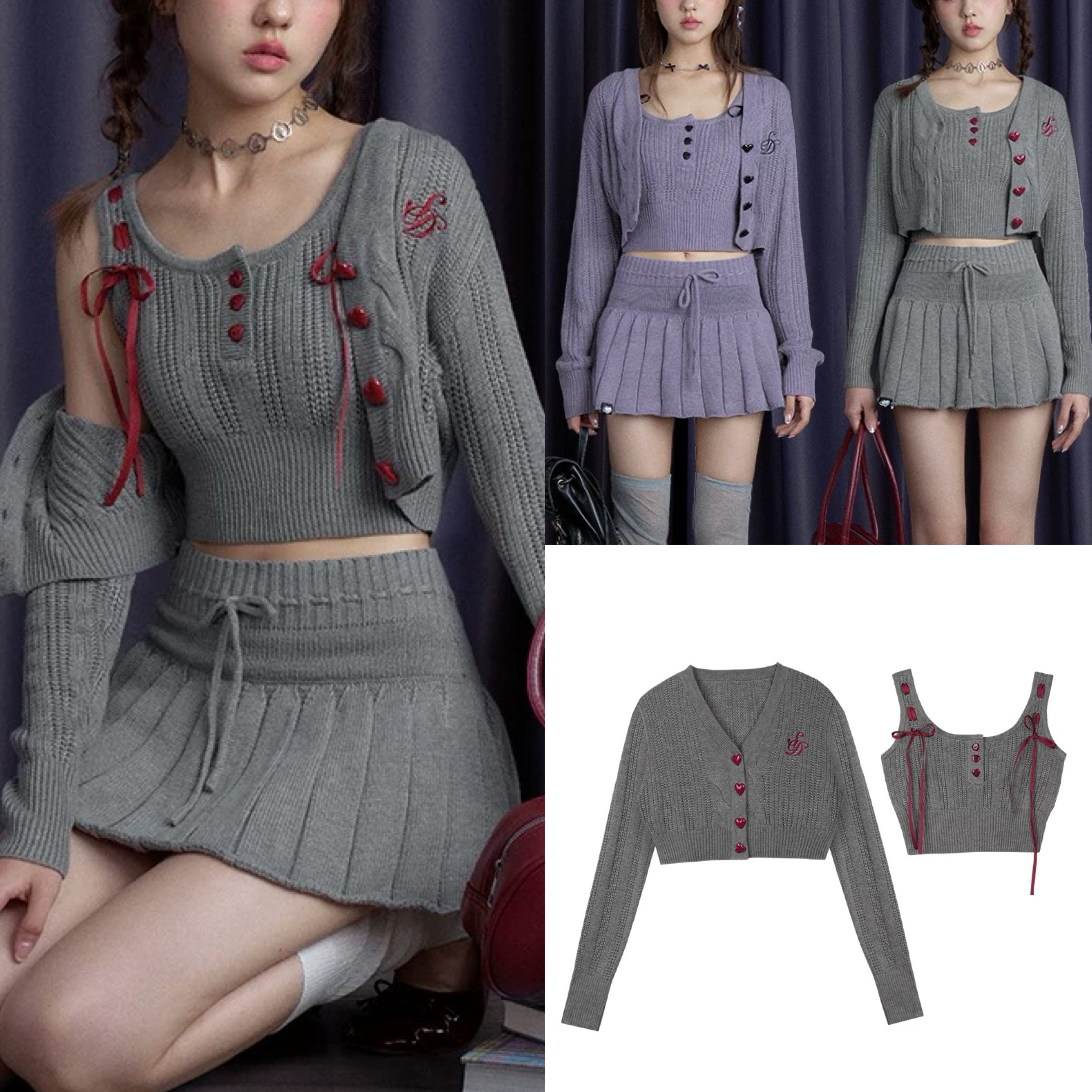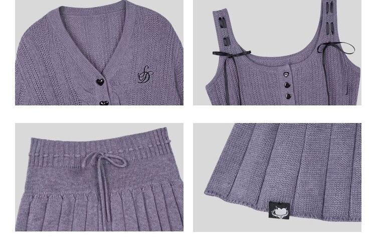 【カーディガンセット】グレー 紫 セーター キャミソール ガーリー 可愛い 姫 アウター スクール ニット アウター ブラウス