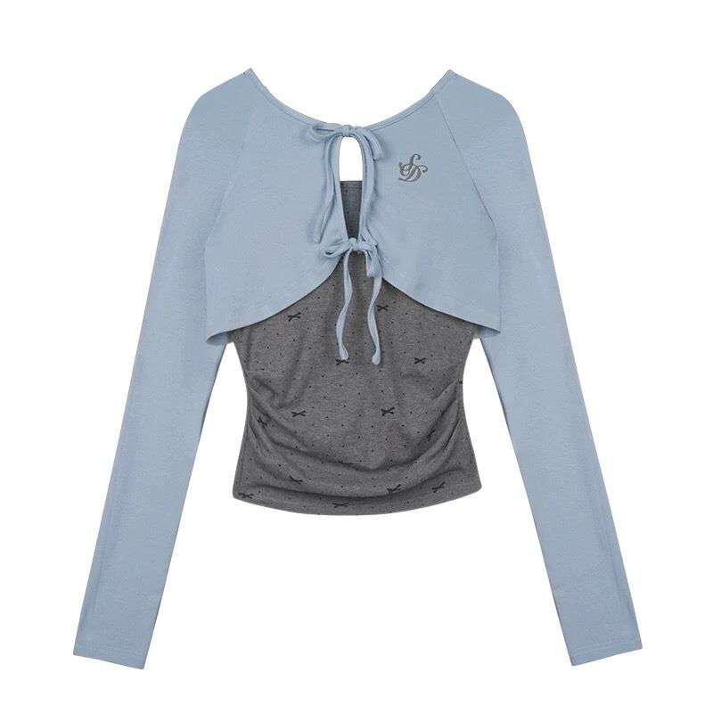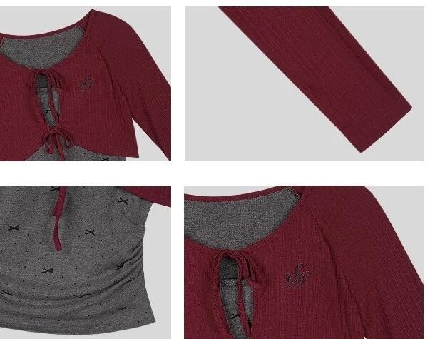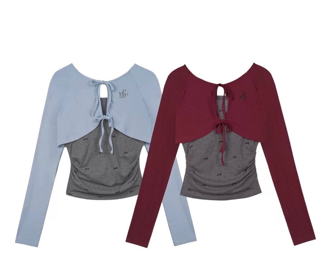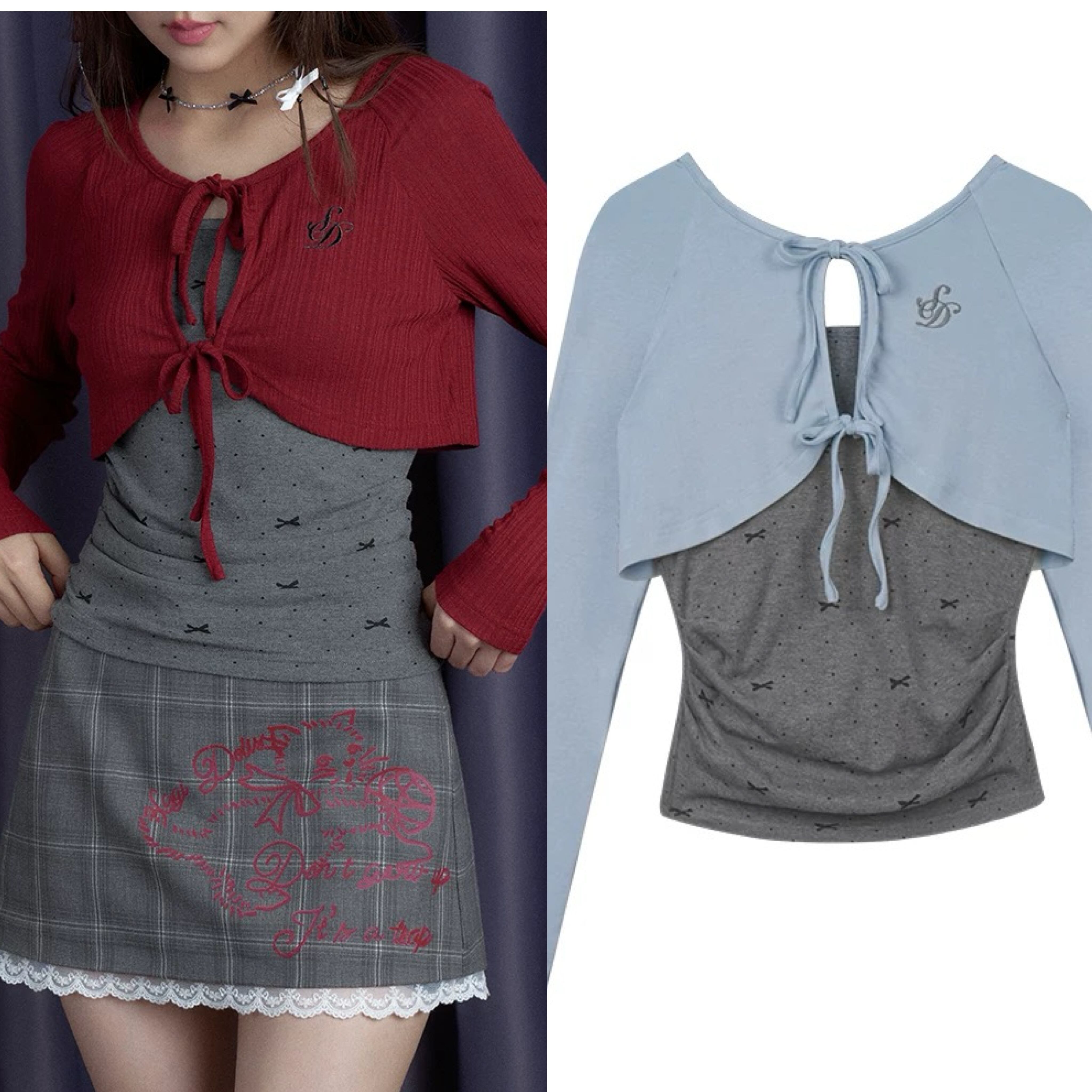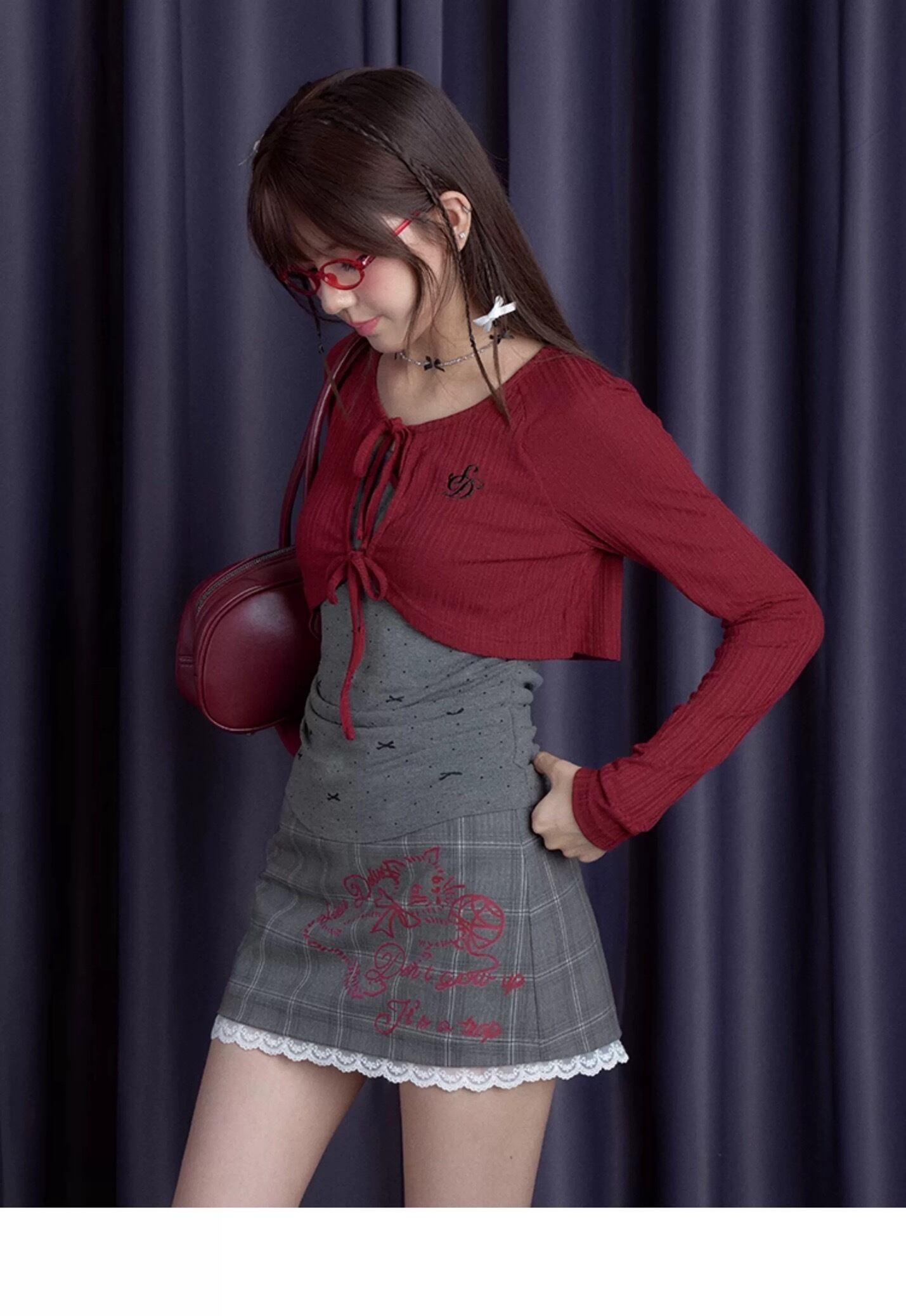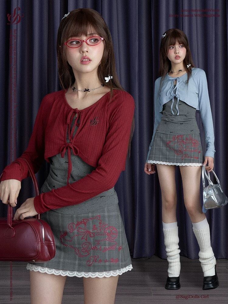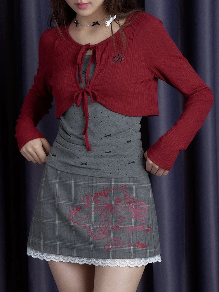 【トップスセット】カーディガン グレー 赤 ブラウス ガーリー 水色 トップス キャミソール