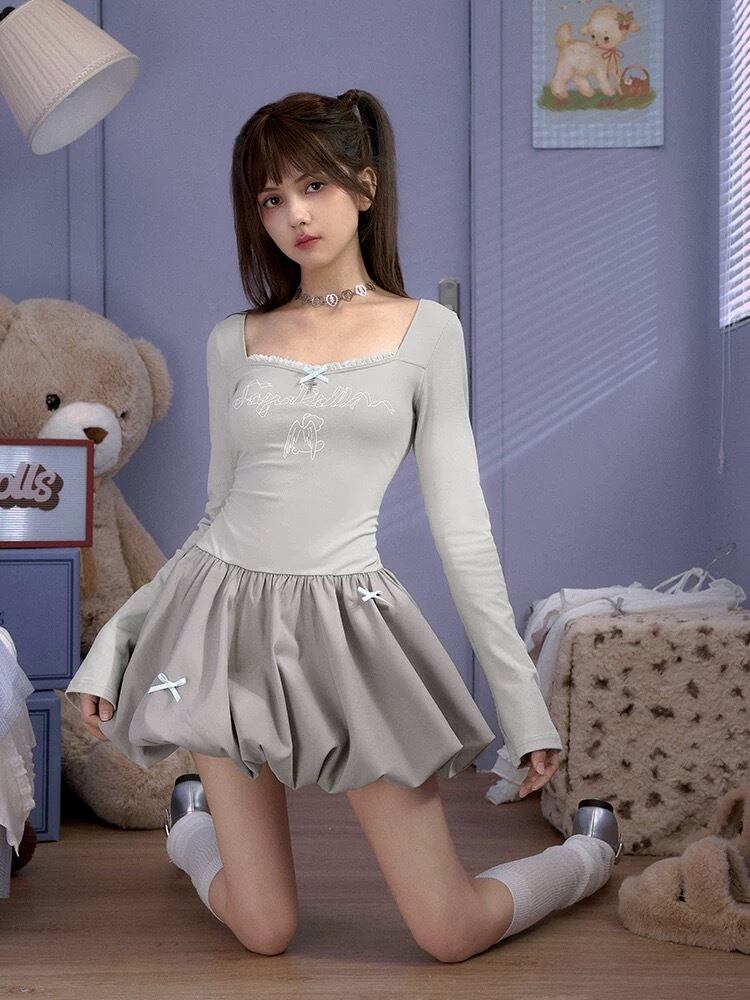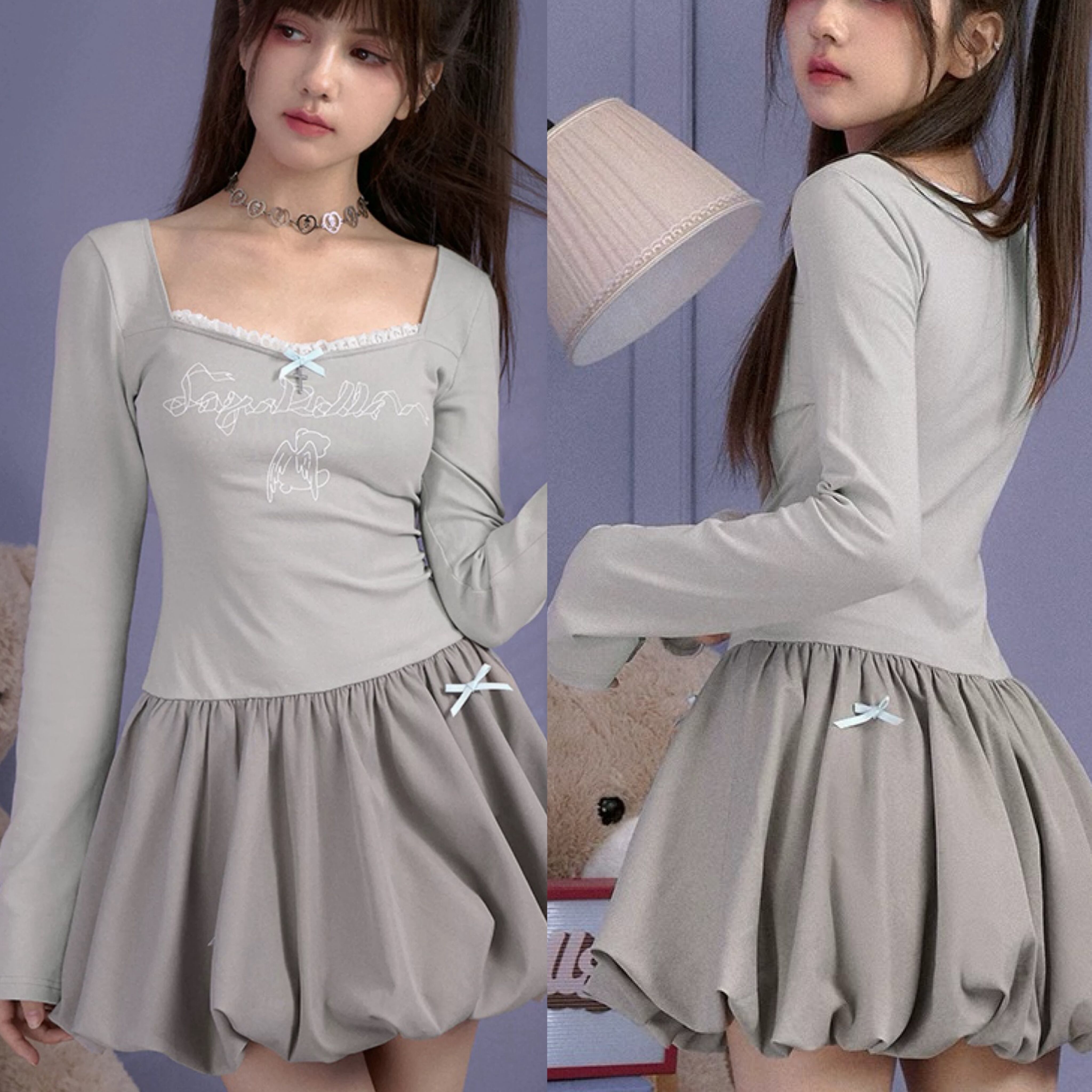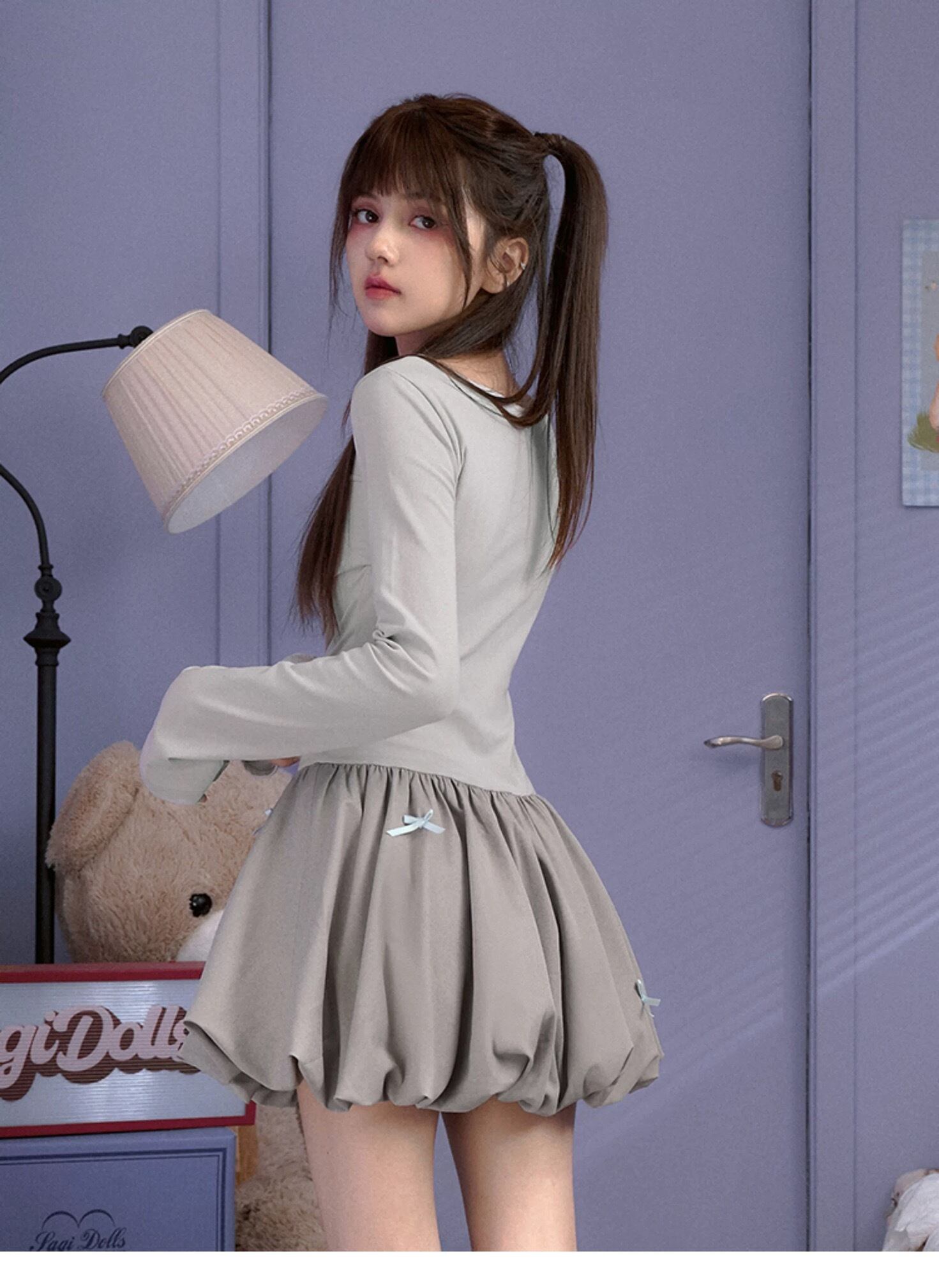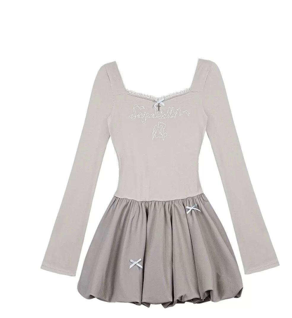 グレー ベージュ 可愛い ワンピース 可愛い 姫 カジュアル スウェット リボン
