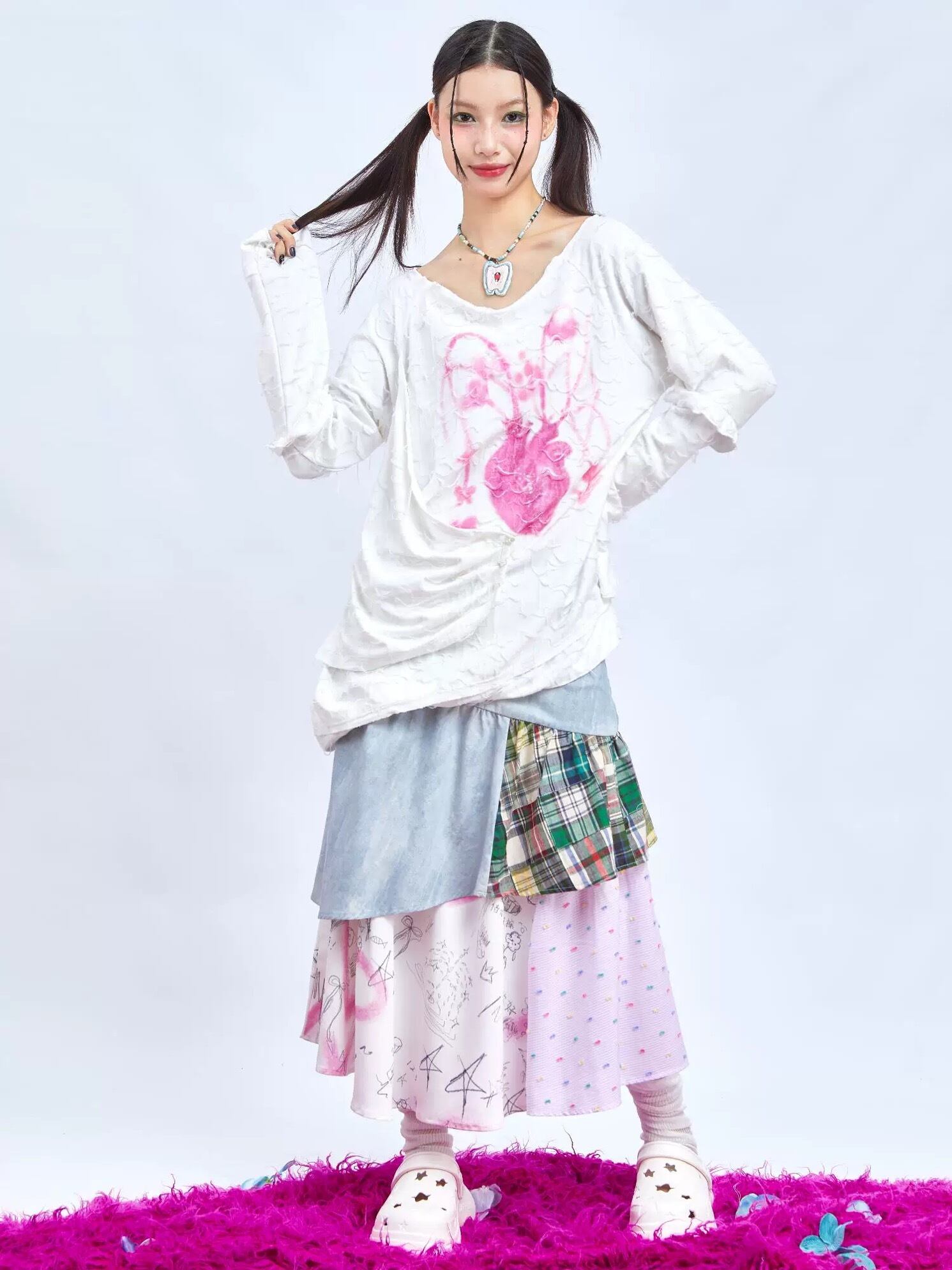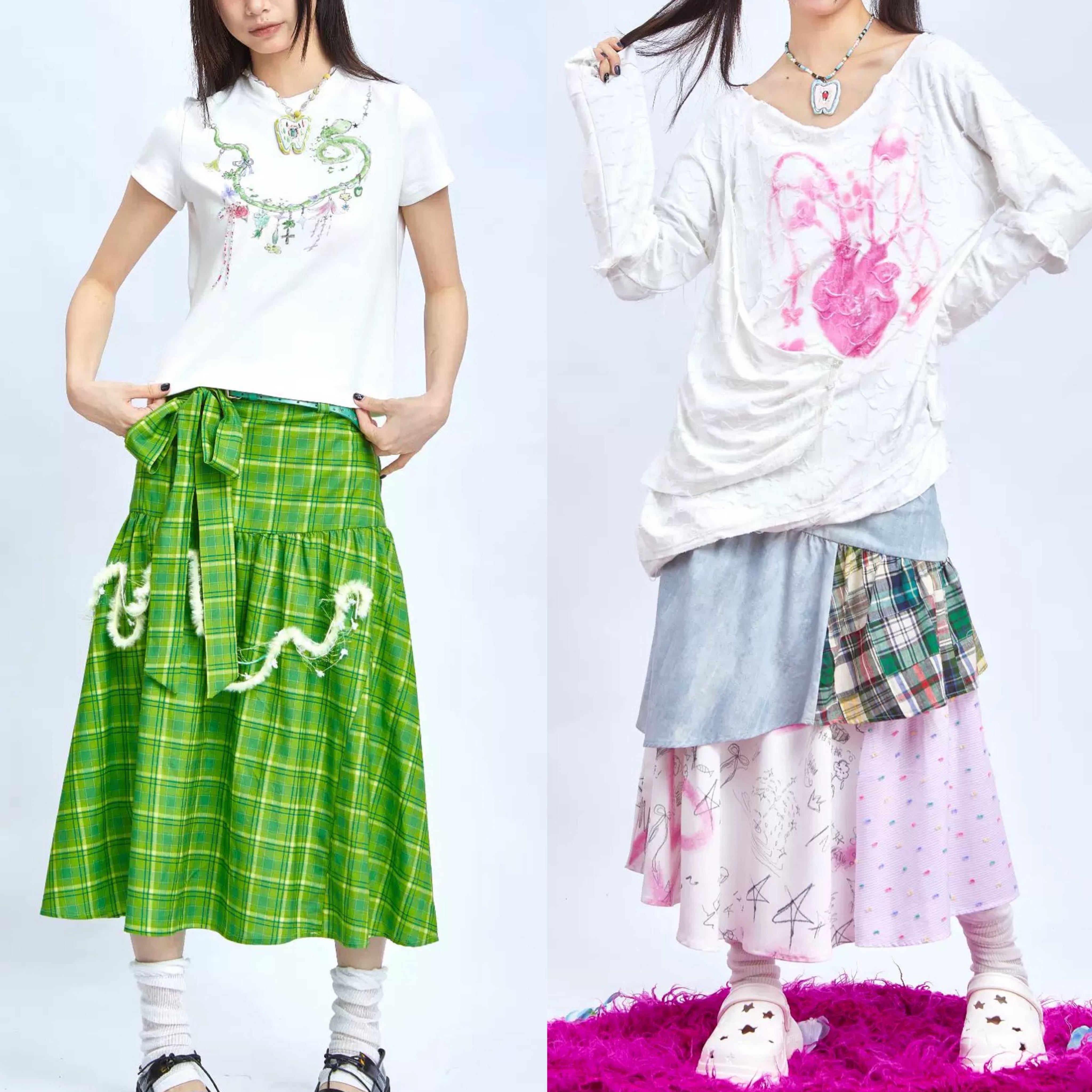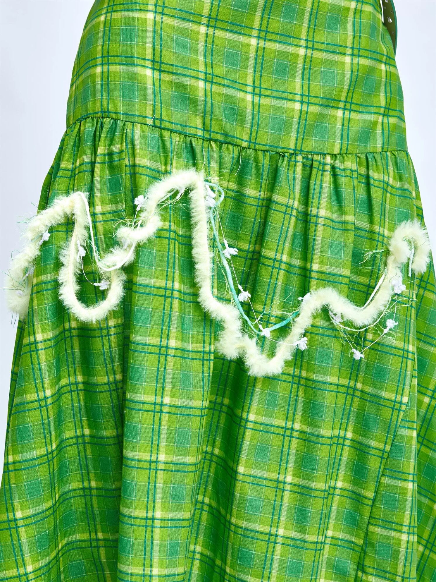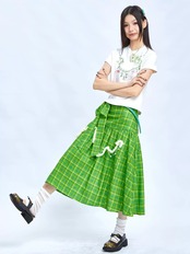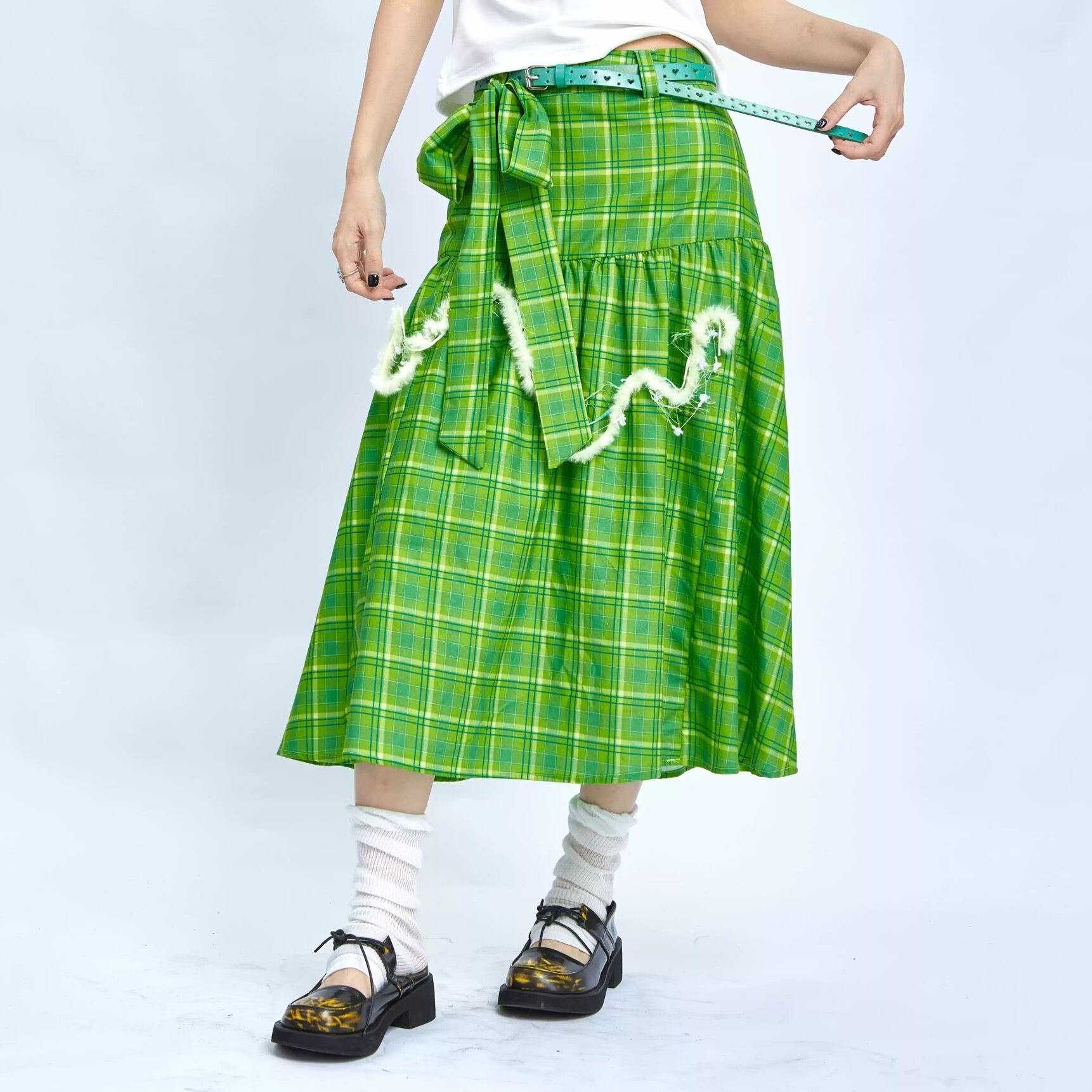 スカート 緑 チェック ボトムス ガーリー 可愛い リボン マキシ 原宿
