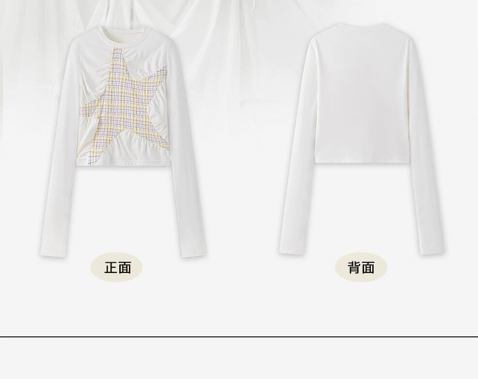 白 Tシャツ 星 チェック トップス ガーリー ストリート ブラウス