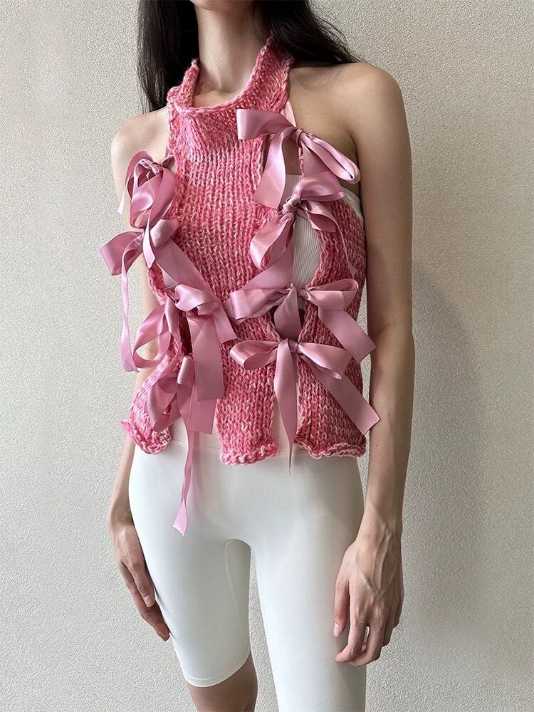 ガーリー セーター リボン ニット トップス カーディガン 可愛い 原宿 姫