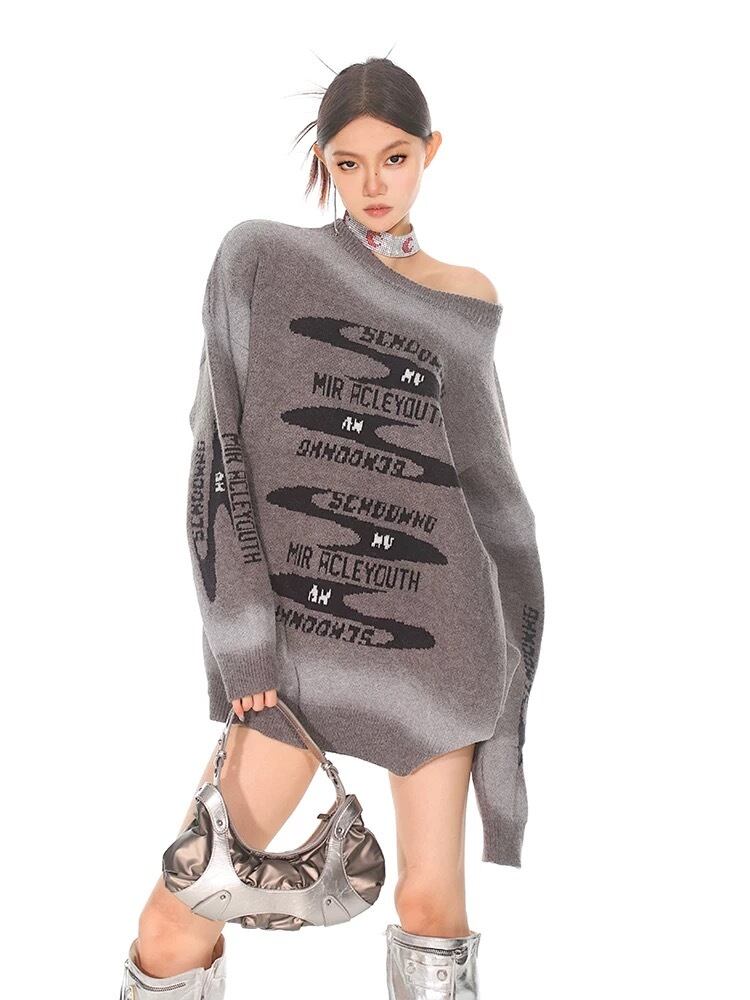 セーター ニット グレー ベージュ ブラウス トップス スポーツ ストリート ギャル 渋谷 ヒップホップ ダンス 白 カーディガン 可愛い ストリート 原宿 トップス スウェット オフショルダー
