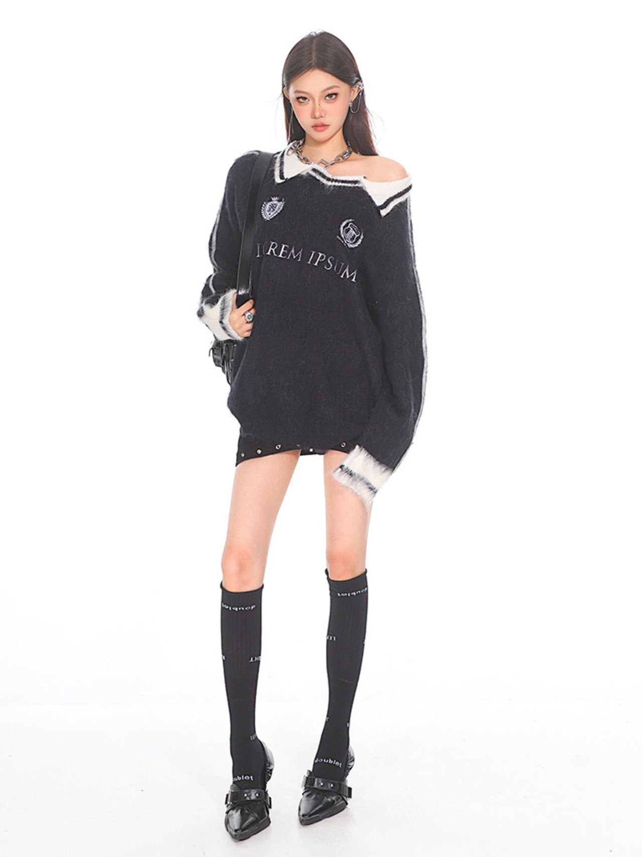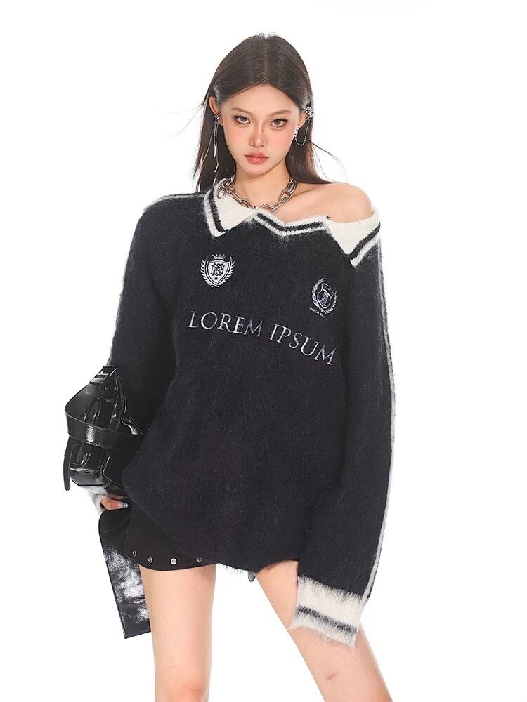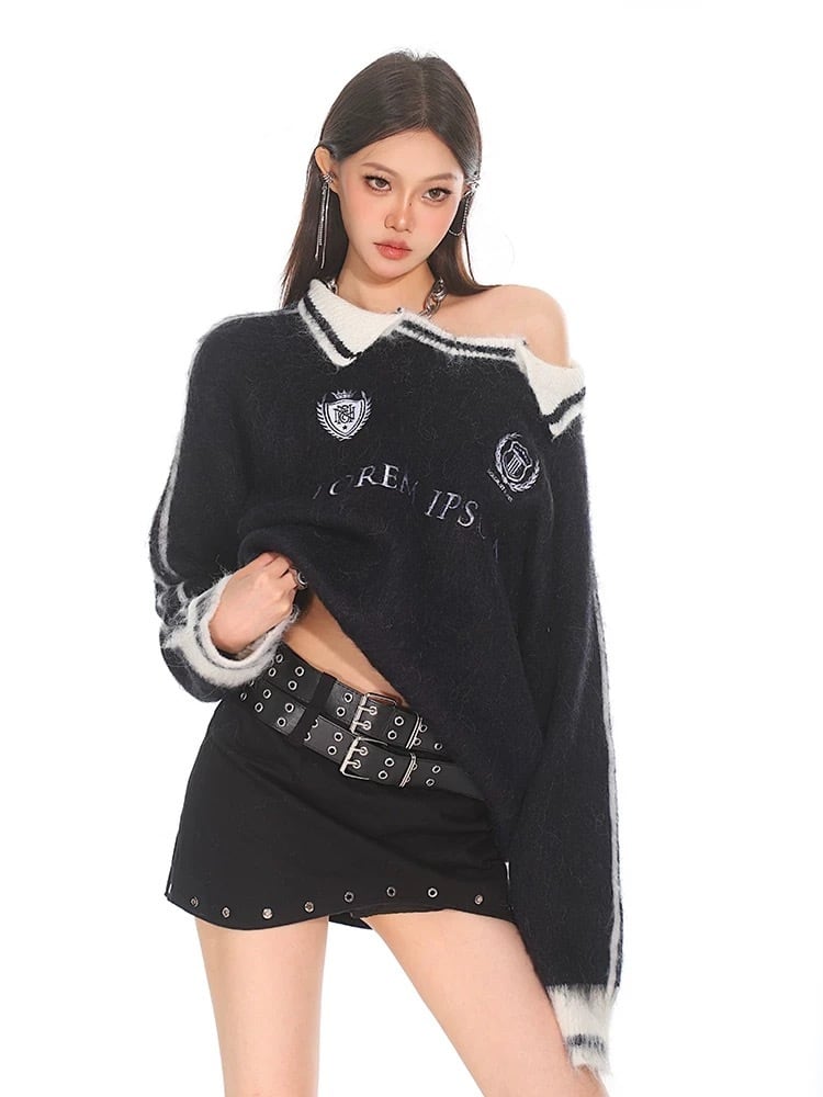 セーター 黒 赤 ニット セーター ニット グレー ベージュ ブラウス トップス スポーツ ストリート ギャル 渋谷 ヒップホップ ダンス 白 カーディガン 可愛い ストリート 原宿 トップス スウェット オフショルダー