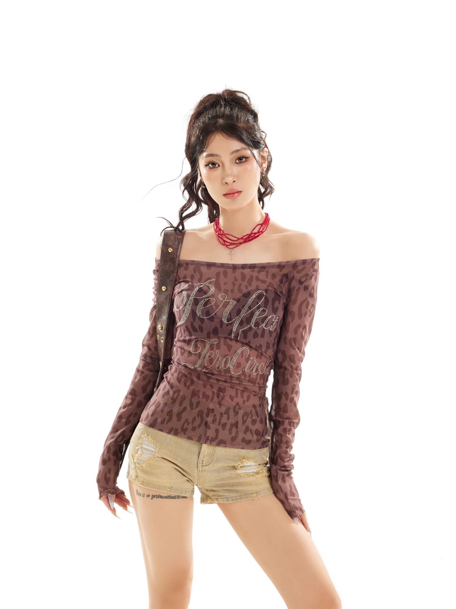 レオパード 茶色 オフショル 豹柄 ヒョウ柄 セーター ニット グレー ベージュ ブラウス トップス スポーツ ストリート ギャル 渋谷 ヒップホップ ダンス 白 カーディガン 可愛い ストリート 原宿 トップス スウェット オフショルダー