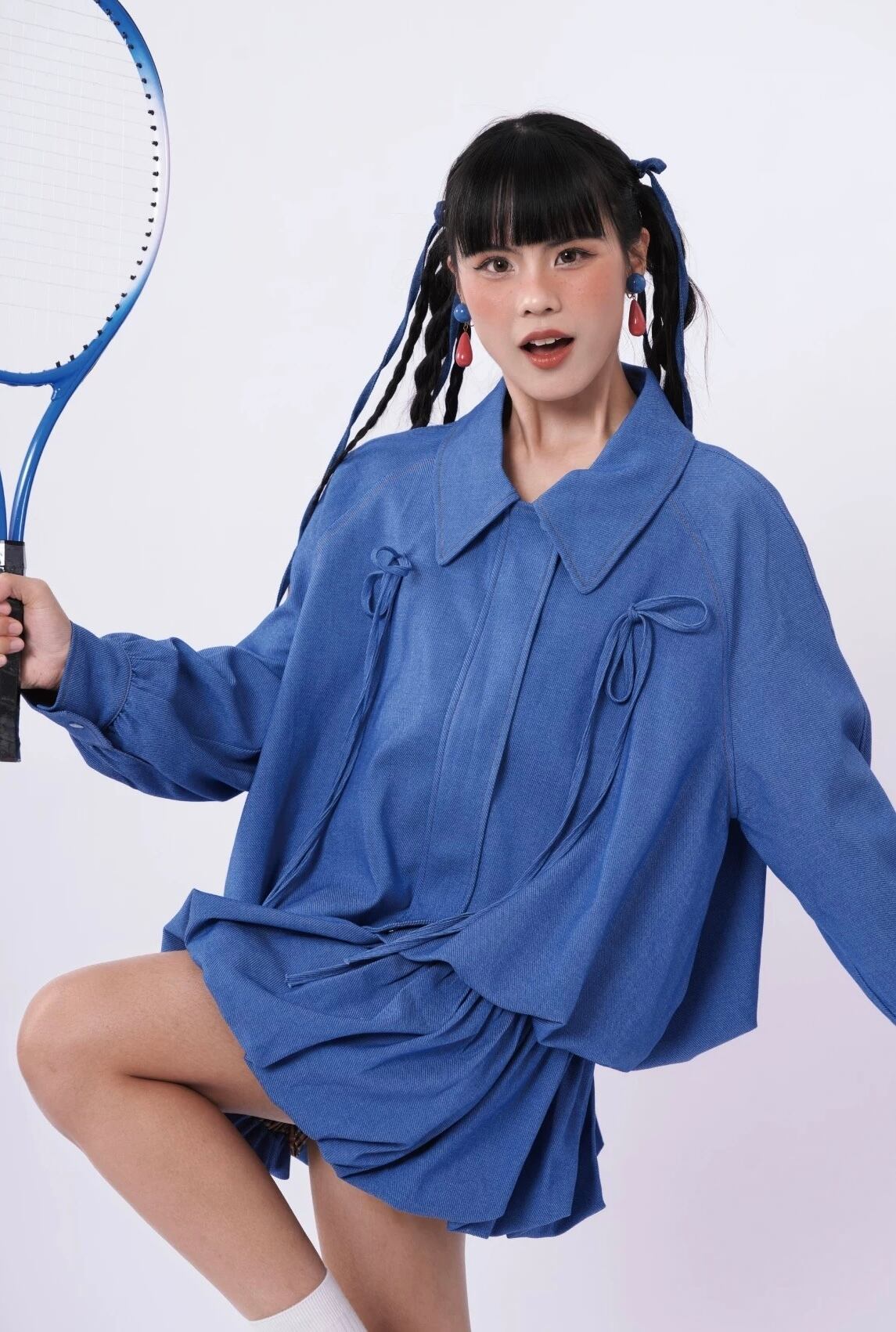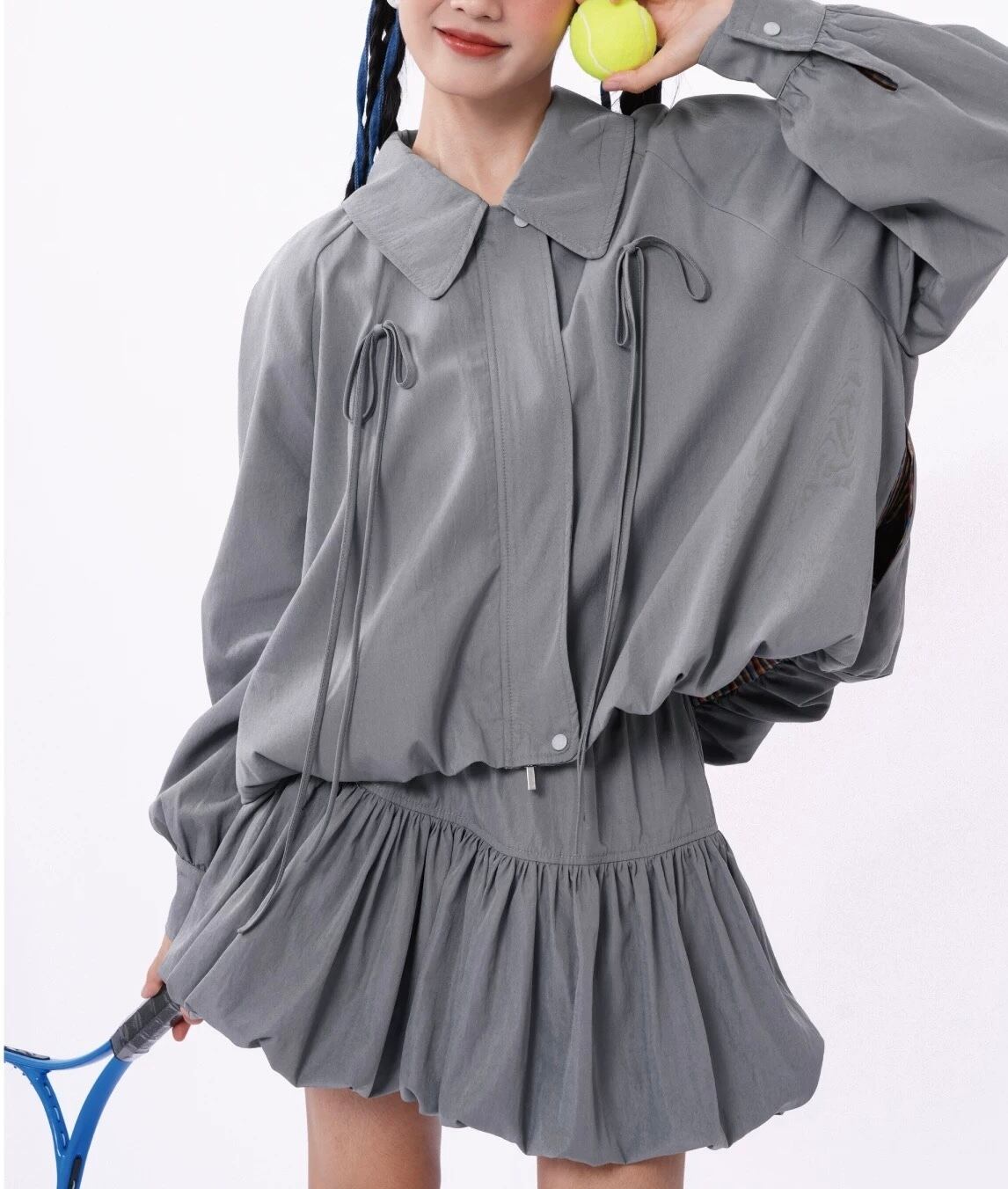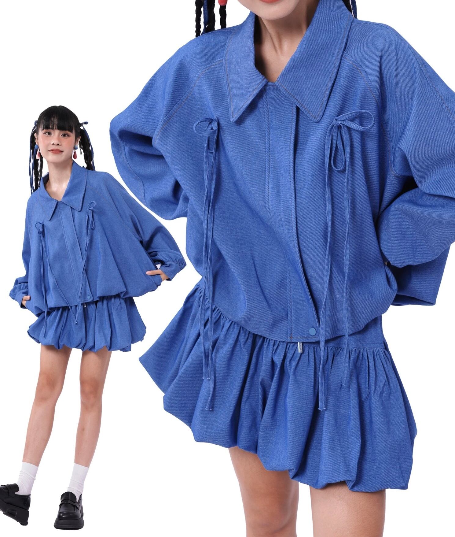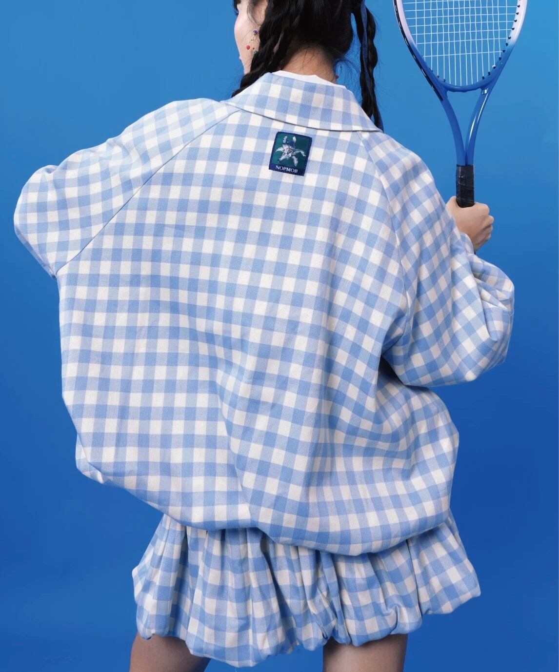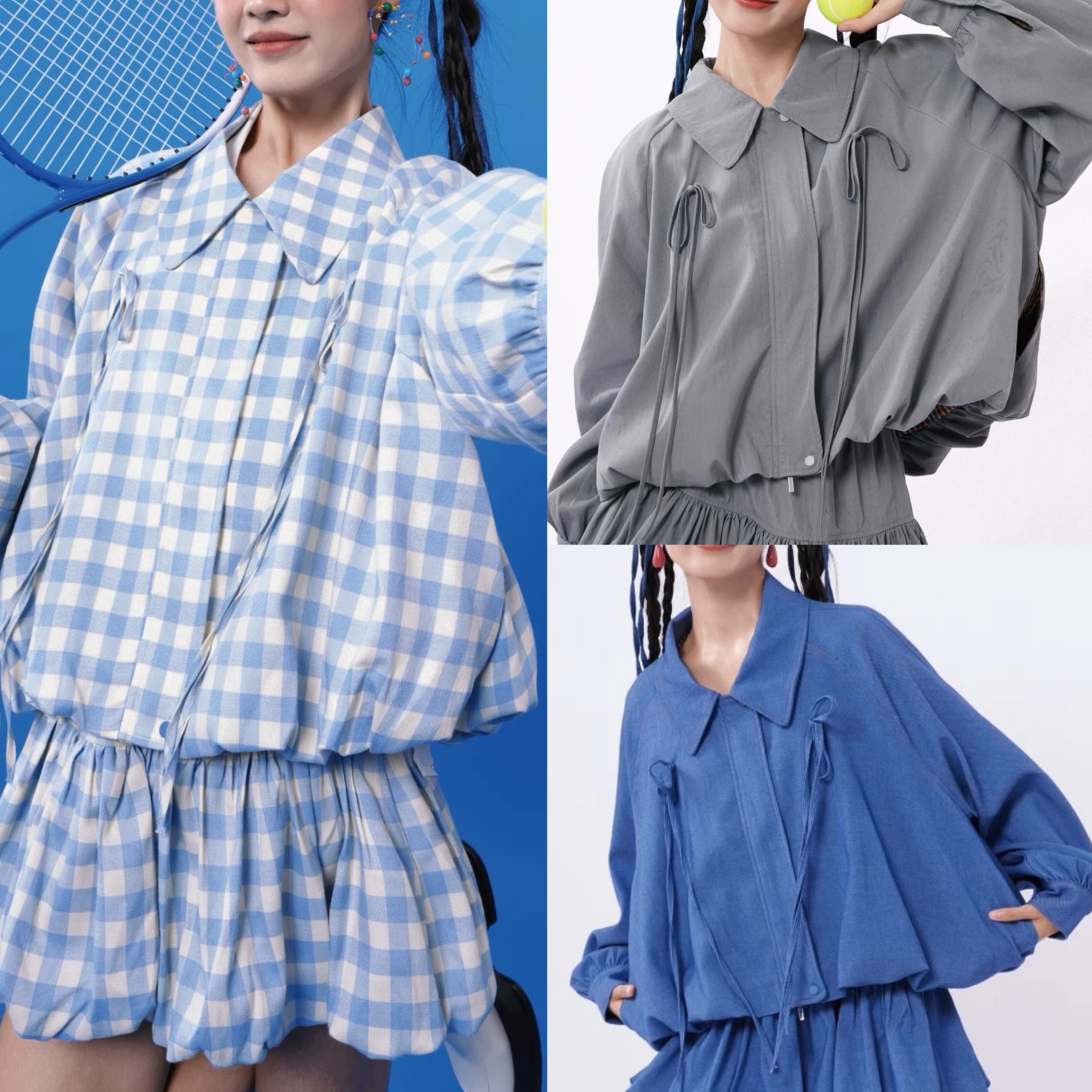 ジャケット ブルゾン ガーリー 水色 チェック アウター リボン ブルー グレー