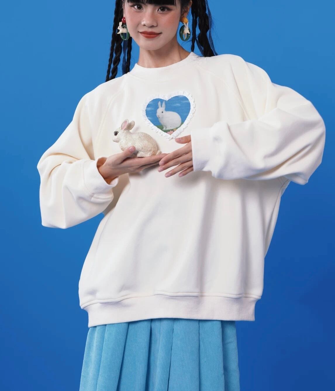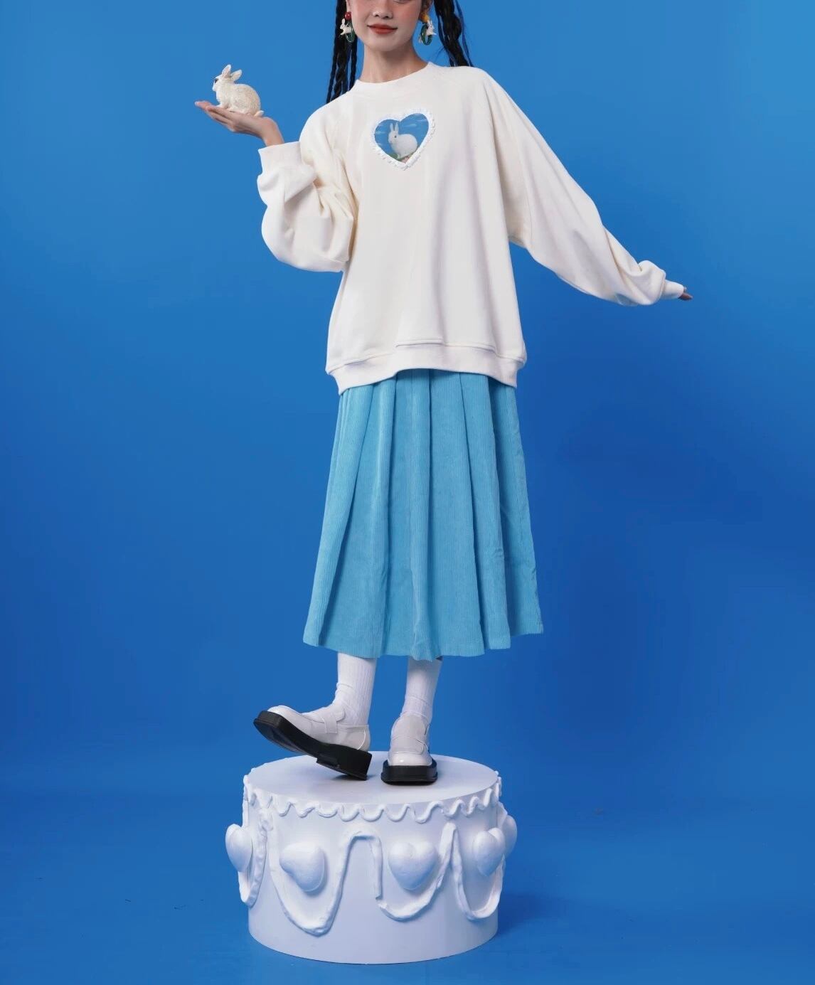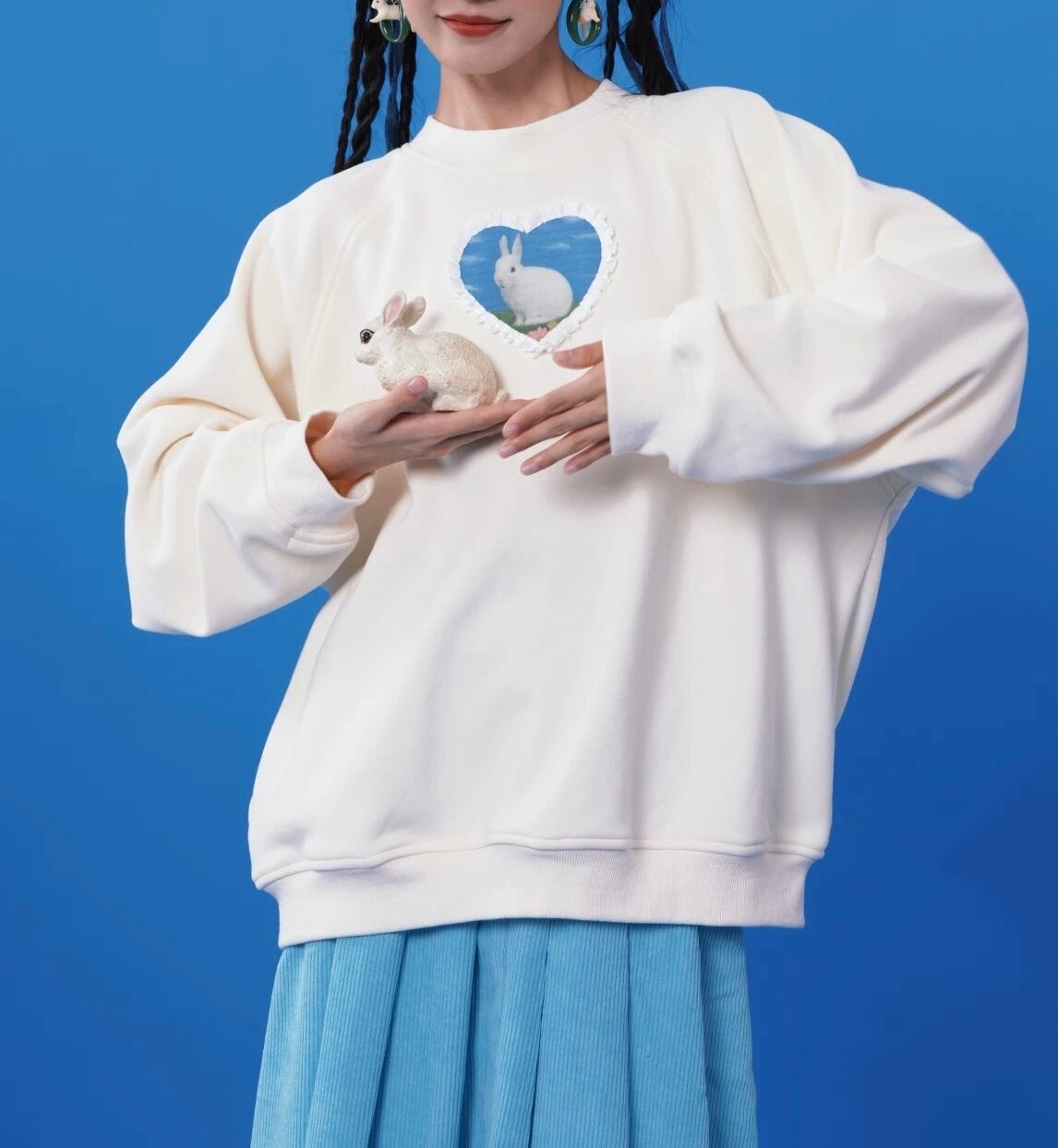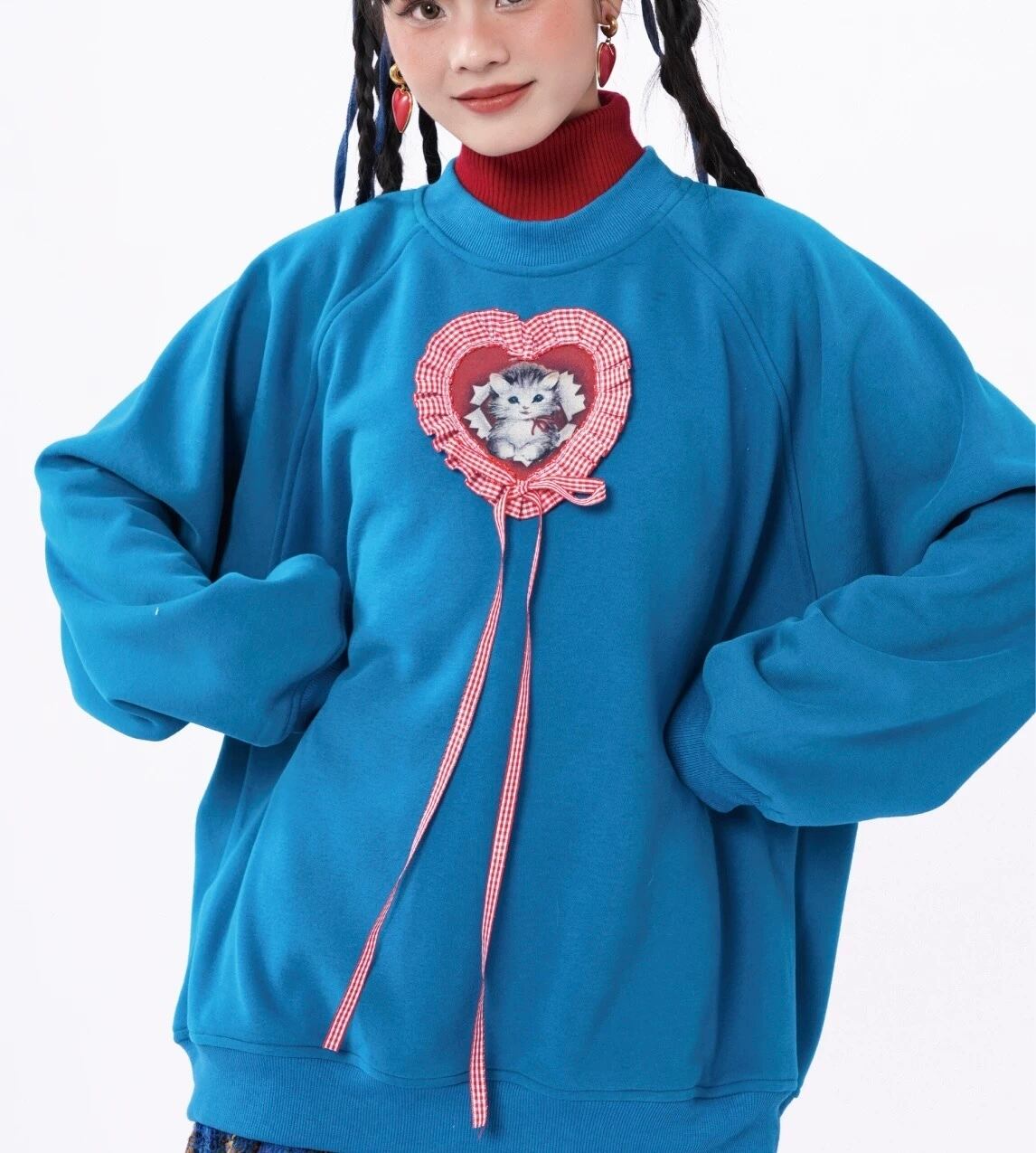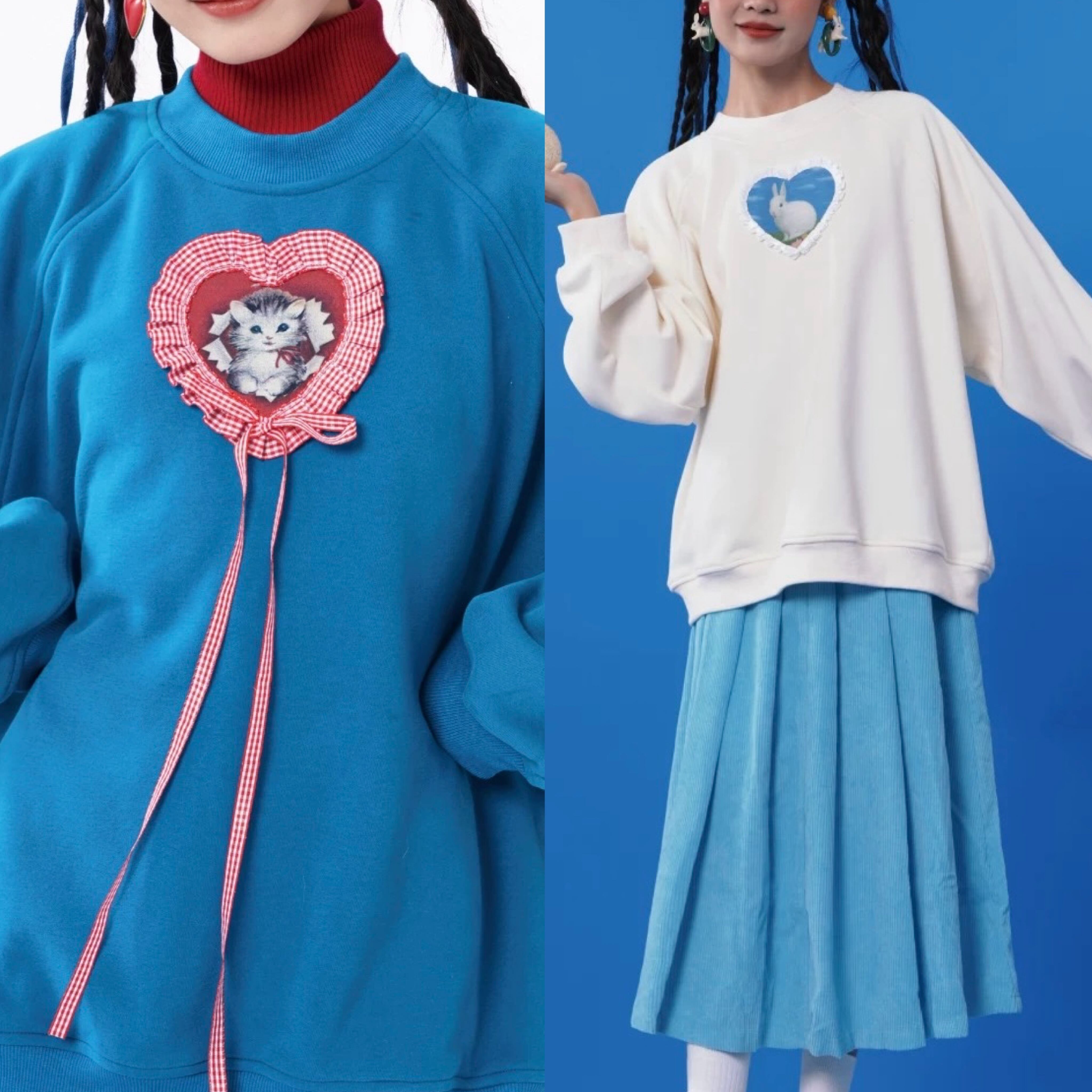 水色 スウェット カジュアル リボン ハート うさぎ パーカー ねこ 可愛い 原宿