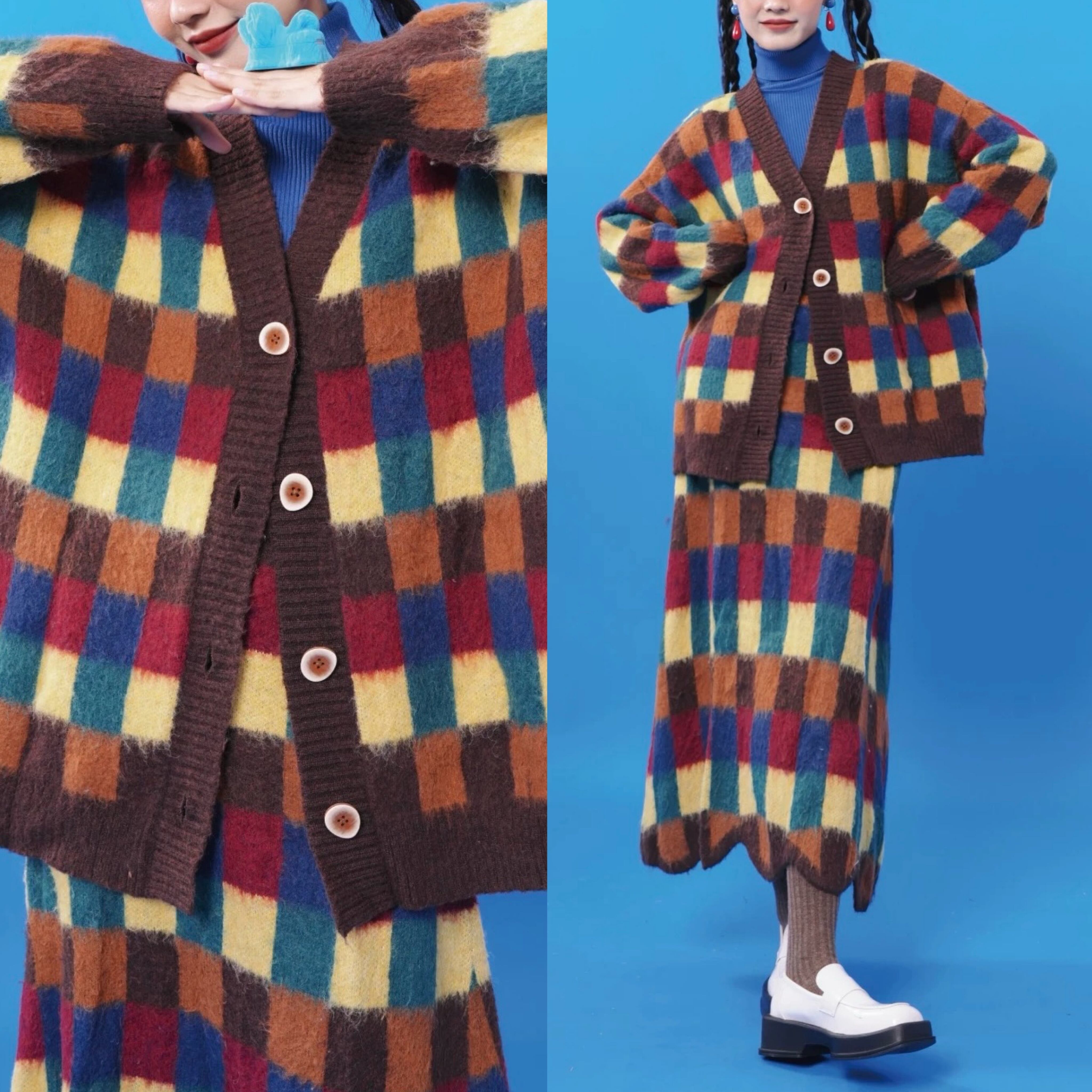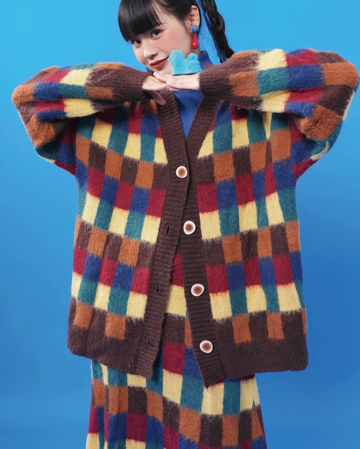 茶色 セーター カーディガン アウター オーバーサイズ 黄色 ジャケット