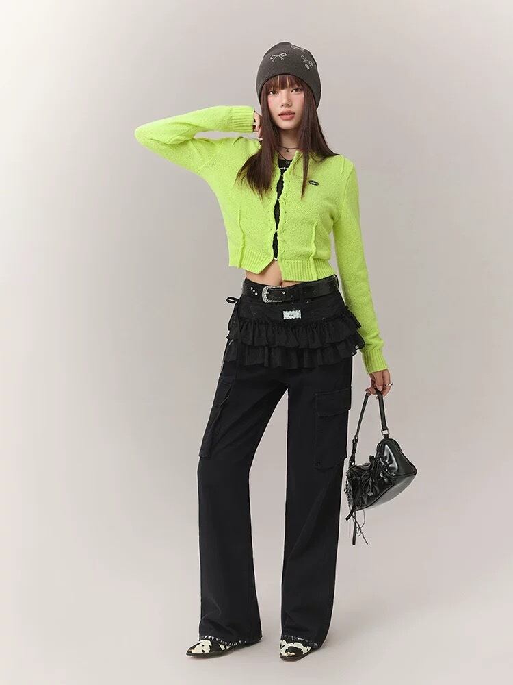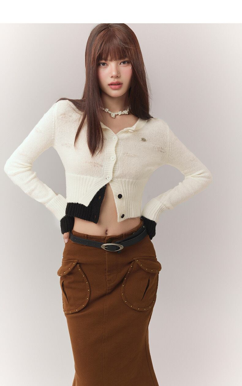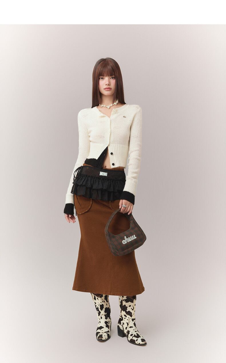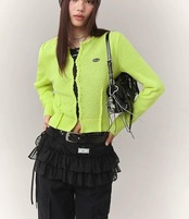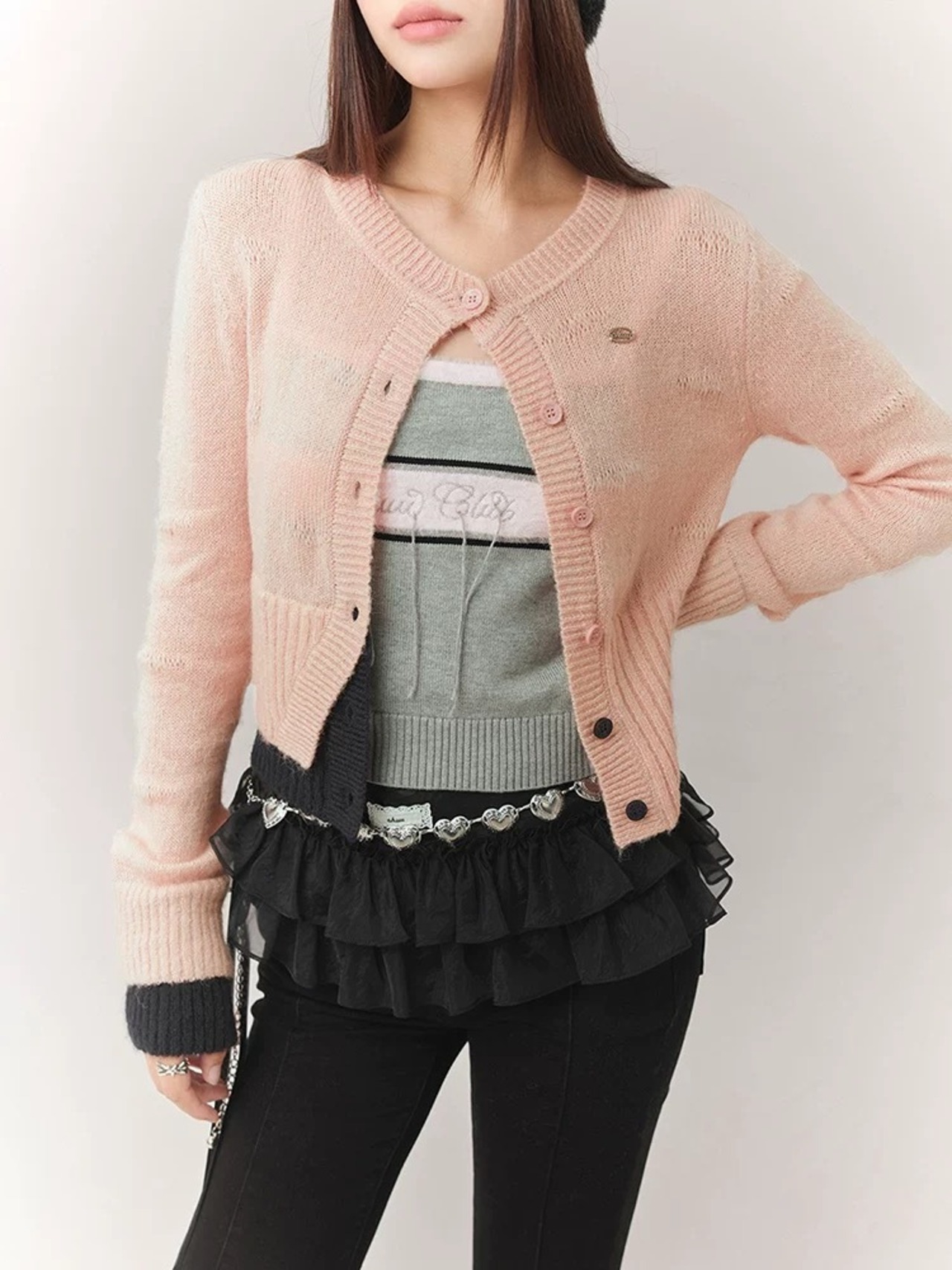 カーディガン 重ね着 白 ピンク セーター ニット ガーリー 可愛い トップス アウター