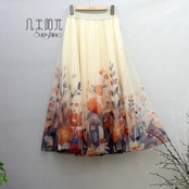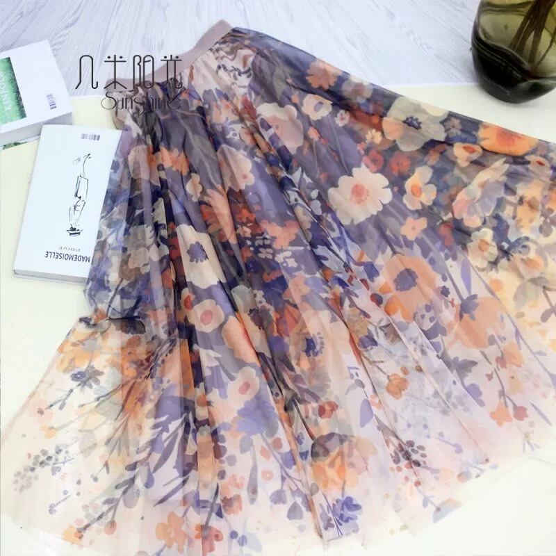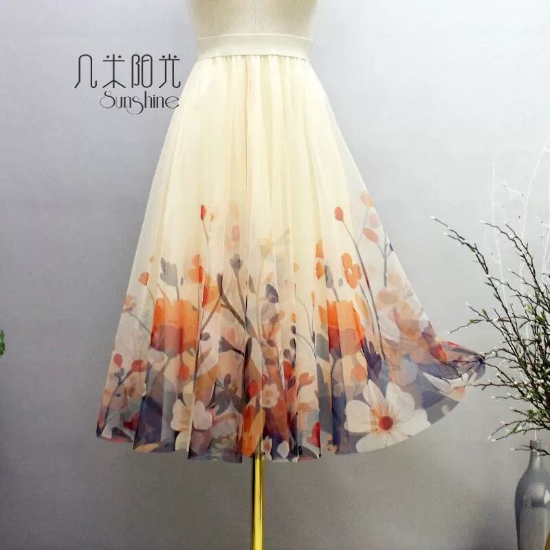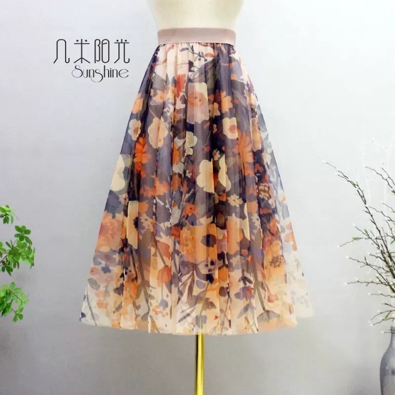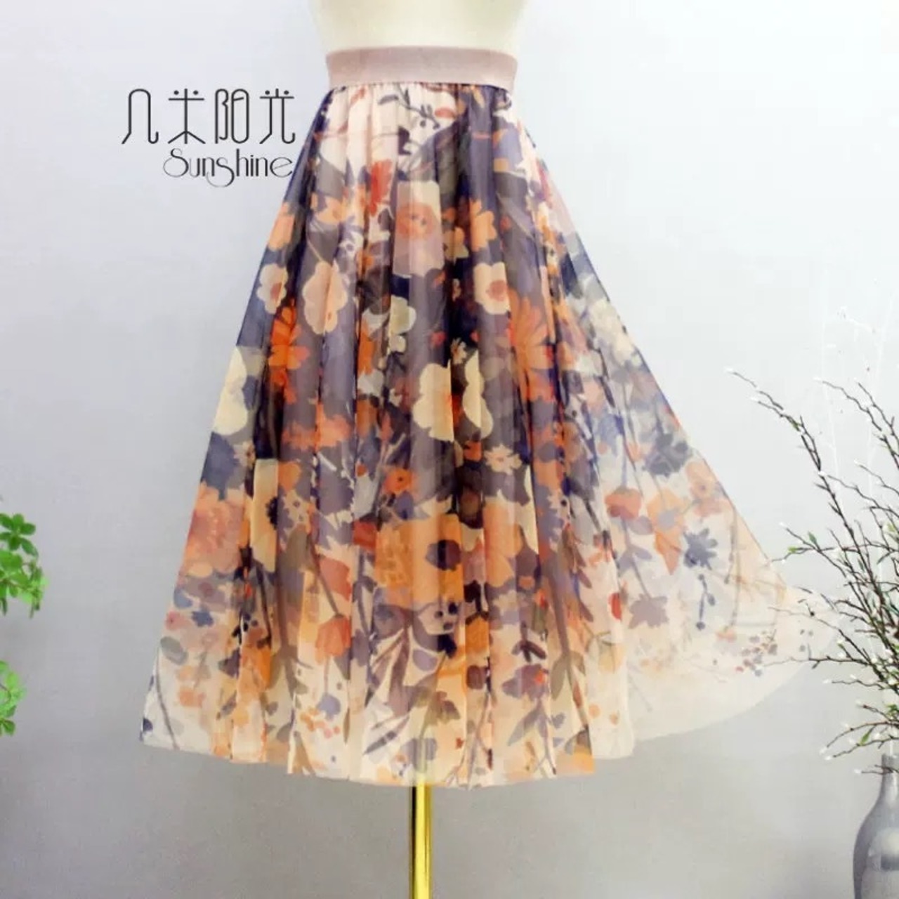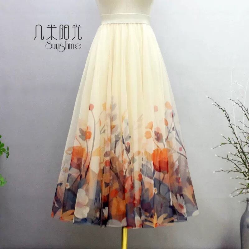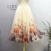 【着丈65.75.85cm】スカート 合わせやすい 和柄 着物 白 オレンジ ボトムス グラデーション 可愛い エレガント ガーリー ふんわり 茶色 フレア 花柄 フラワー