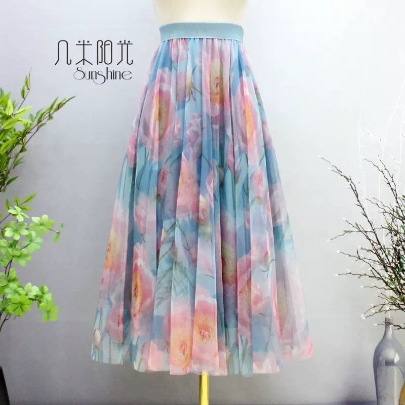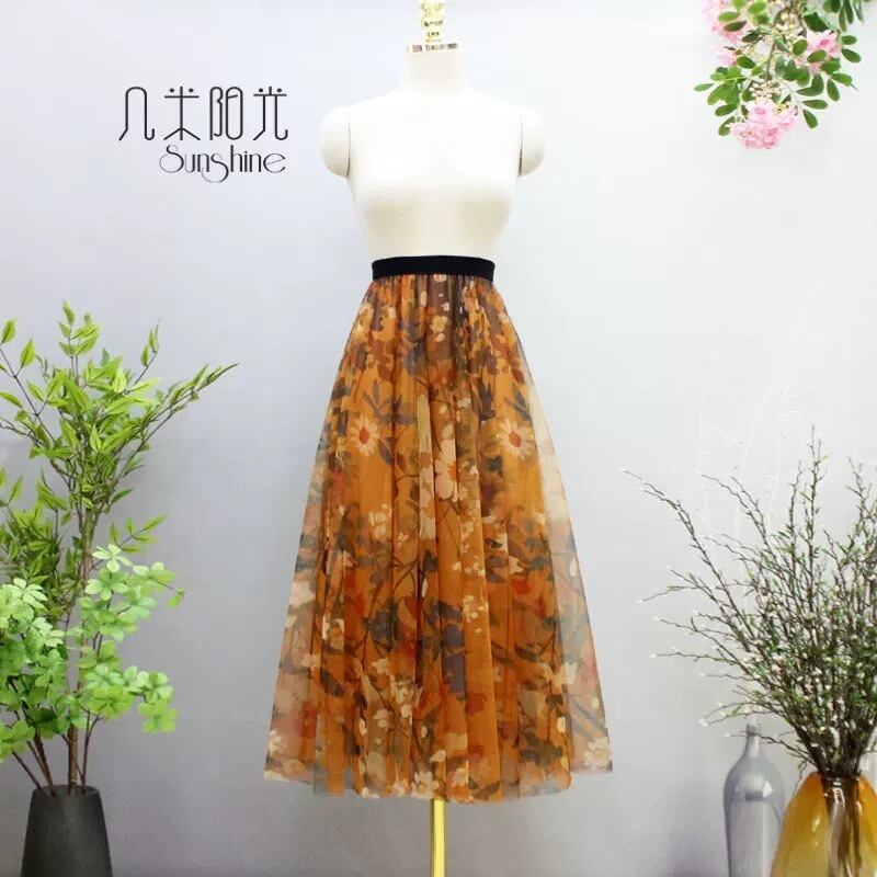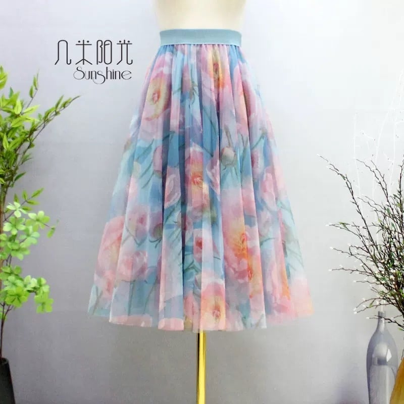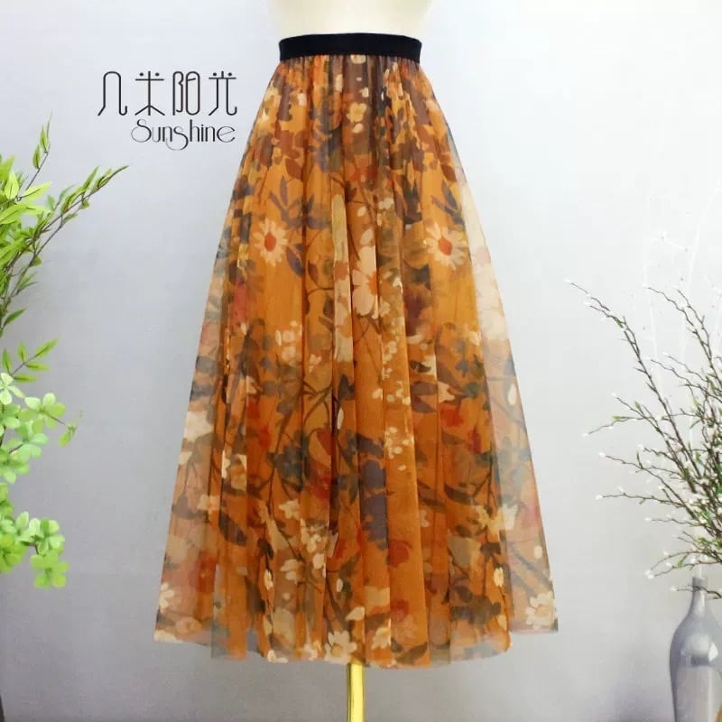 【着丈65.75.85cm】スカート 合わせやすい 和柄 着物 白 オレンジ ボトムス グラデーション 可愛い エレガント ガーリー ふんわり 茶色 フレア 花柄 フラワー 水色 オレンジ ピンク 黄色