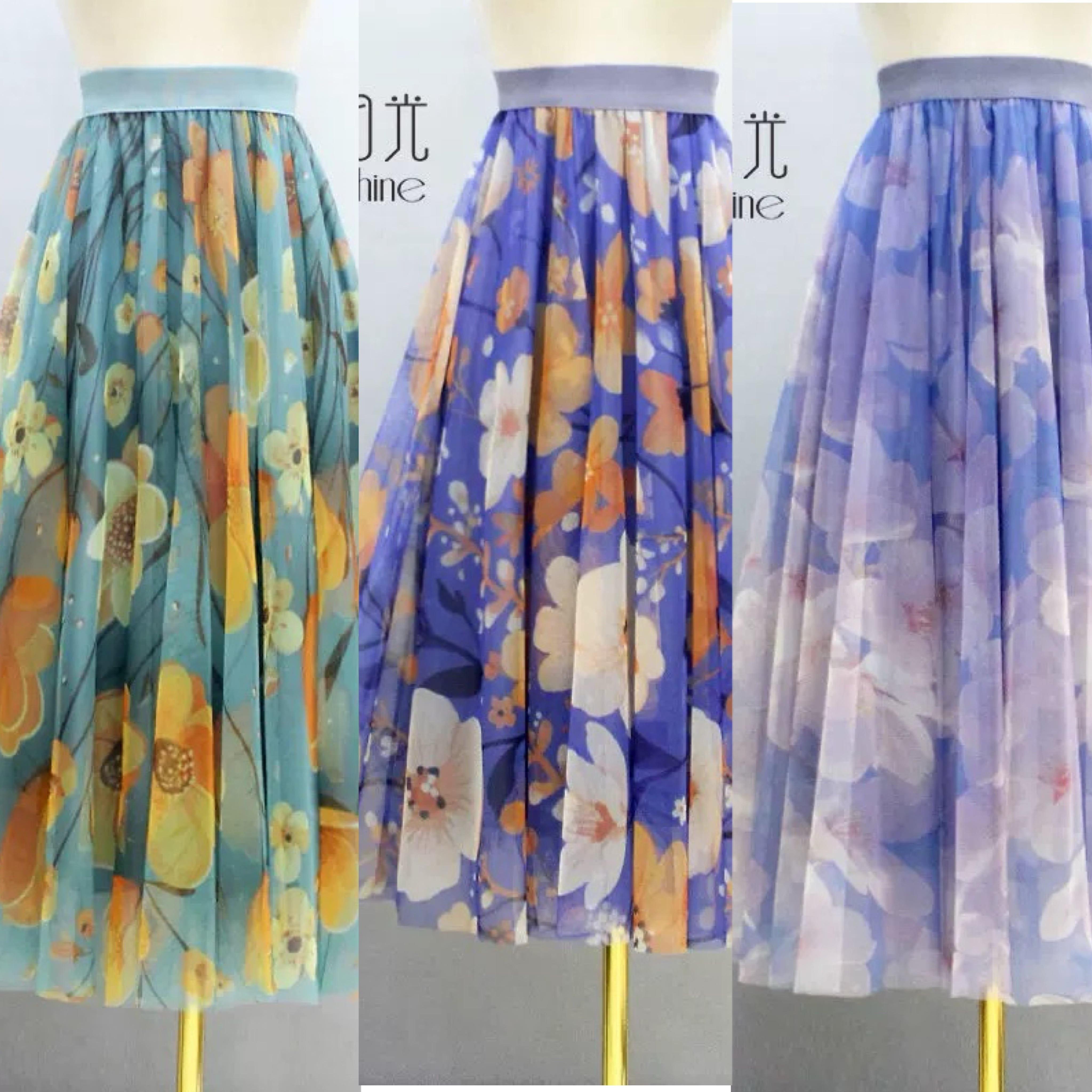 【着丈65.75.85cm】スカート 合わせやすい 和柄 着物 白 オレンジ ボトムス グラデーション 可愛い エレガント ガーリー ふんわり 茶色 フレア 花柄 フラワー 水色 緑 オレンジ 黄色