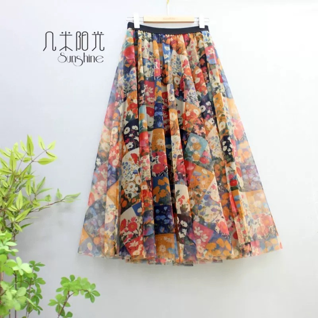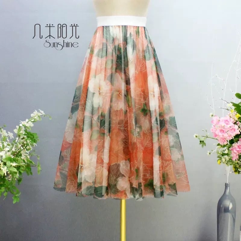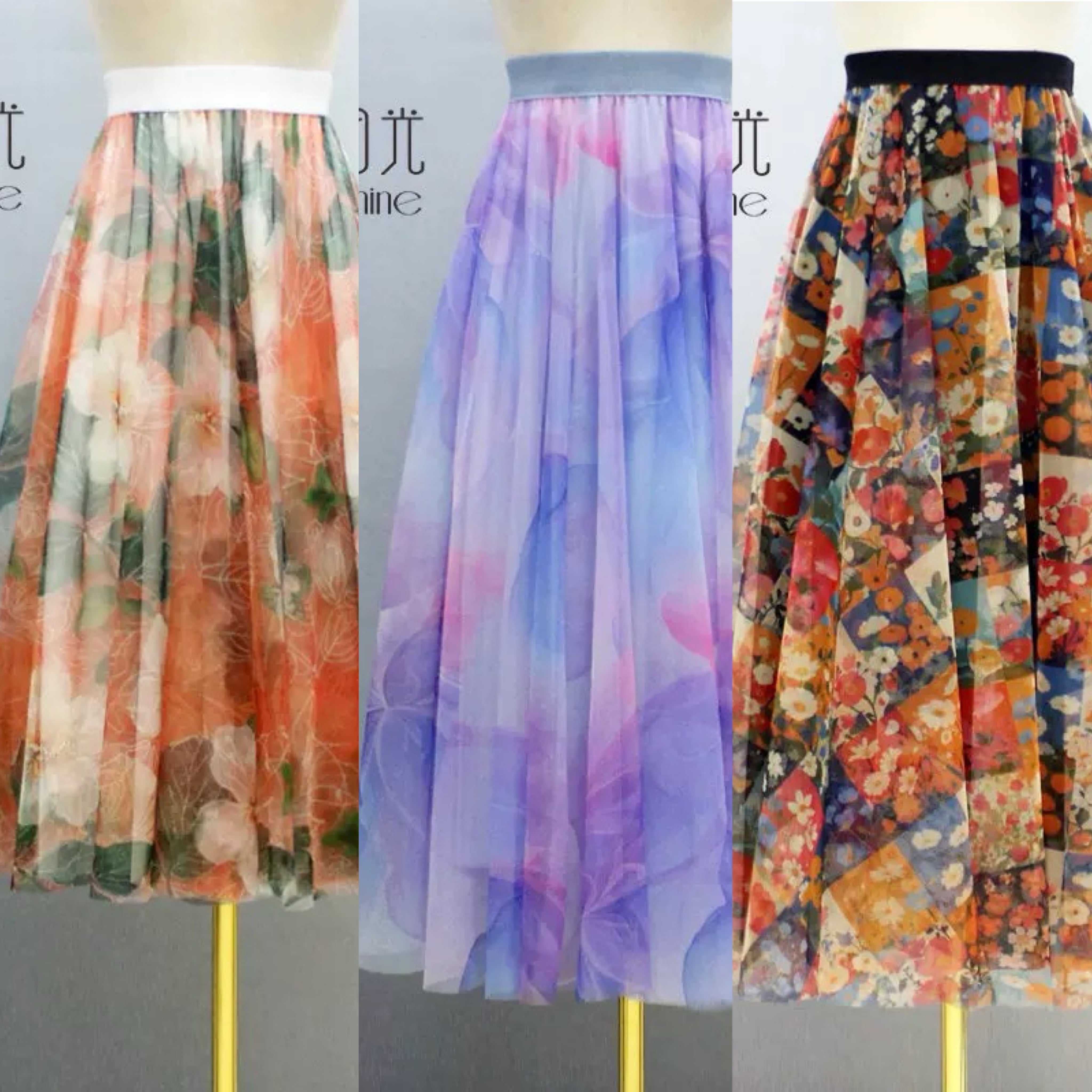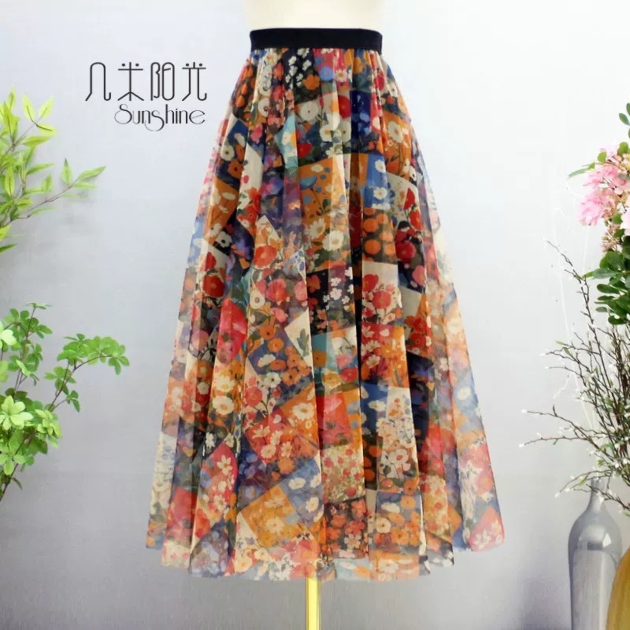 【着丈65.75.85cm】スカート 合わせやすい 和柄 着物 白 オレンジ ボトムス グラデーション 可愛い エレガント ガーリー ふんわり 茶色 フレア 花柄 フラワー 黒 紫 オレンジ 白 薔薇