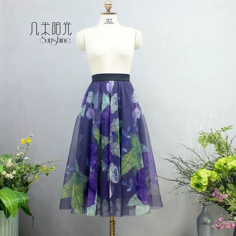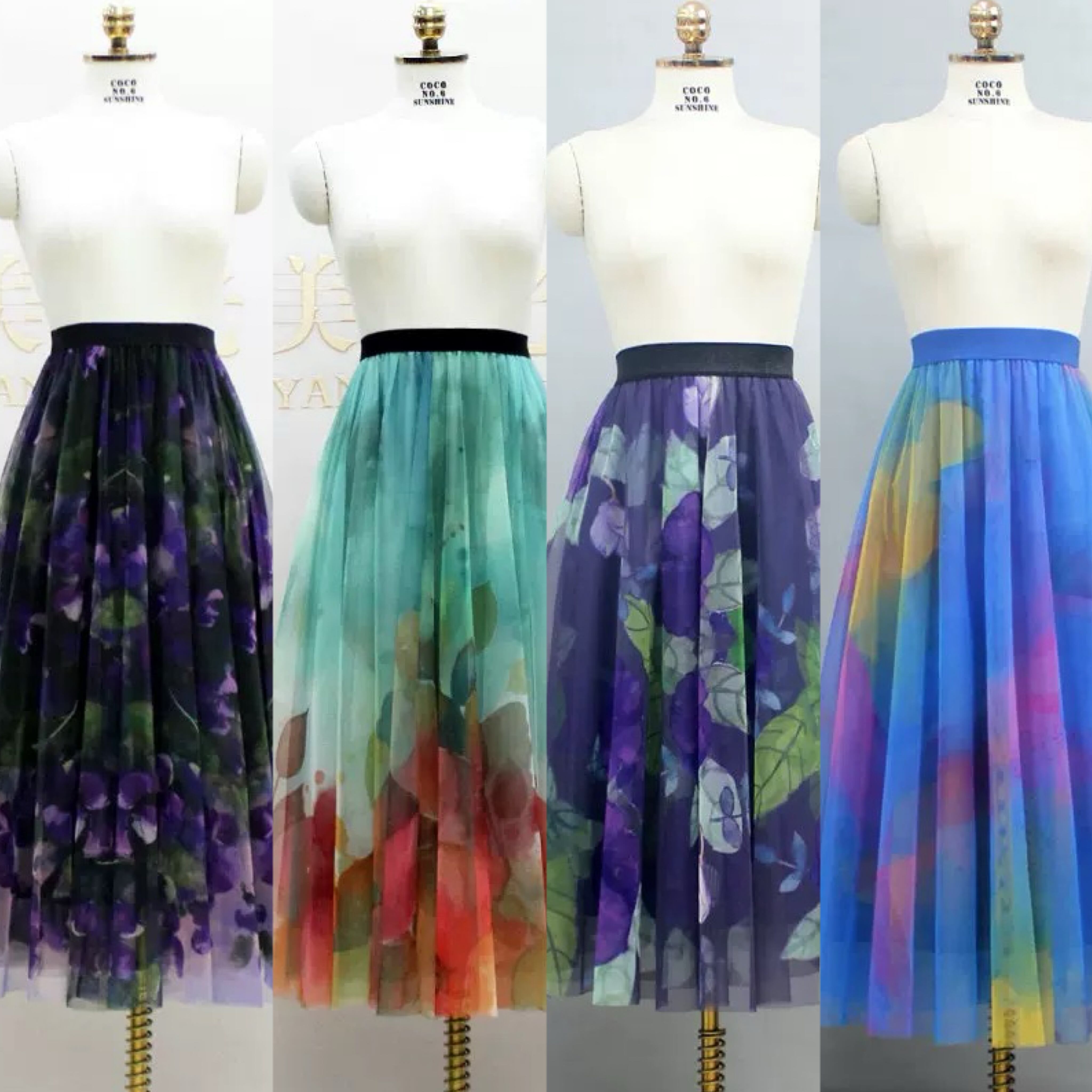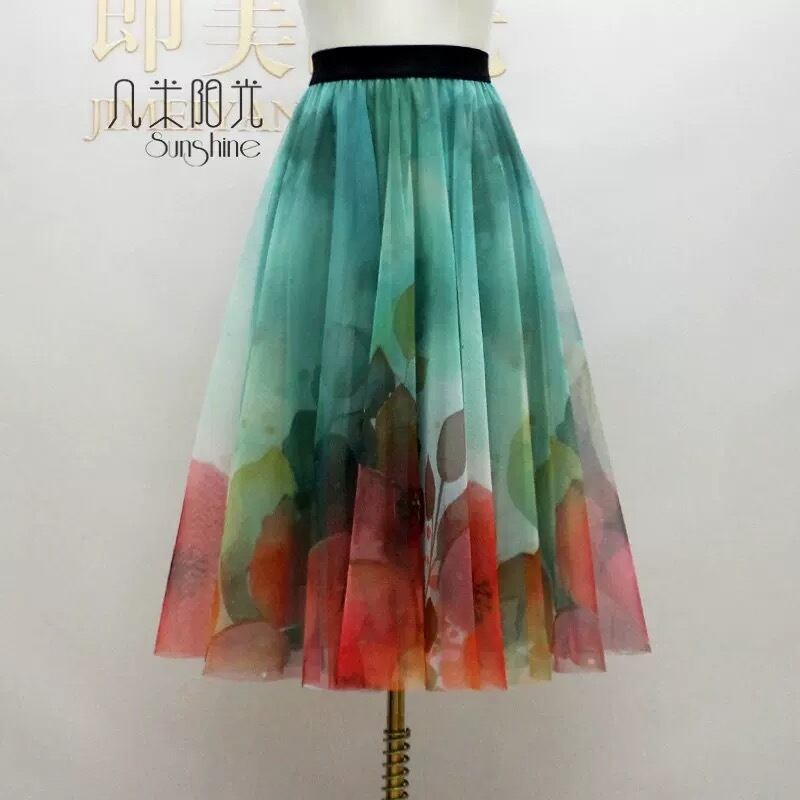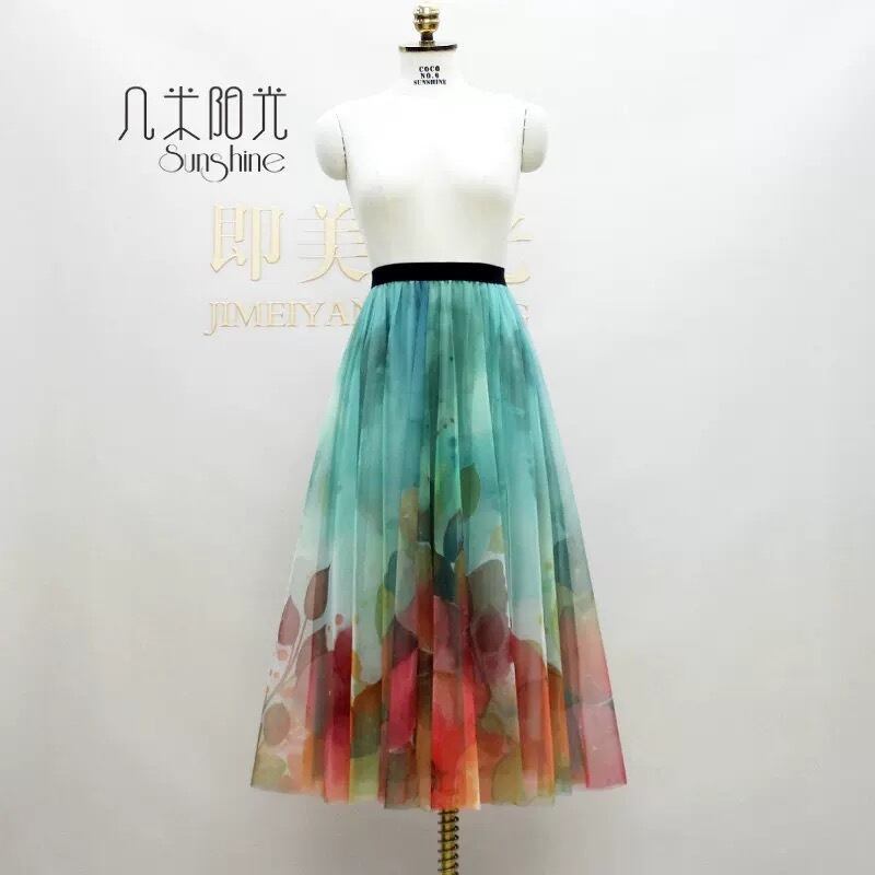 【着丈65.75.85cm】スカート 合わせやすい 和柄 着物 白 オレンジ ボトムス グラデーション 可愛い エレガント ガーリー ふんわり 茶色 フレア 花柄 フラワー レインボー 水色 緑