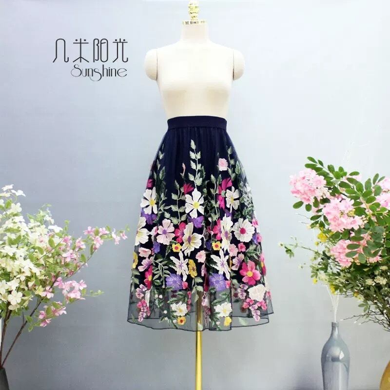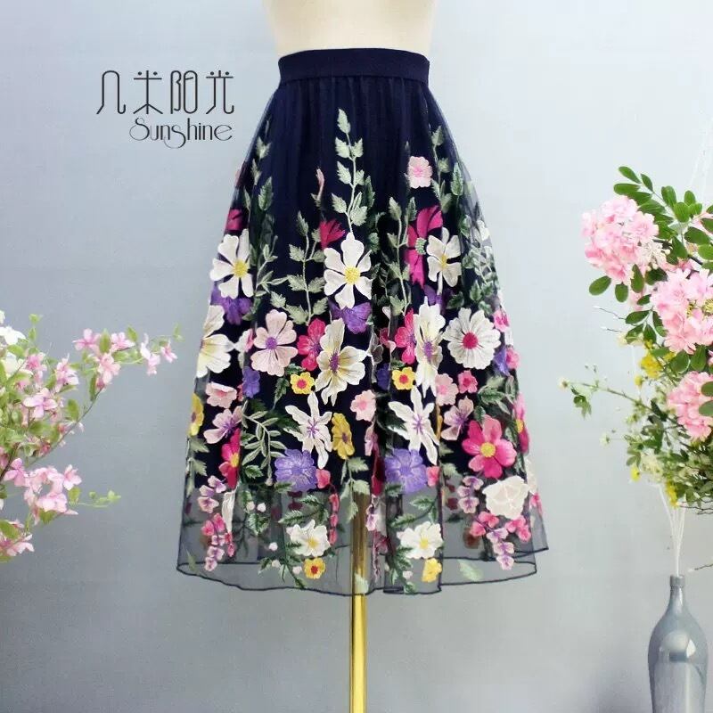 ゴージャス カラフル 刺繍 花束 パーティー 黒 スカート 合わせやすい 和柄 着物 白 オレンジ ボトムス グラデーション 可愛い エレガント ガーリー ふんわり 茶色 フレア 花柄 フラワー