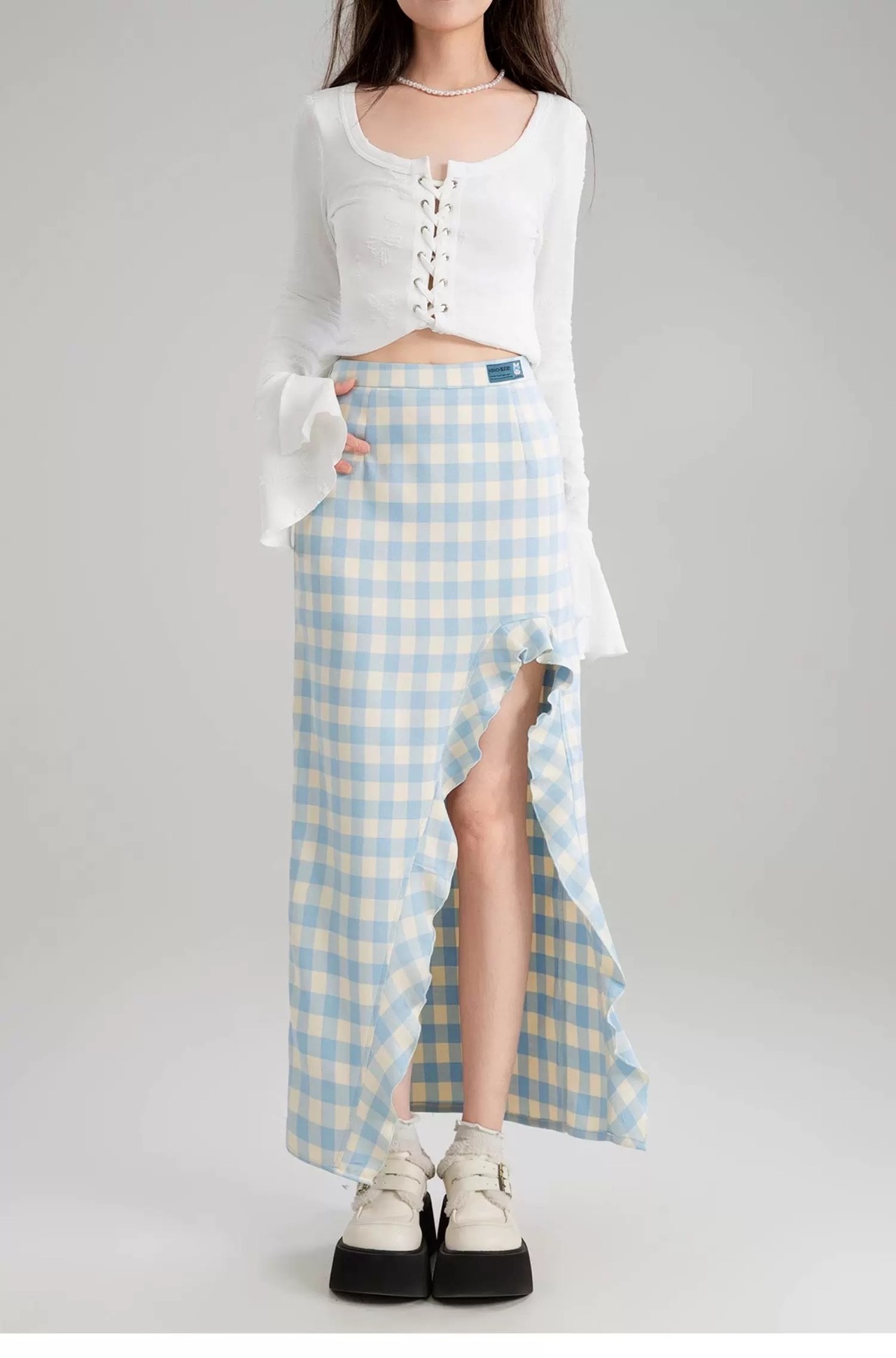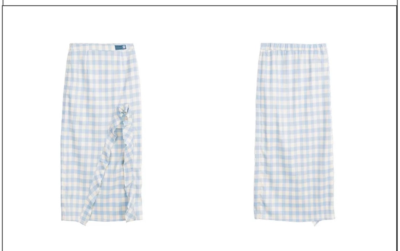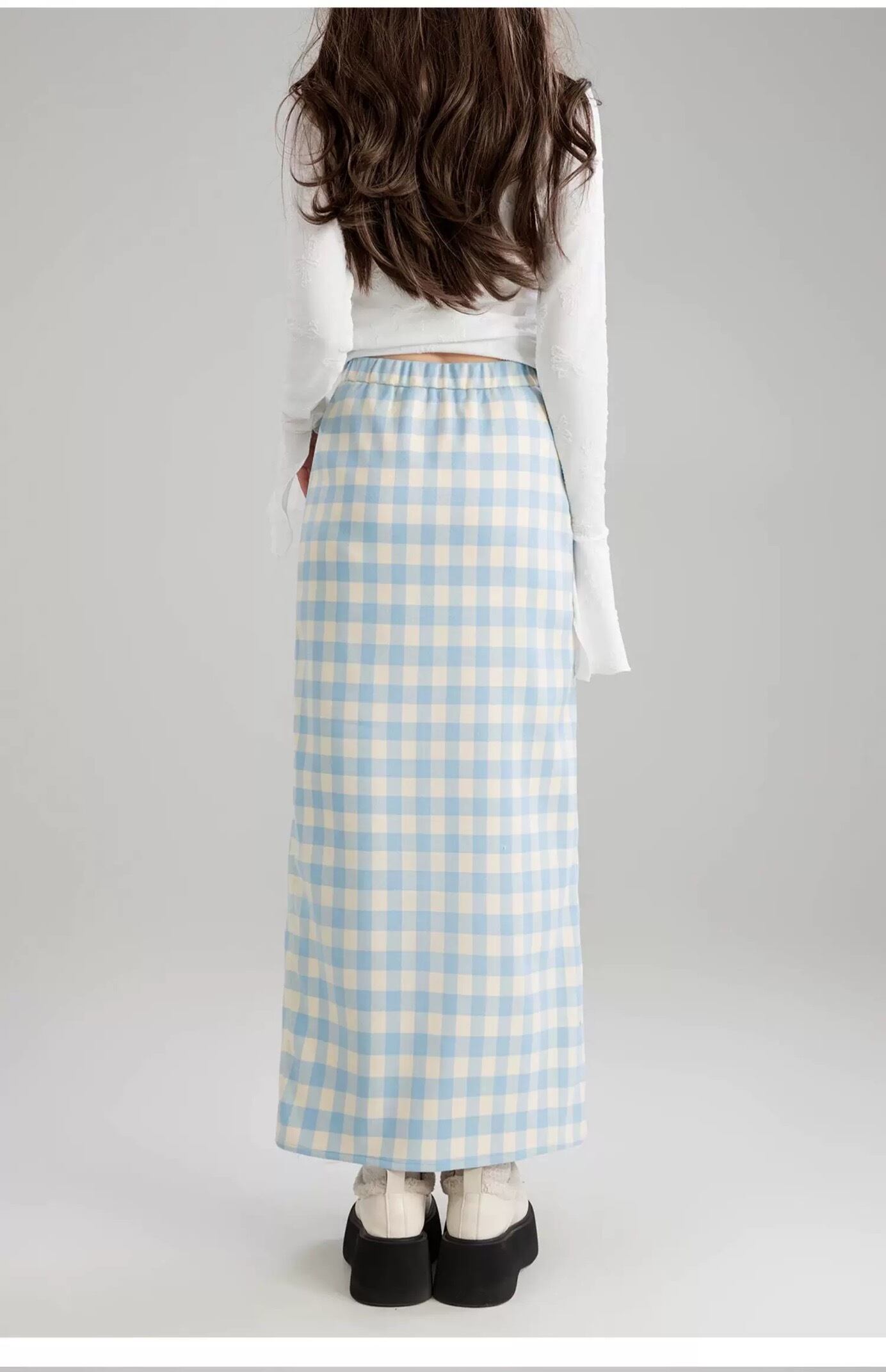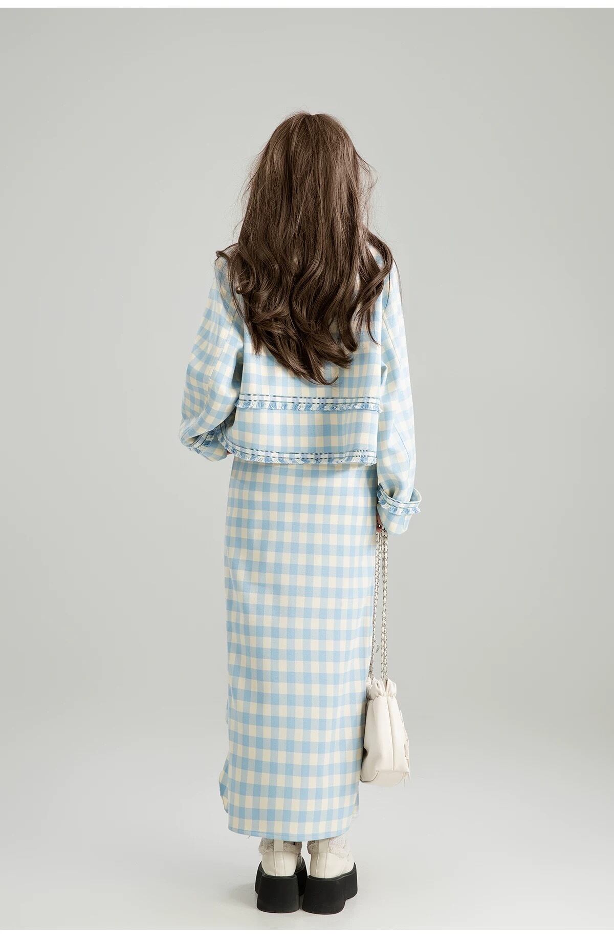 【ジャケット】水色 チェック アウター カーディガン コート ガーリー 可愛い