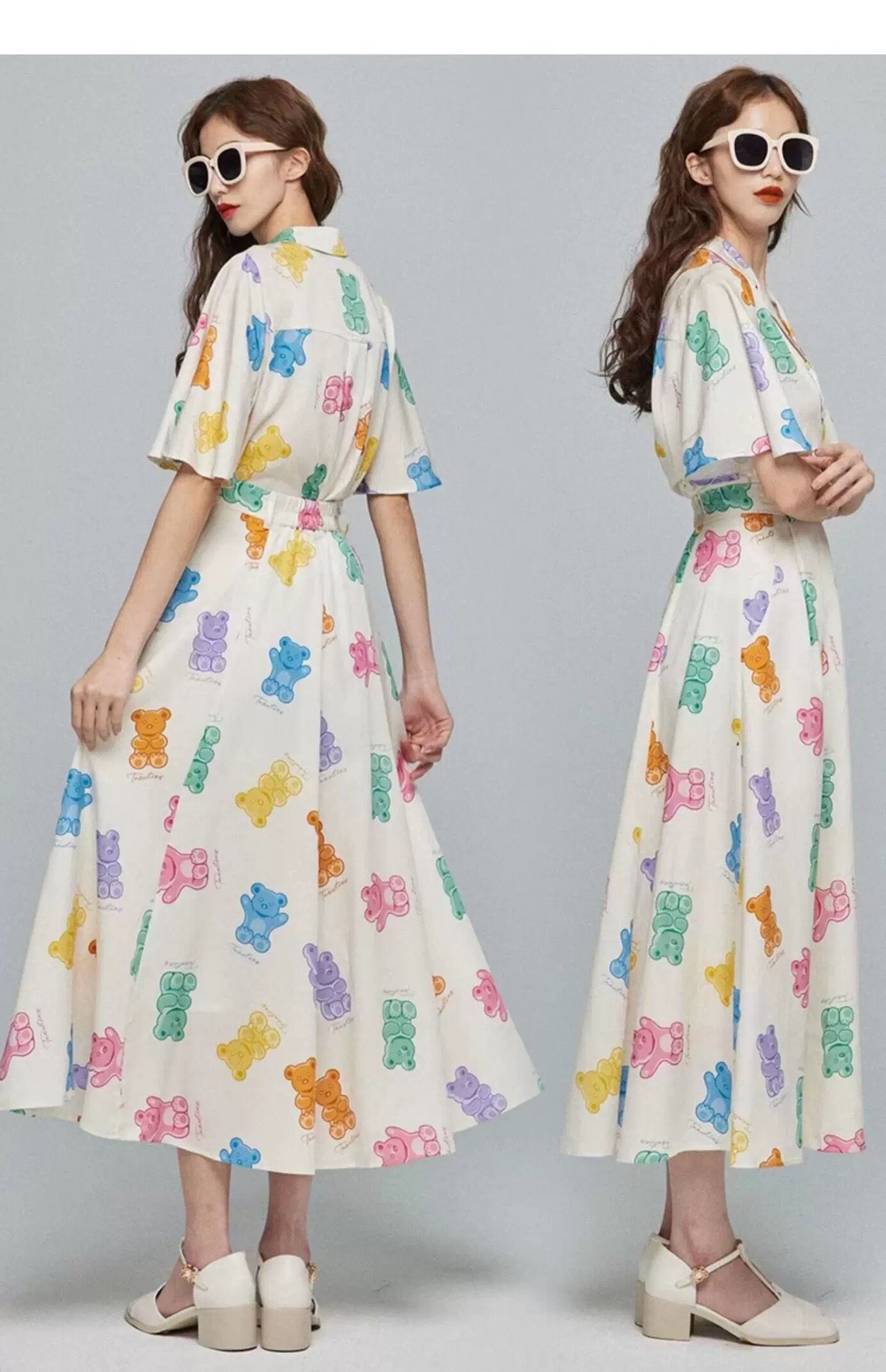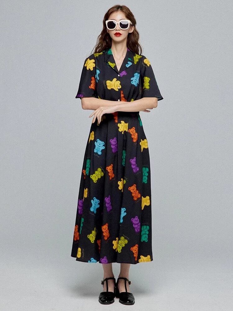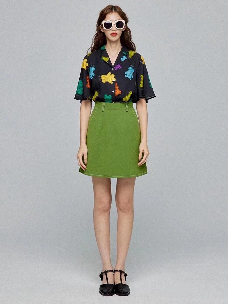 黒 可愛い くま ジェリー ブラウス スカート フレア カラフル トップス ゆったり