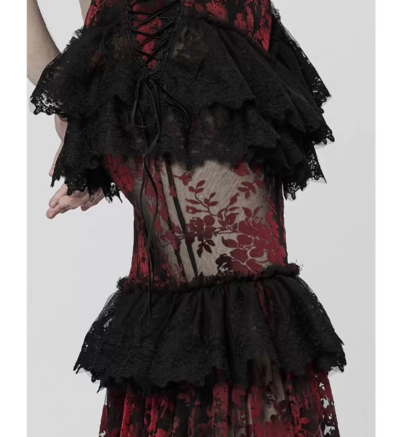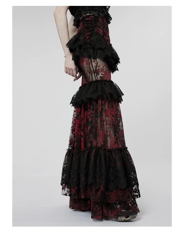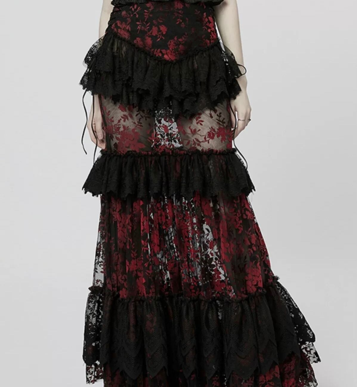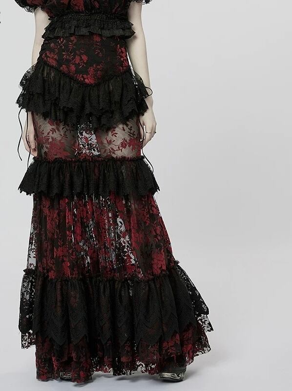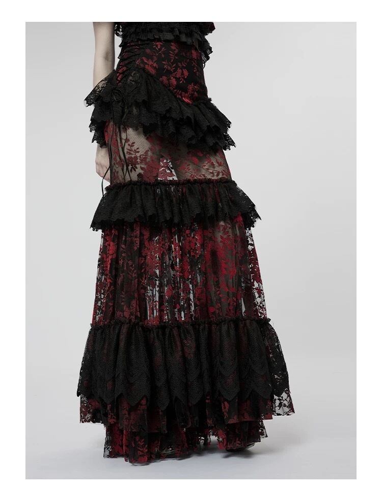 スカート 黒 赤 ボトムス レース セクシー XL 魔女 コスプレ ブラック 衣装 モード