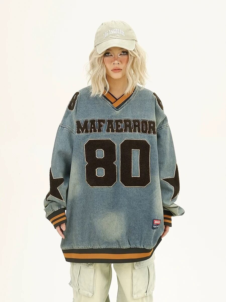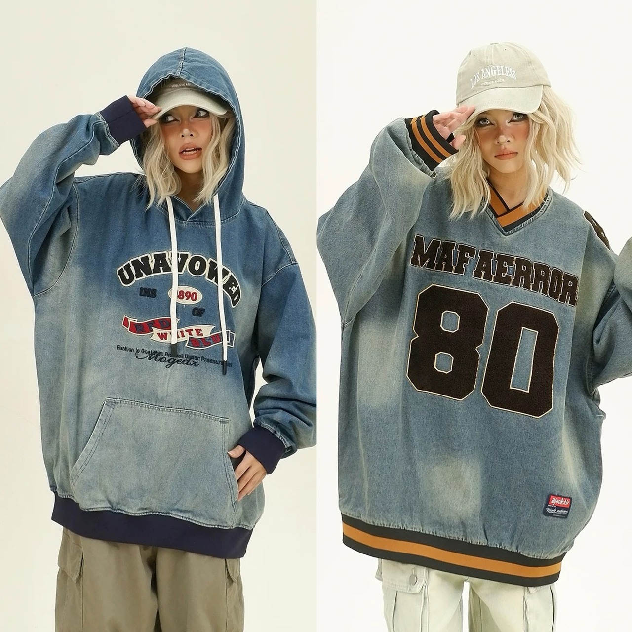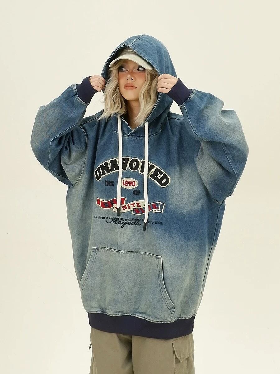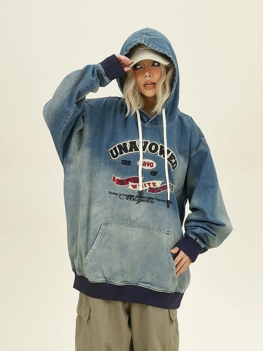 デニム パーカー ゆったり ストリート XL 水色 原宿