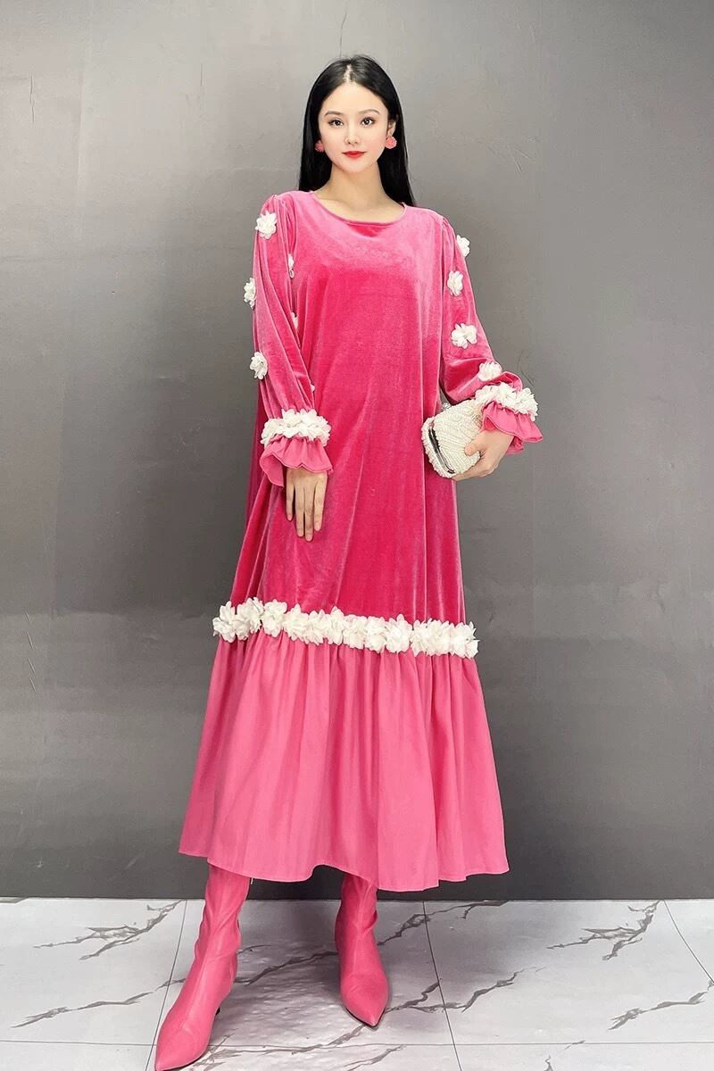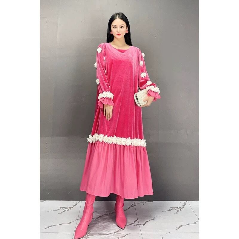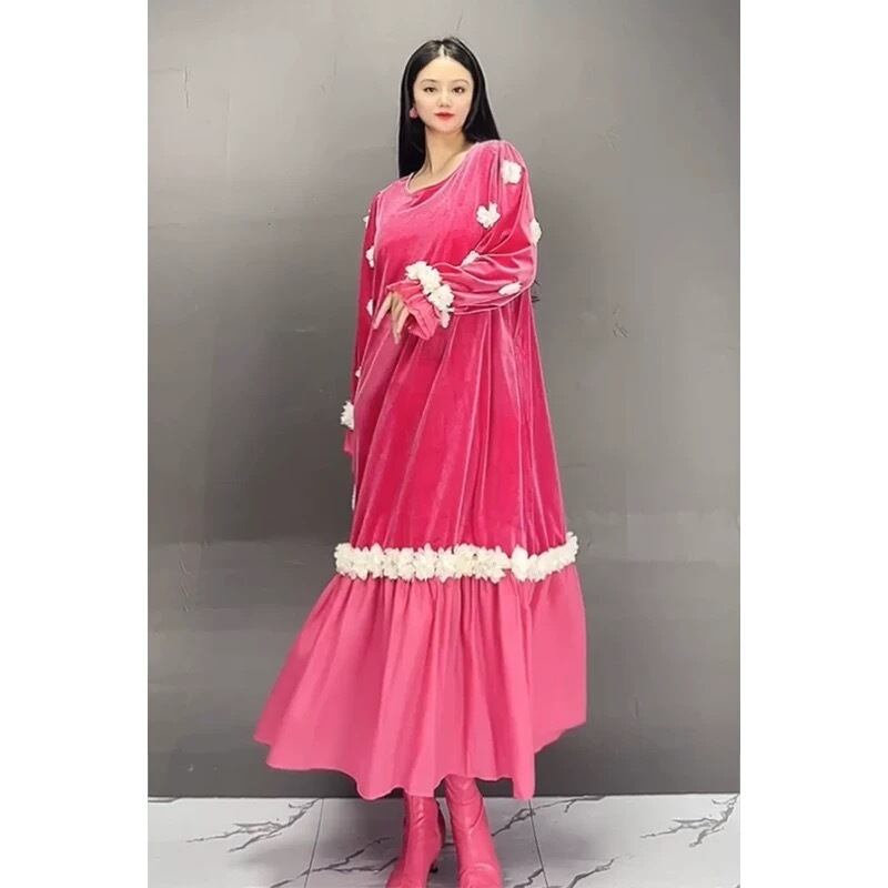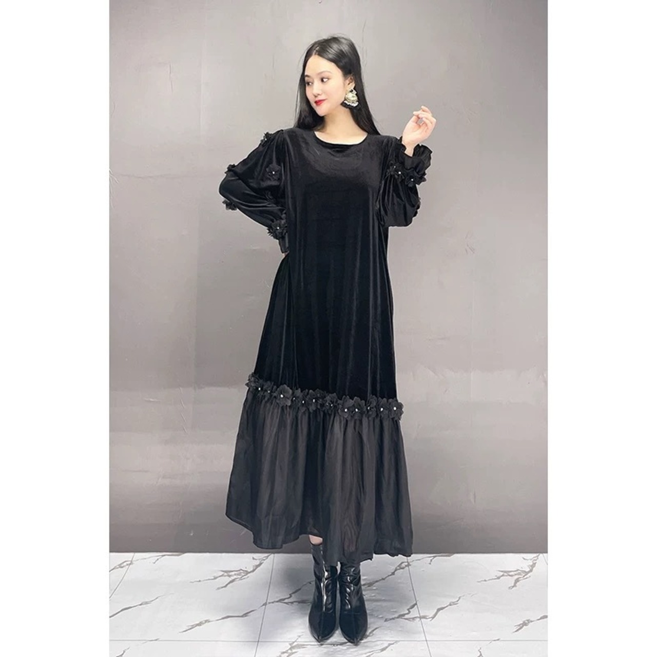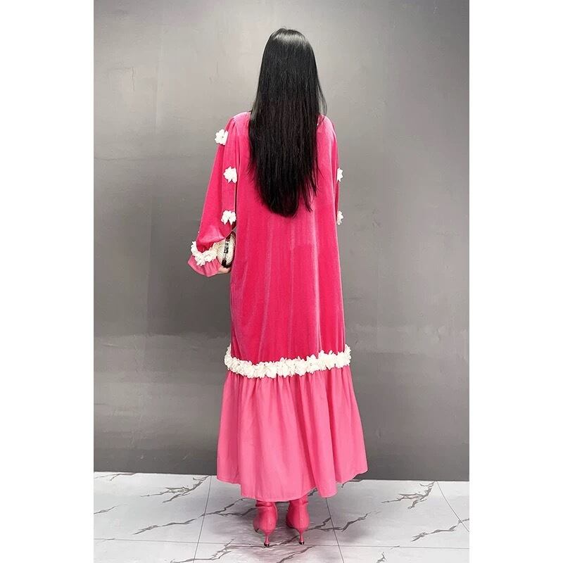 黒 ピンク ピンク 白 黒 カーディガン ベロア ベルベット ワンピース マキシ ロング ゆったり XL マダム エレガント