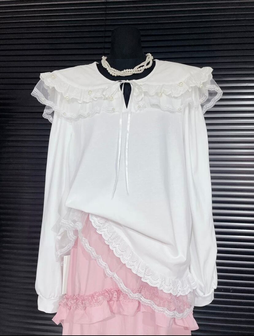 白 ホワイト セーラ ピンク 白 ブラウス カジュアル 白 ブラウス リボン シンプル カジュアル トップス