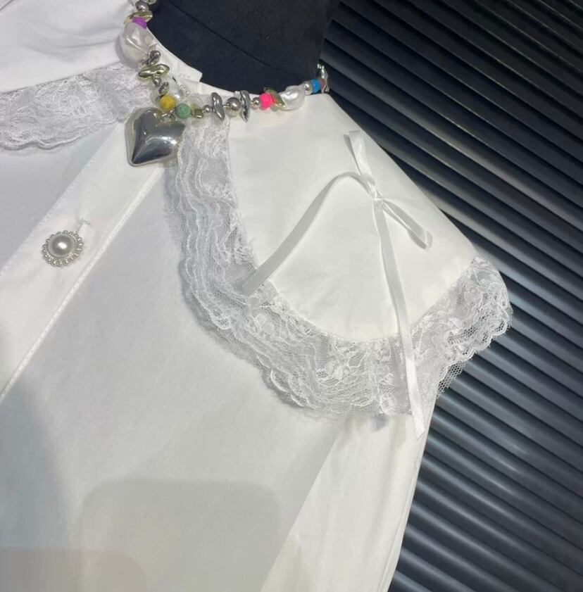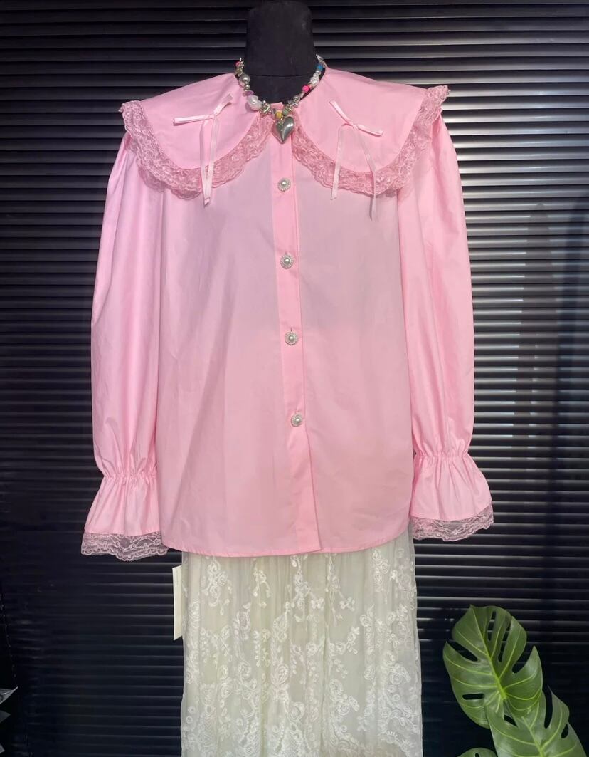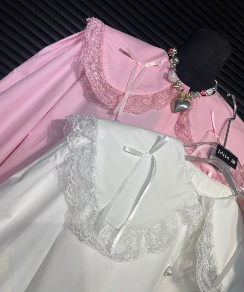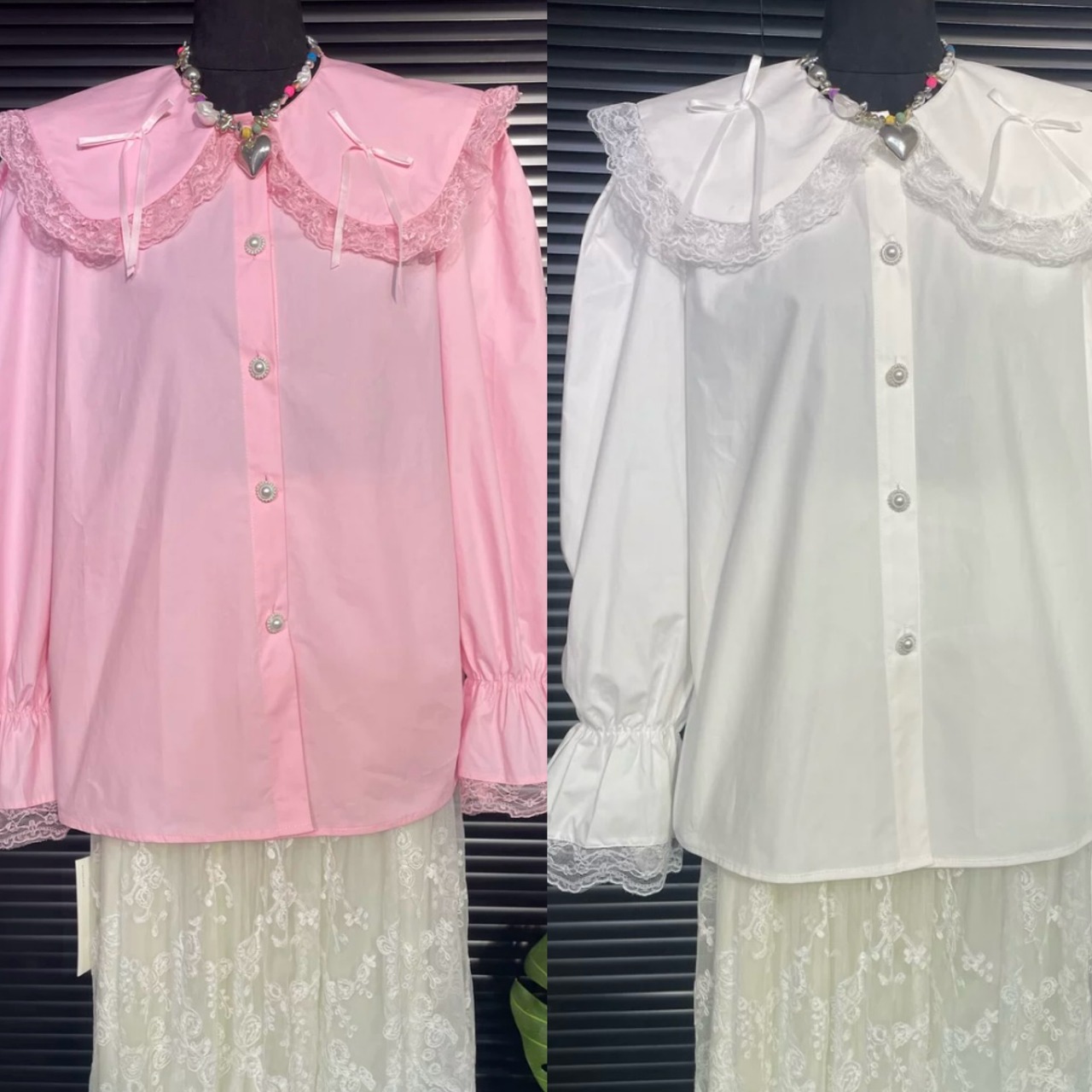 白 ピンク 丸襟 リボン ピンク 白 ブラウス カジュアル 白 ブラウス リボン シンプル カジュアル トップス