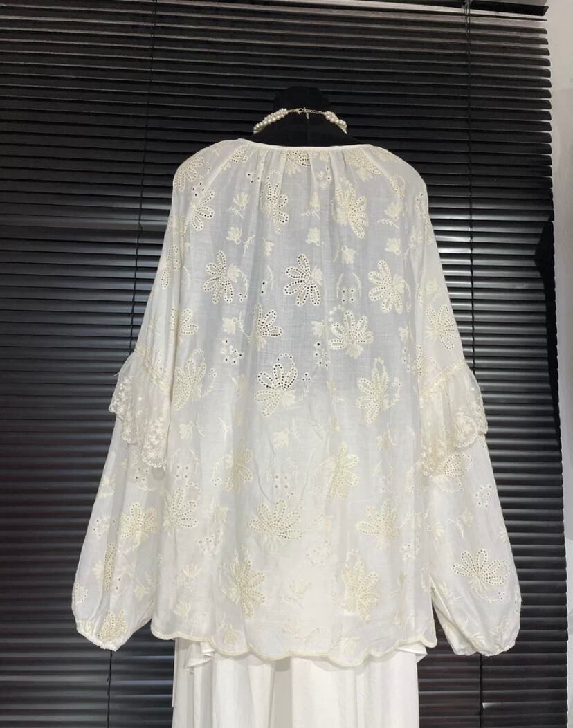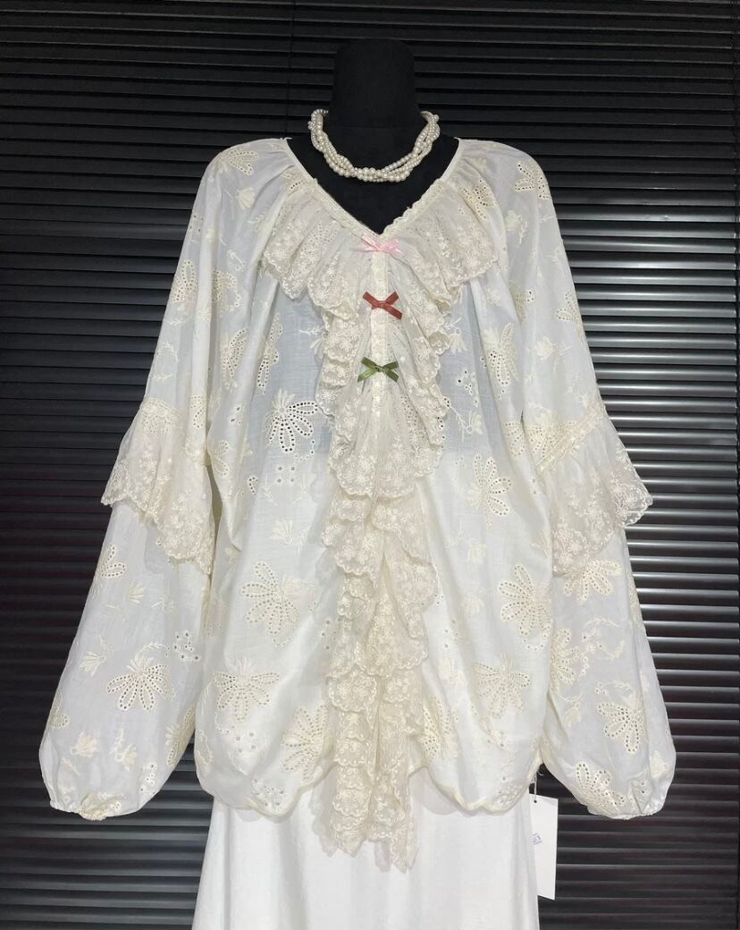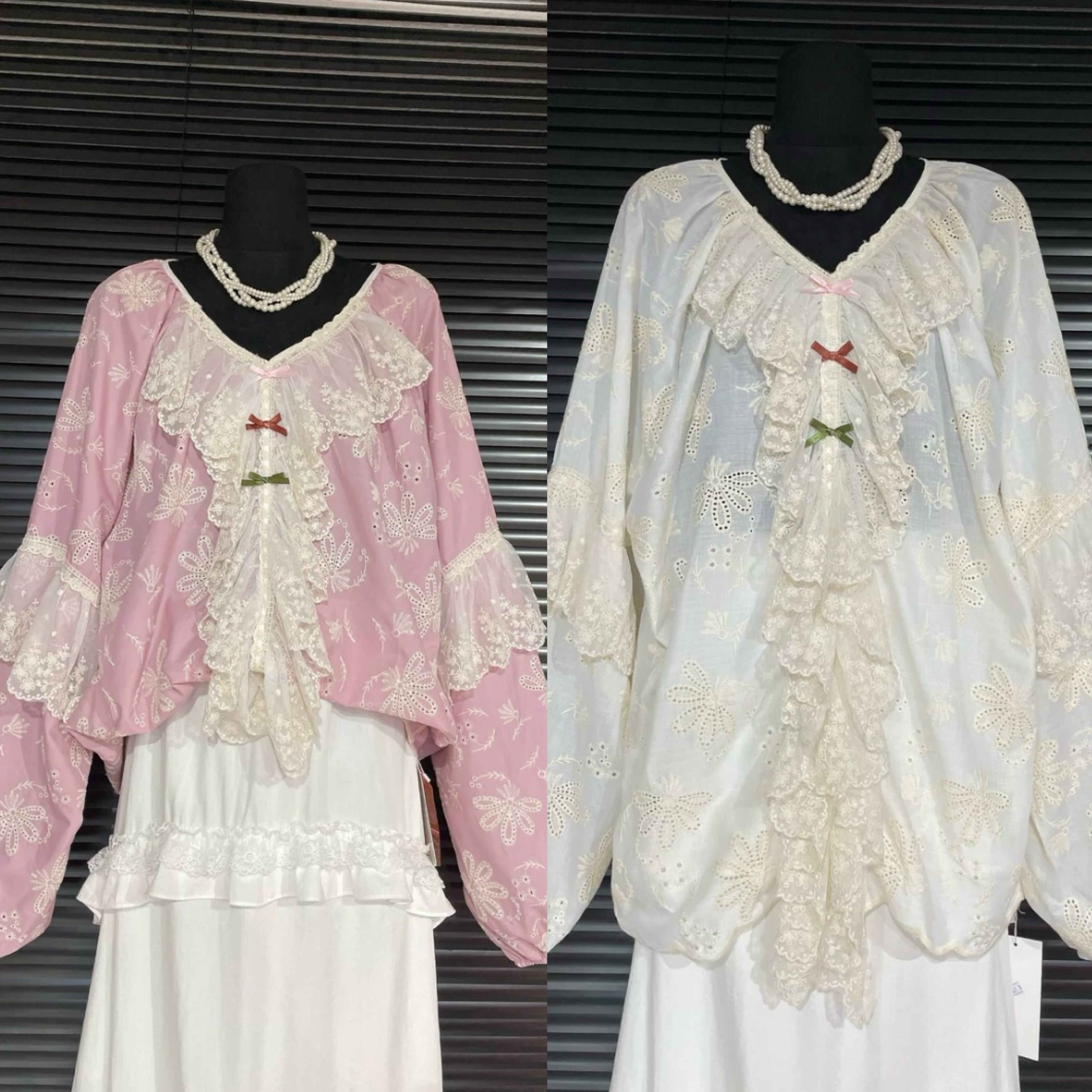 ピンク フラワー 花柄 白 ピンク 白 ブラウス カジュアル 白 ブラウス リボン シンプル カジュアル トップス