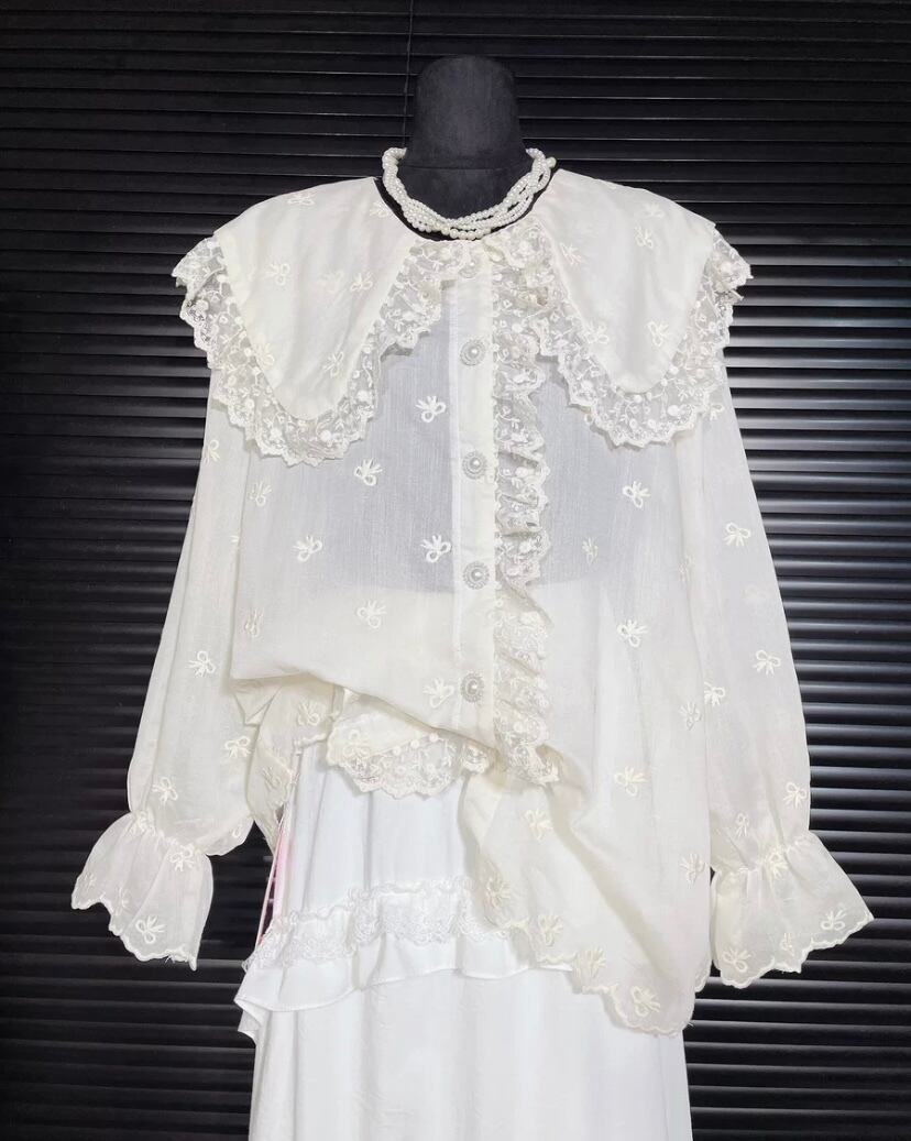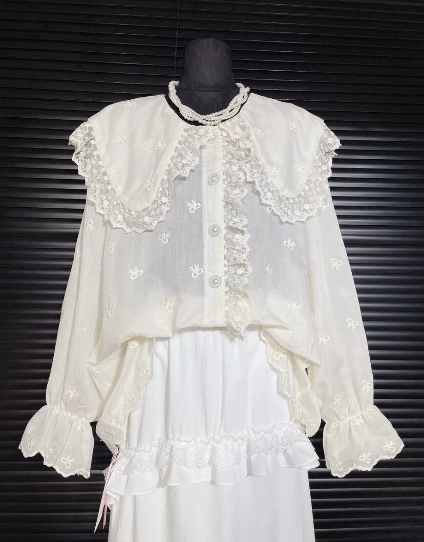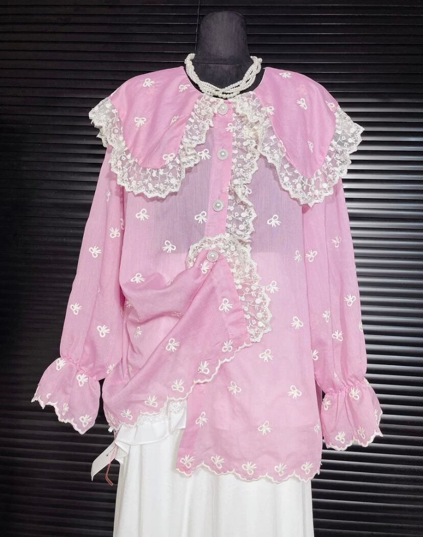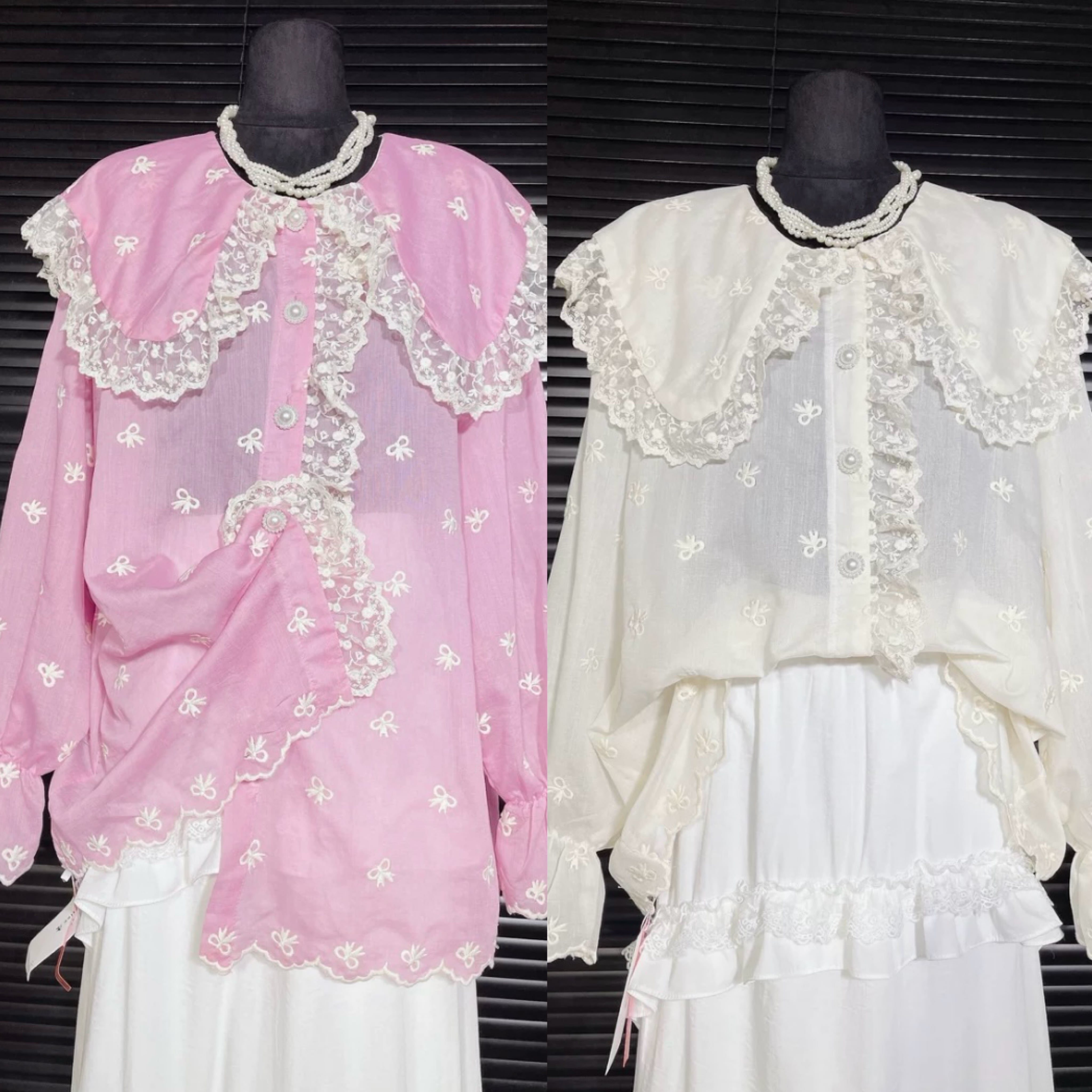 丸襟 デカ襟 ブラウス ピンク 白 ピンク 白 ブラウス カジュアル 白 ブラウス リボン シンプル カジュアル トップス