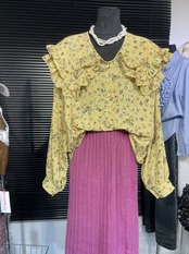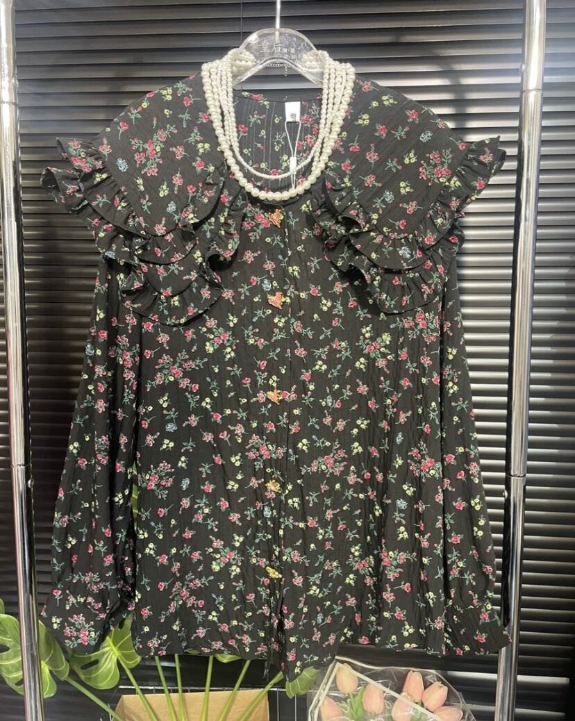 黒 黄色 フラワー 花柄 丸襟 ピンク 白 ブラウス カジュアル 白 ブラウス リボン シンプル カジュアル トップス