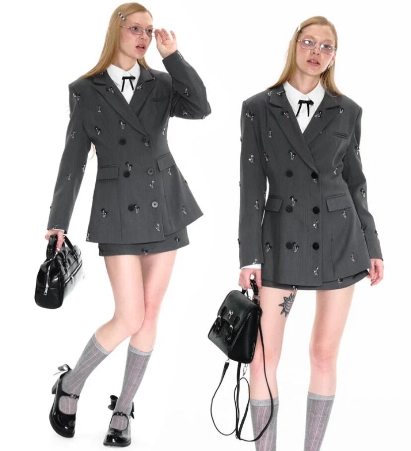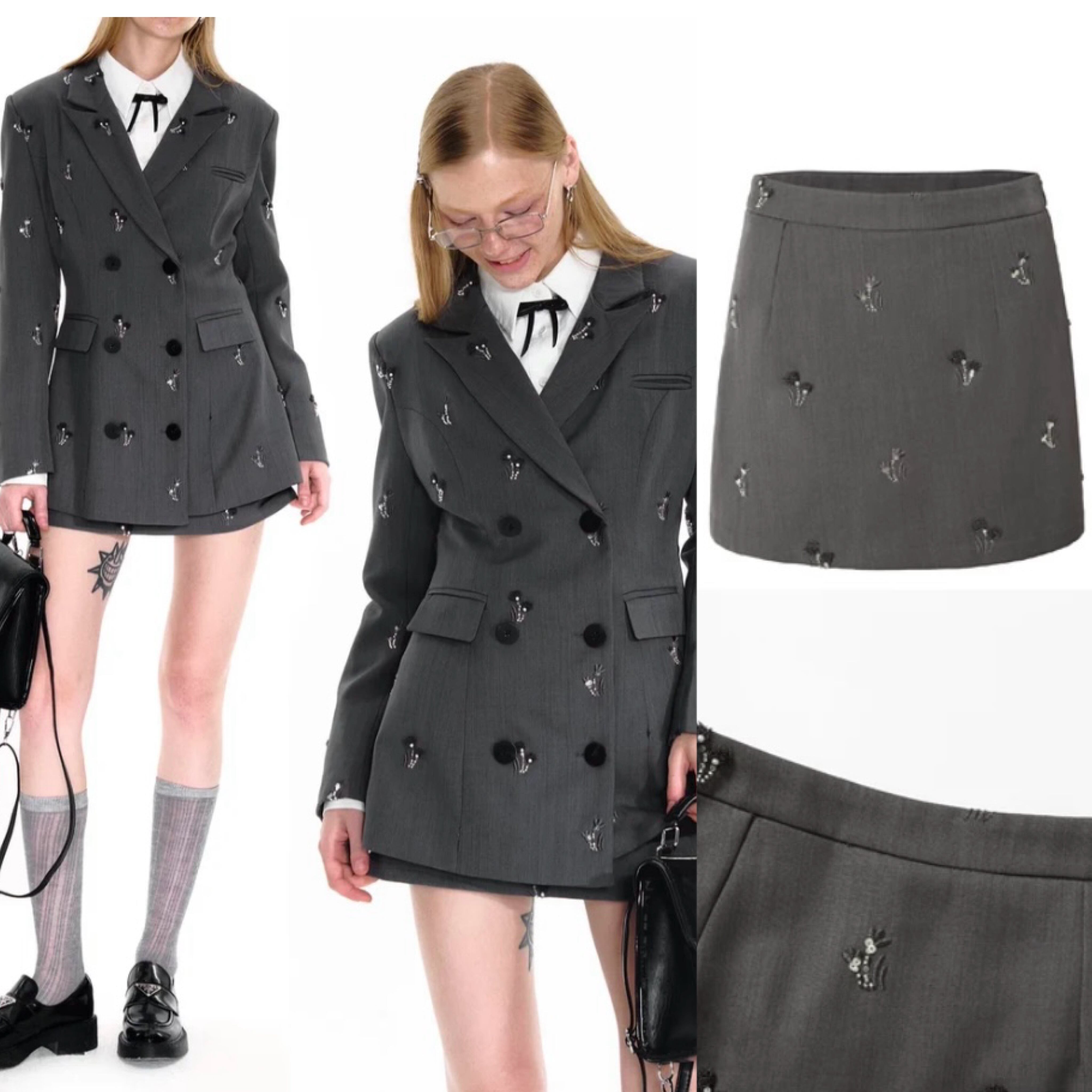 【スカート】グレー スーツ 可愛い ガーリー ボトムス セットアップ
